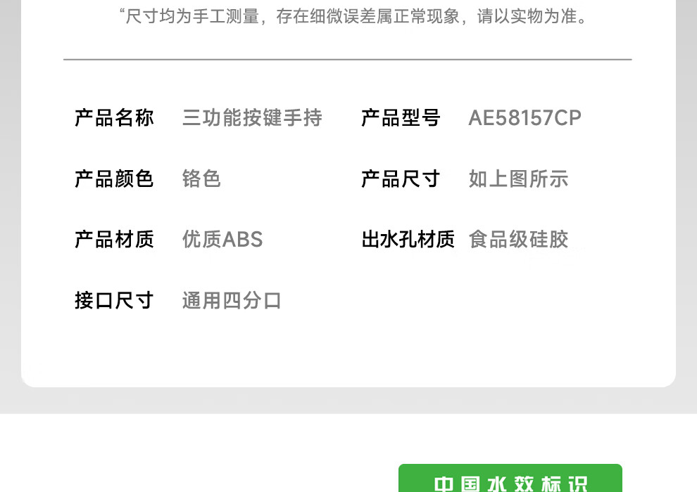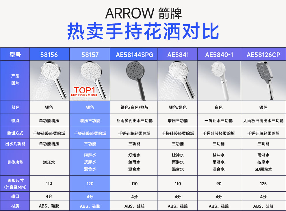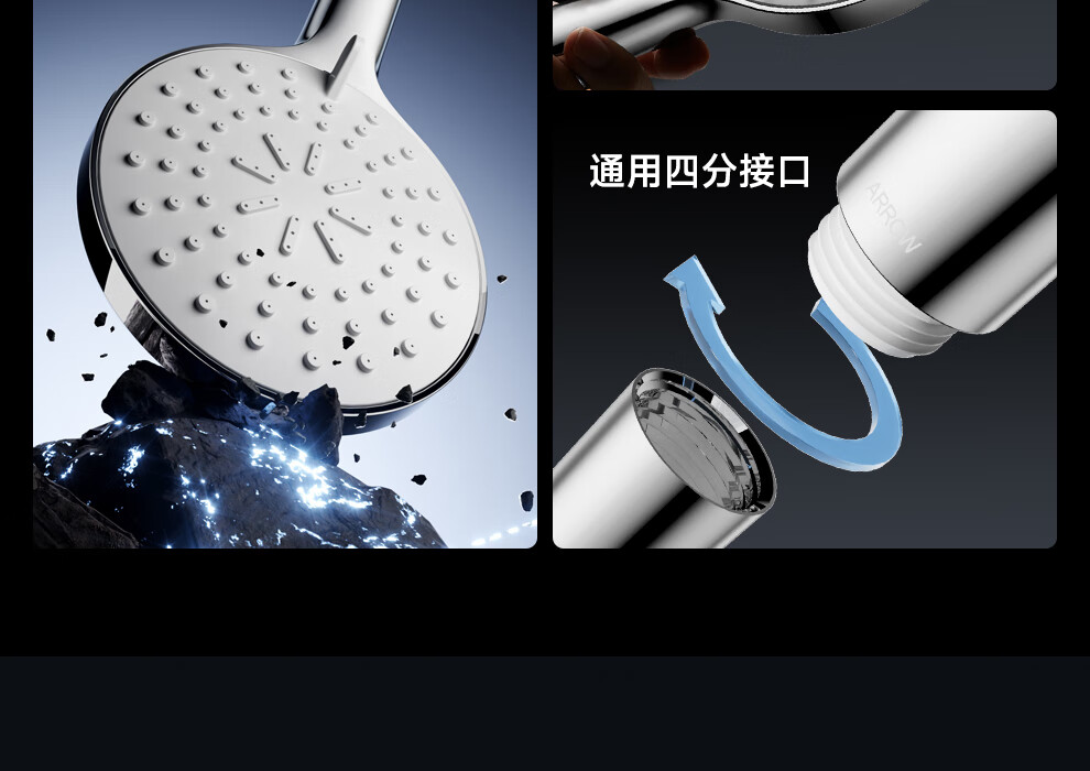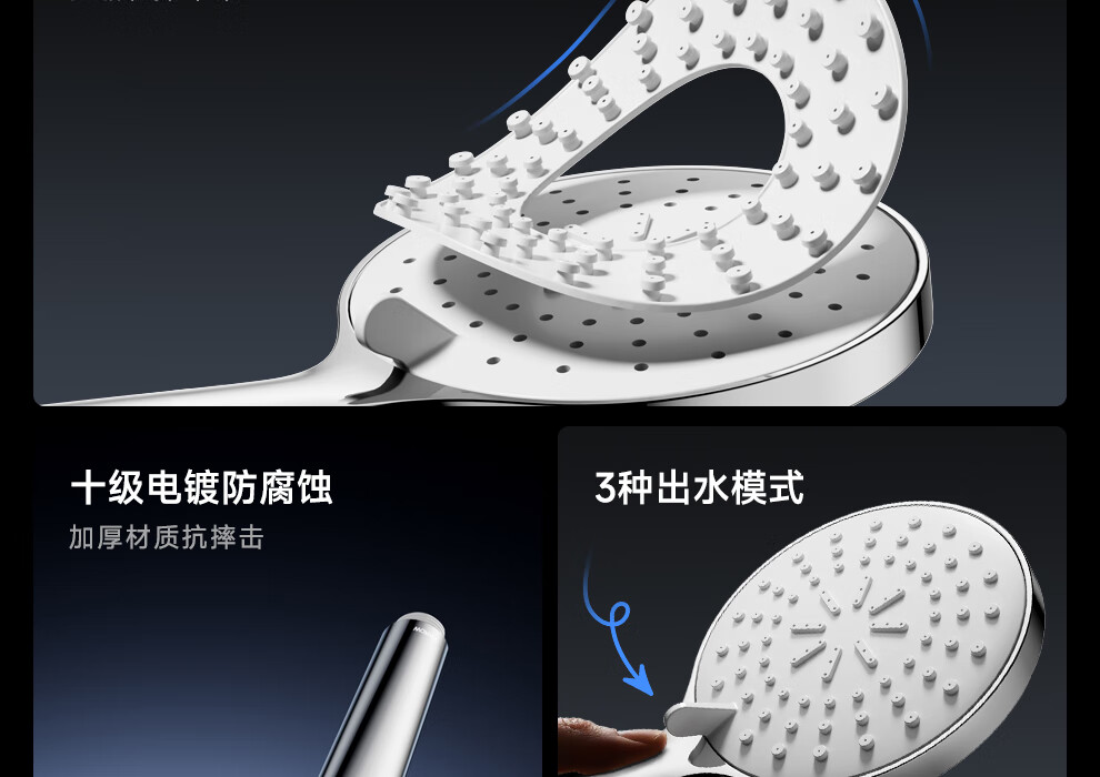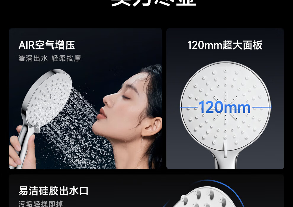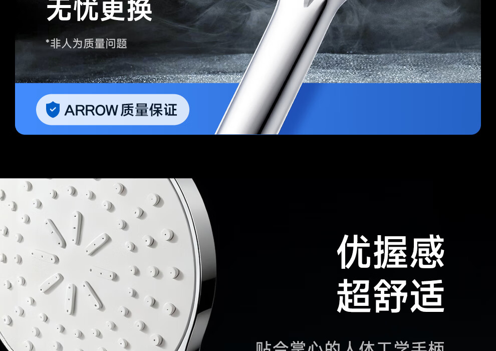箭牌三挡水花增压手持单头花洒喷头淋浴头110mm大面板硅胶出水嘴