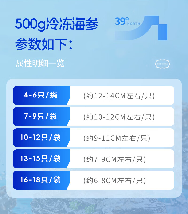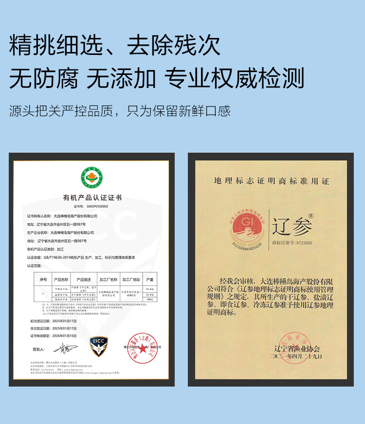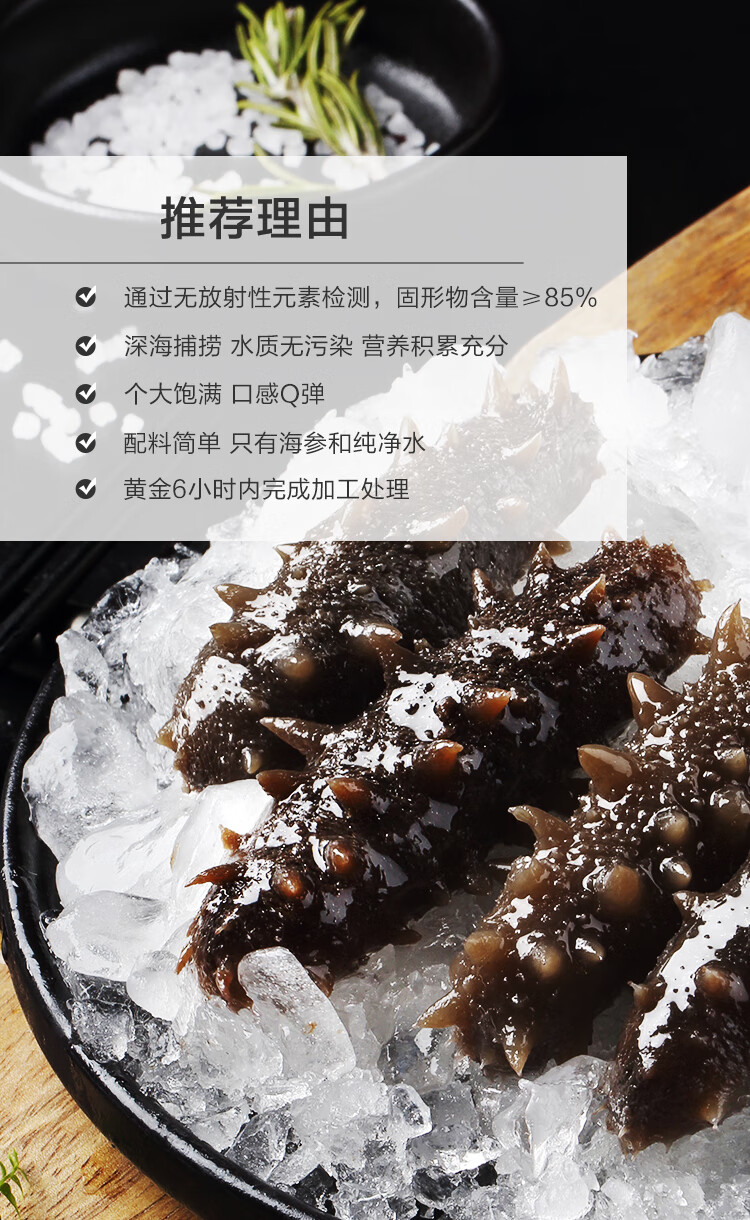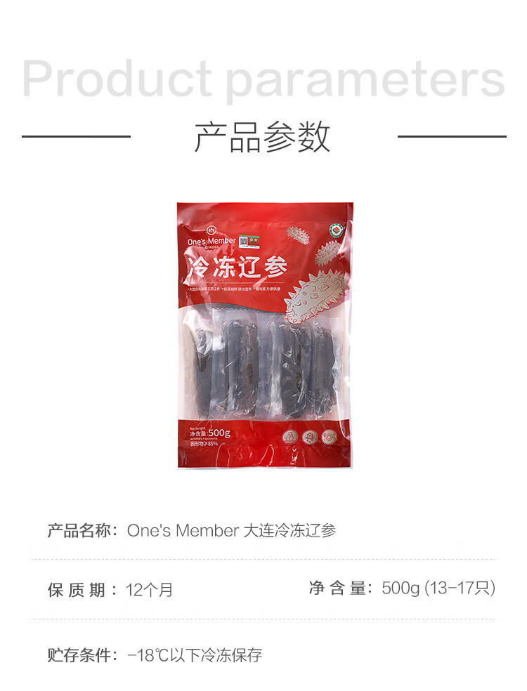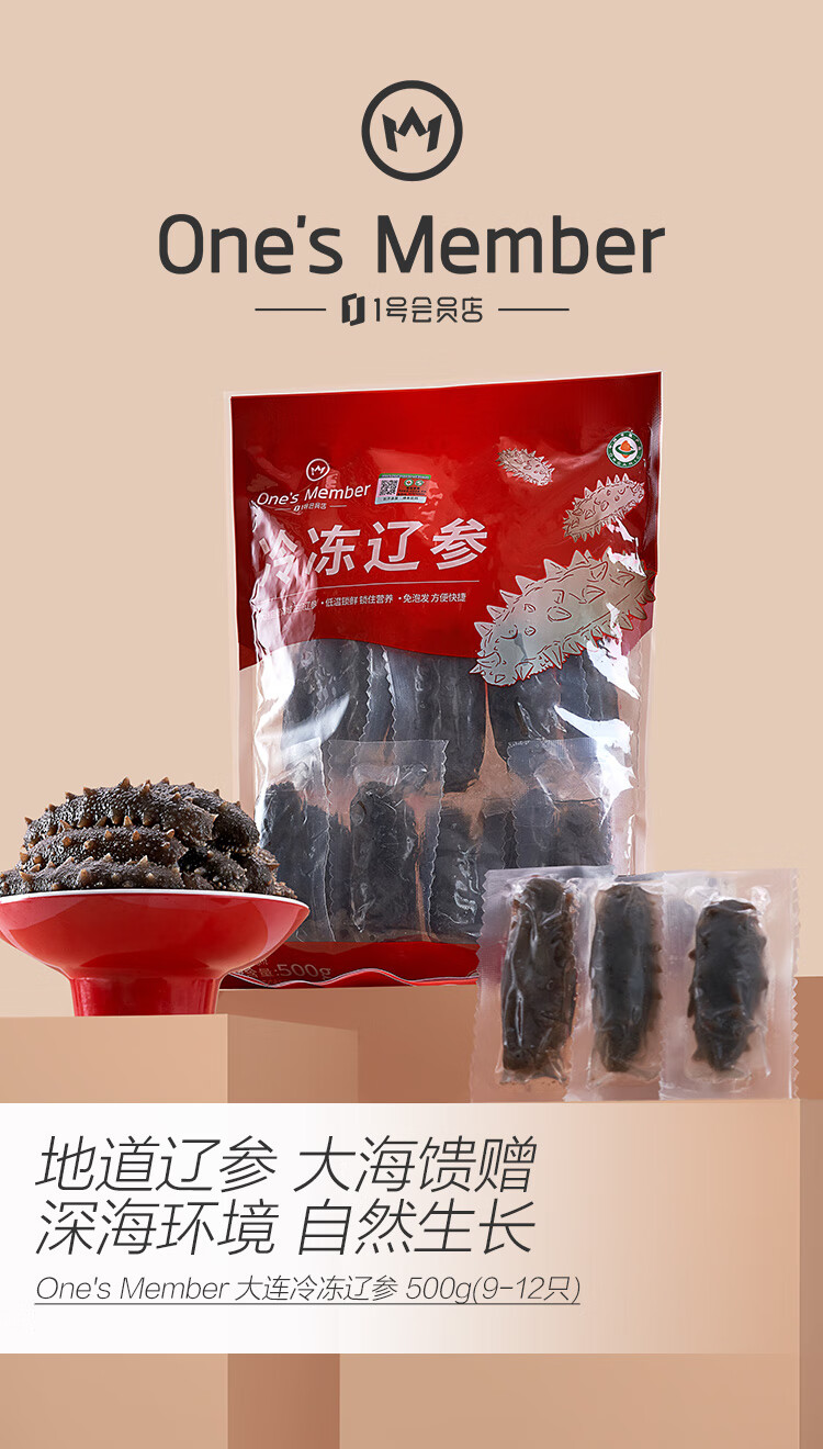 1号会员店【山姆同厂】大连冷冻海参有机辽参固形物含量≥85%13-17只 500g