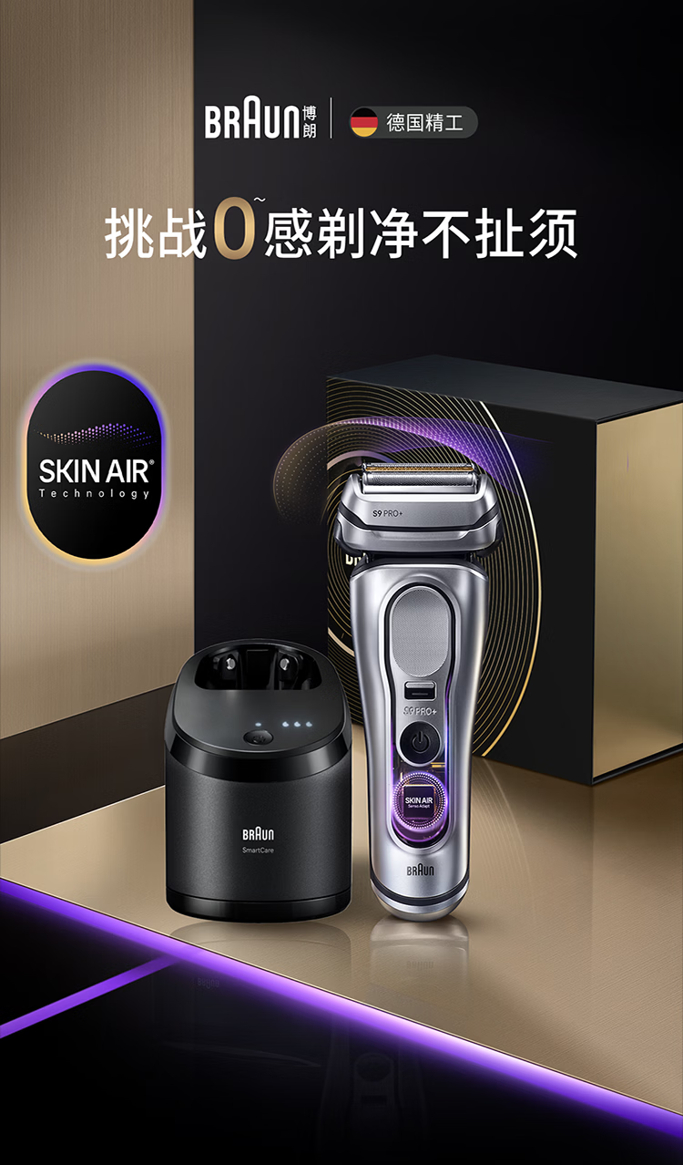 博朗(BRAUN)9系巅峰版2.0清洁护理中心电动剃须刀整机德国进口往复式礼盒款送老公男朋友生日礼物