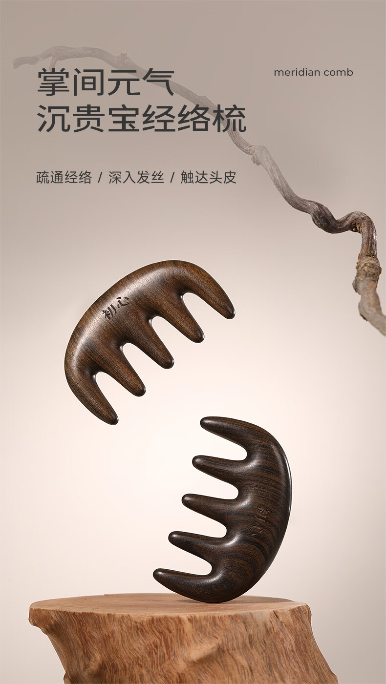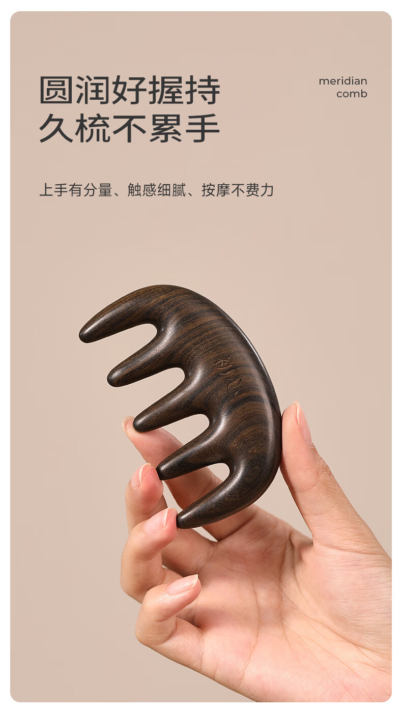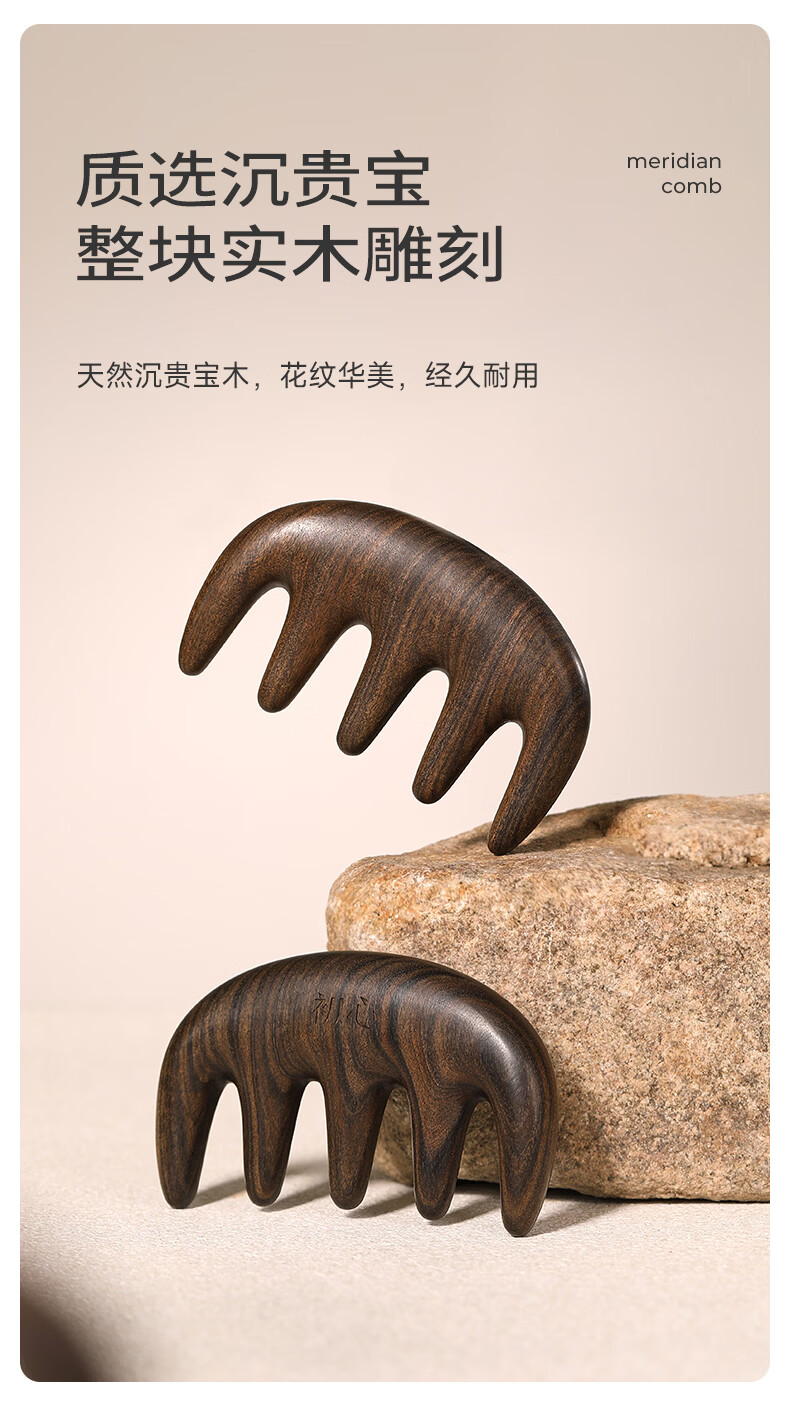 初心【经络按摩】沉贵宝宽齿檀木梳便携防静电头皮护理养生女士专用梳 掌间元气经络梳-沉贵宝