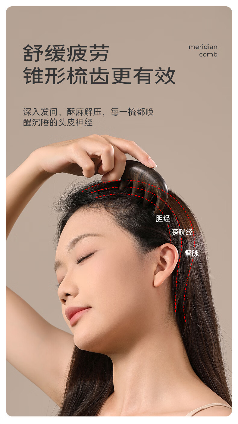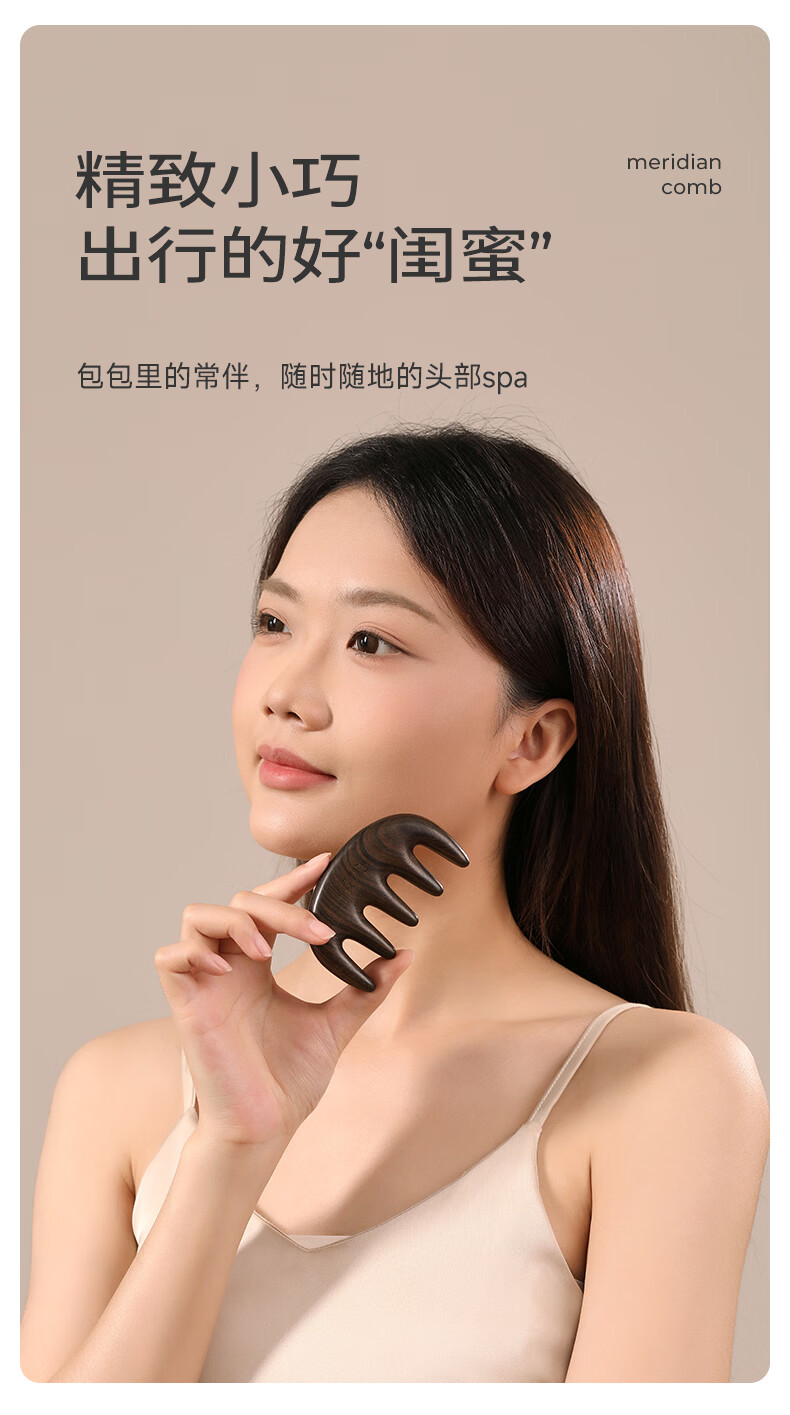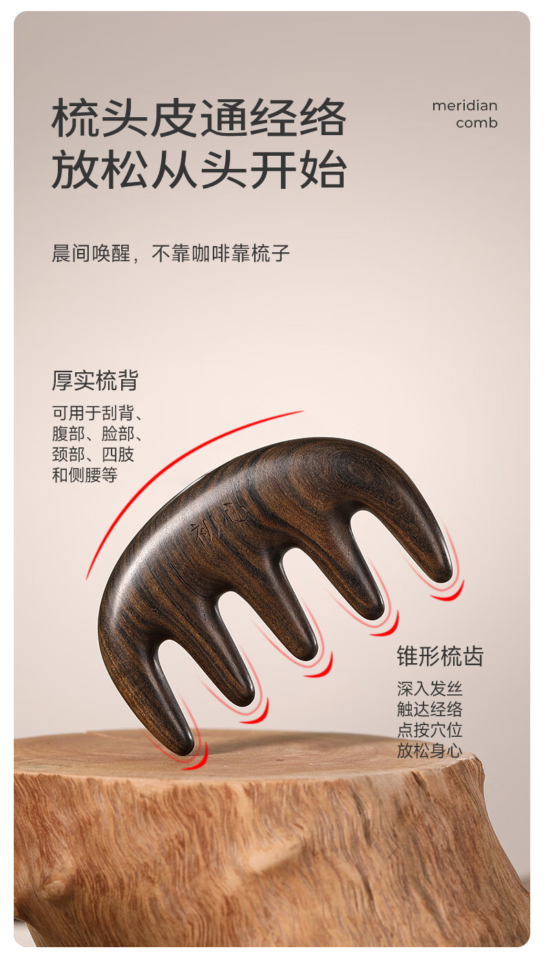 初心【经络按摩】沉贵宝宽齿檀木梳便携防静电头皮护理养生女士专用梳 掌间元气经络梳-沉贵宝