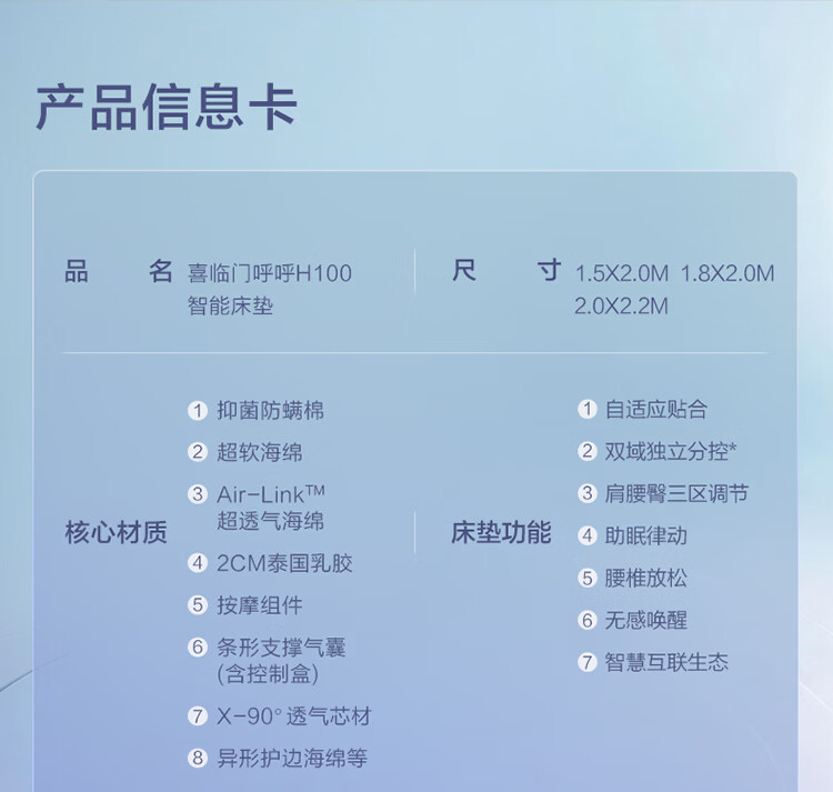 喜临门【MD1】呼呼H100智能AI床垫 呼呼H100 2*2.2米