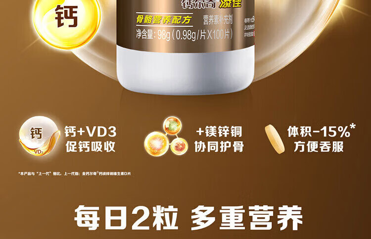 钙尔奇添佳钙片中老年人补钙 维生素d3镁腿抽筋腰腿疼骨质疏松补钙强骨 【经典爆款】钙镁同补 100片*1瓶