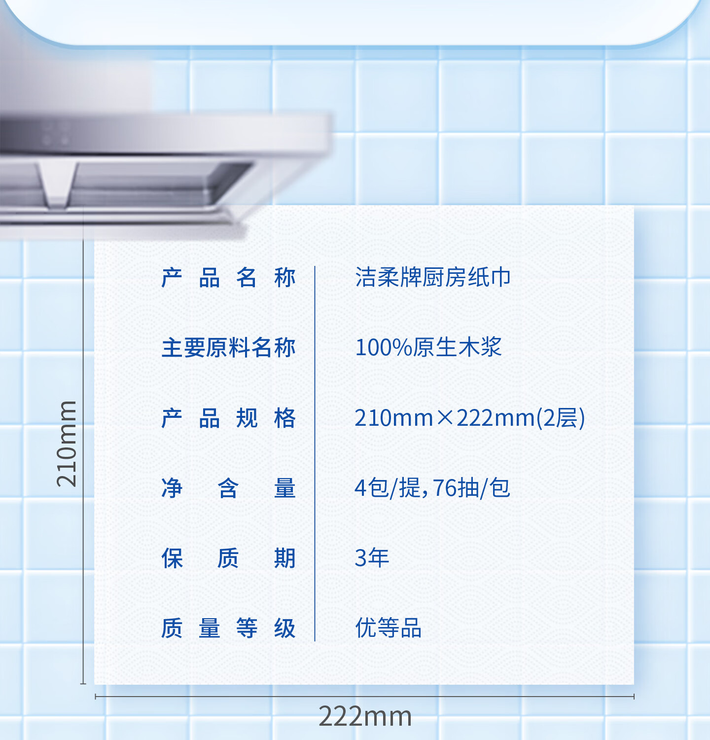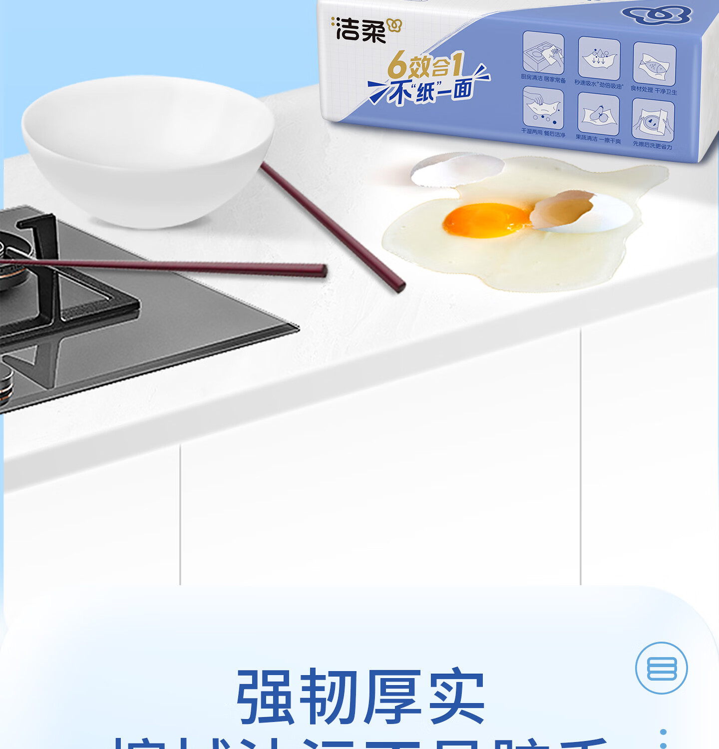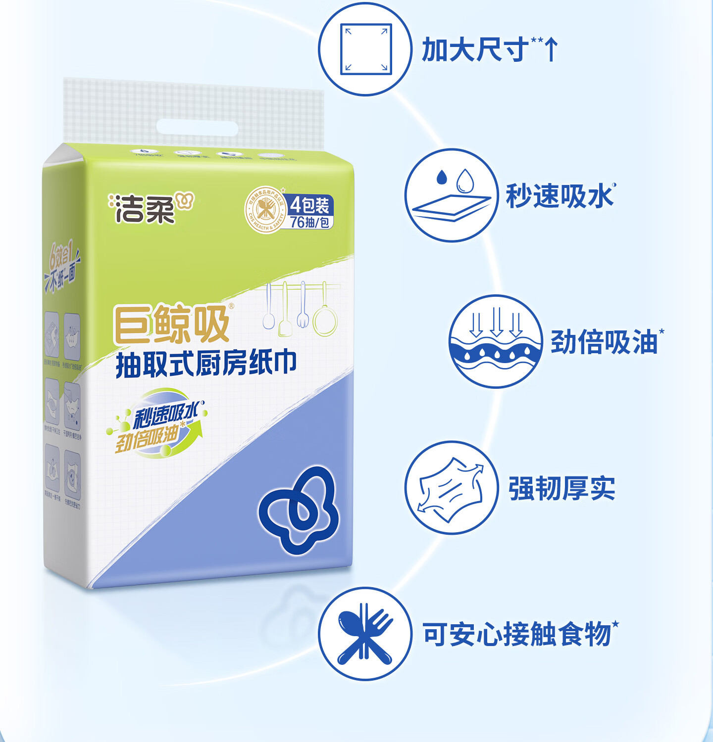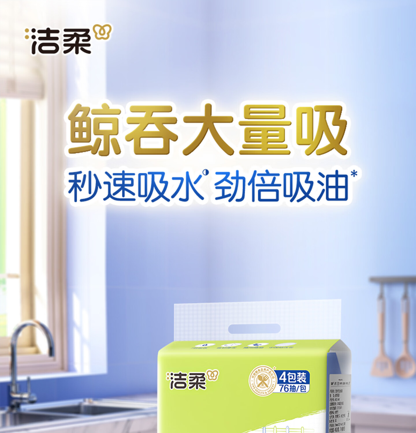 洁柔厨房抽纸75抽*4包开学清洁加厚吸水吸油污新年清洁一次性懒人抹布