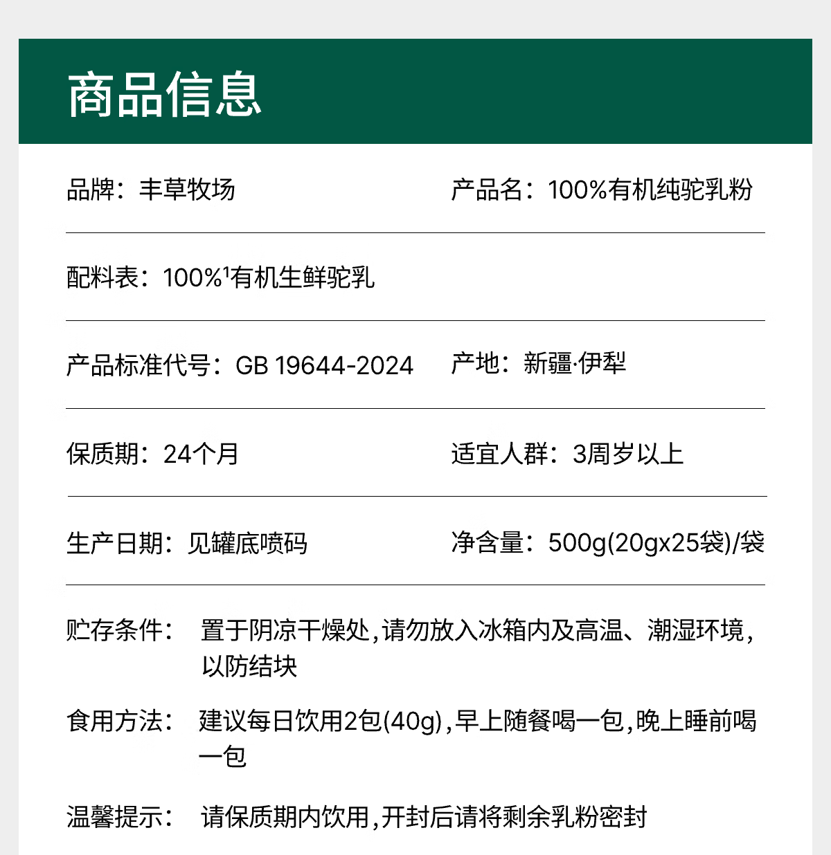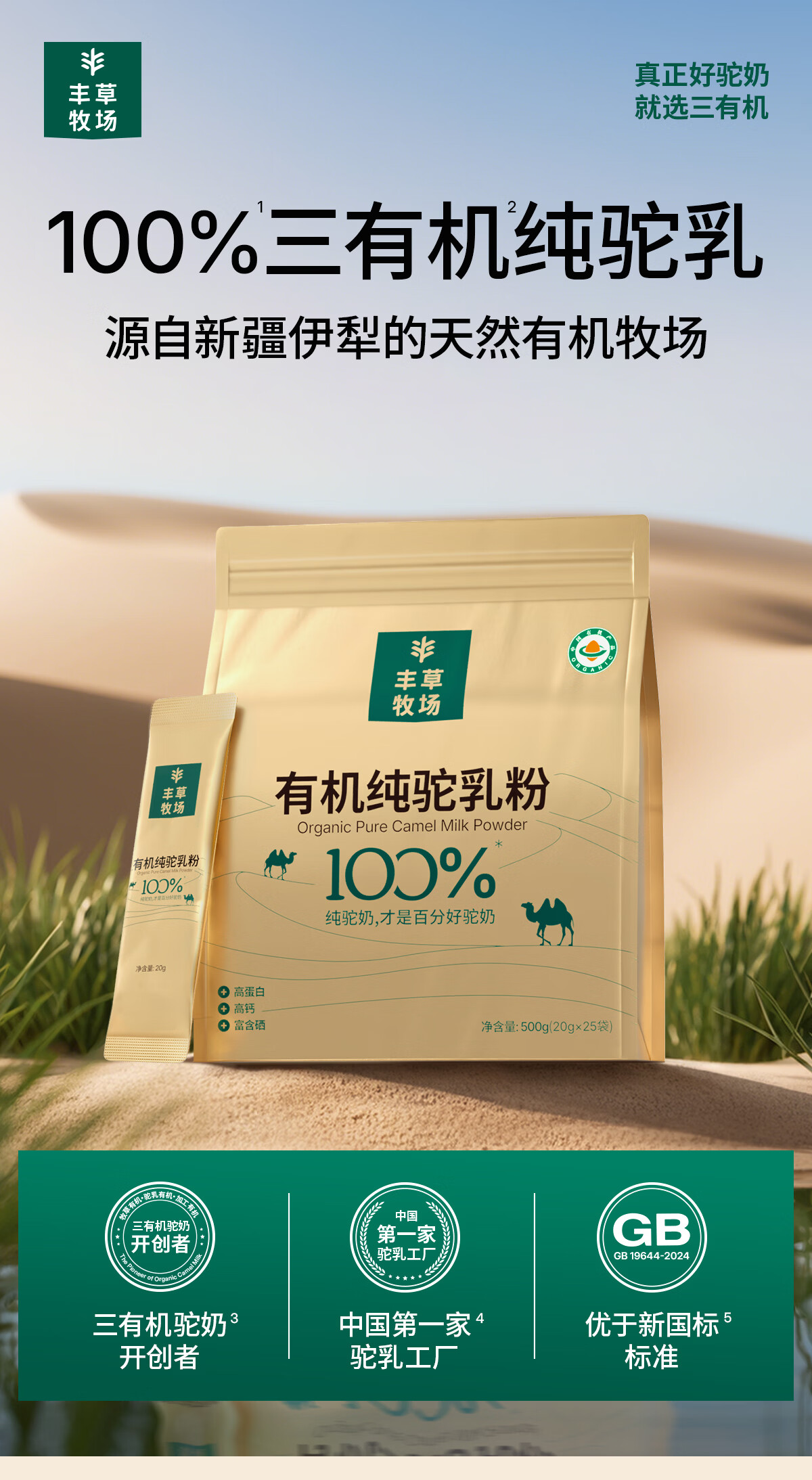 丰草牧场李思思同款新疆三有机驼奶粉官方旗舰正品儿童营养中老年驼乳粉 【2袋实惠装】到手50条
