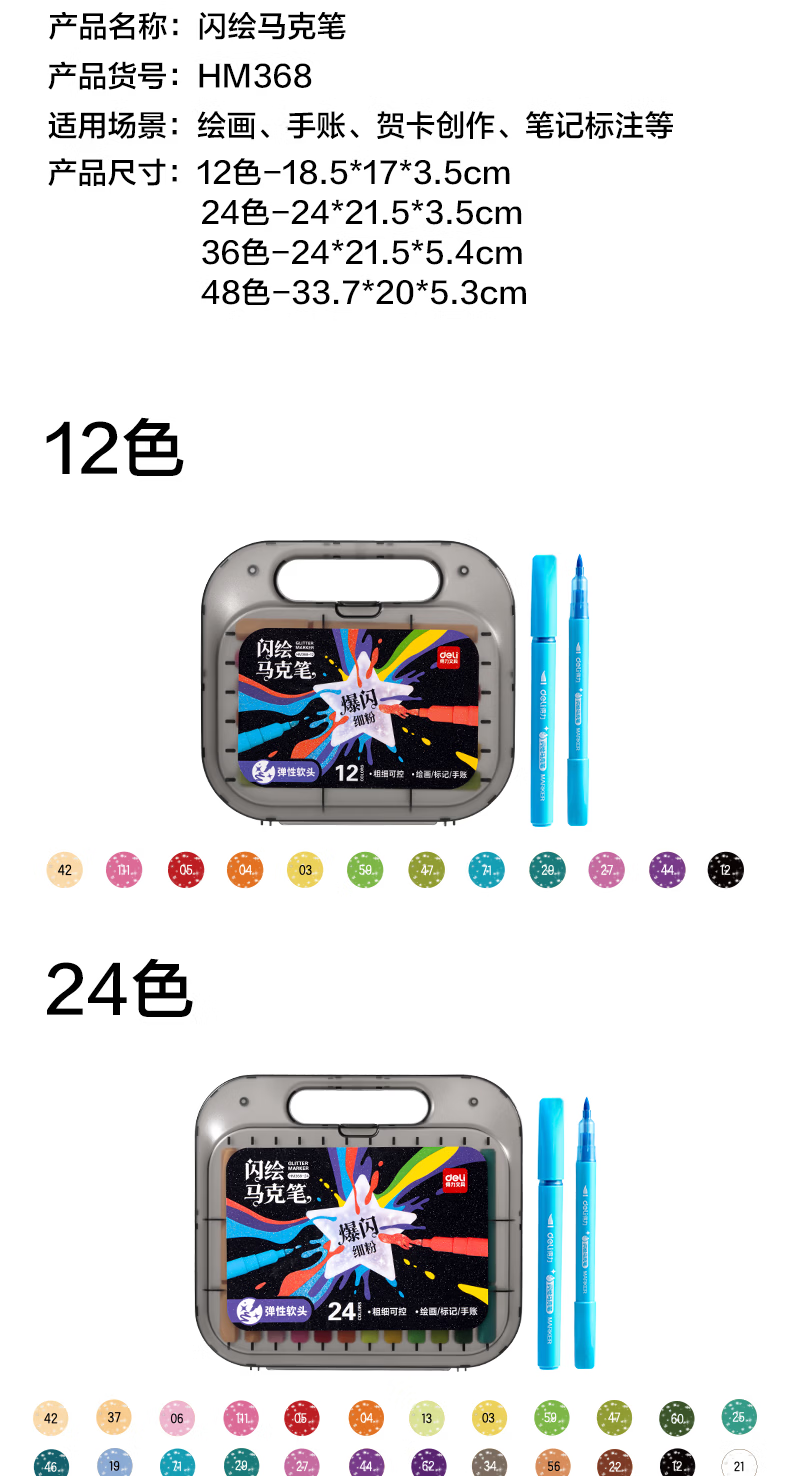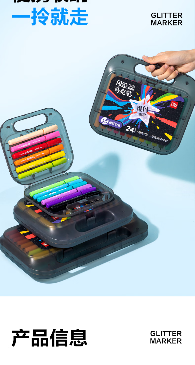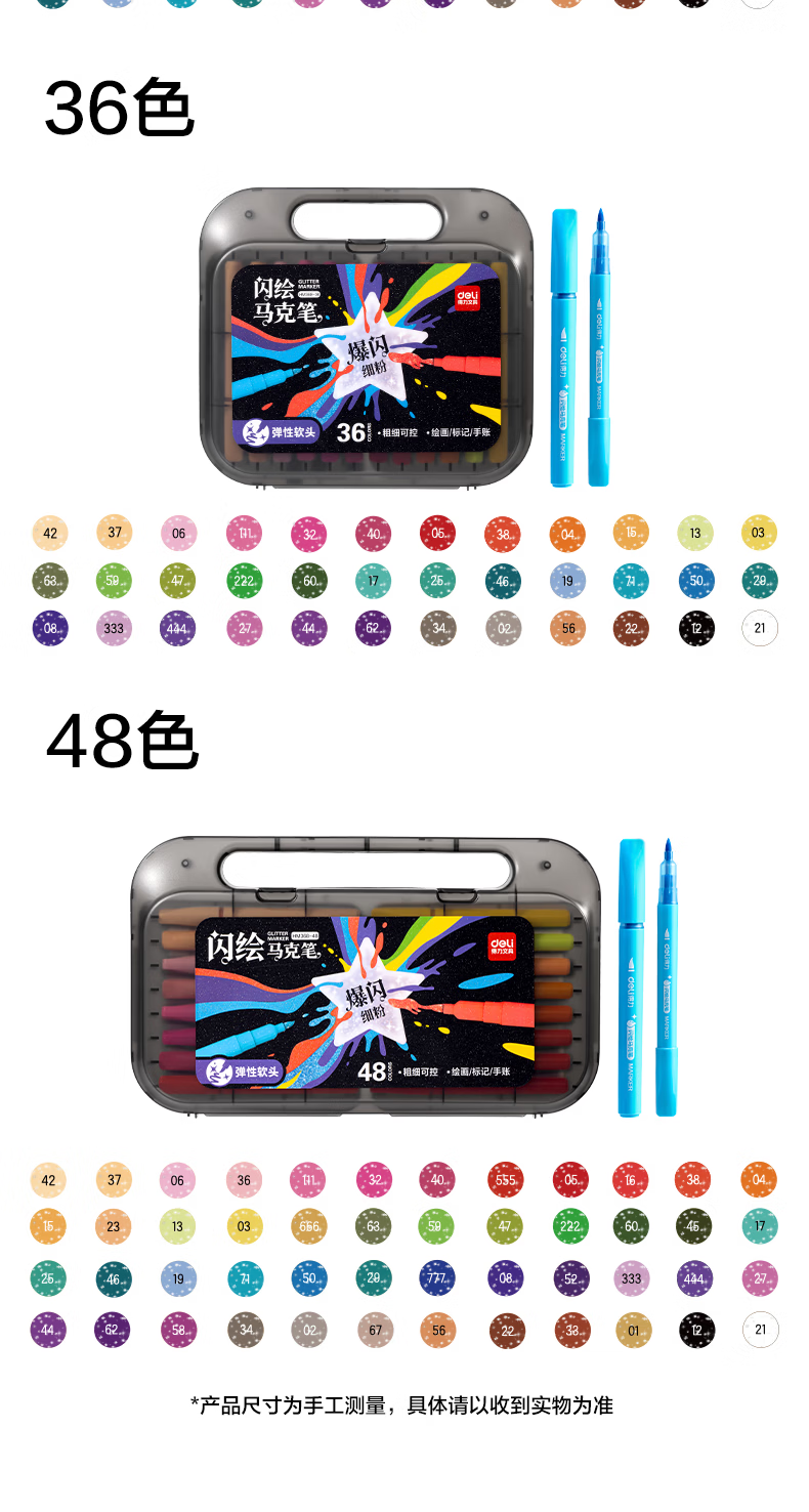 得力(deli)闪光软头丙烯马克笔学生美术专用不透色可叠色爆闪水性彩色笔画笔儿童文具颜料记号笔 软绘闪光马克笔-12色