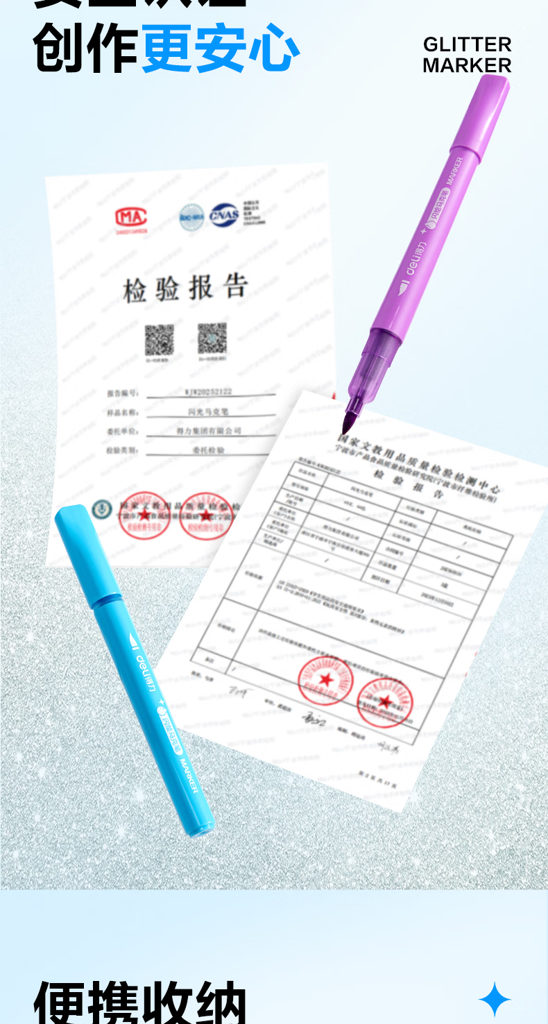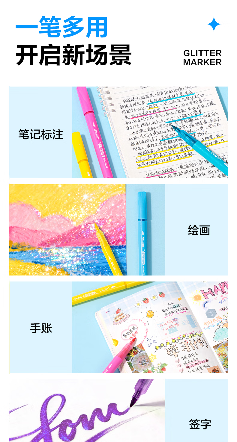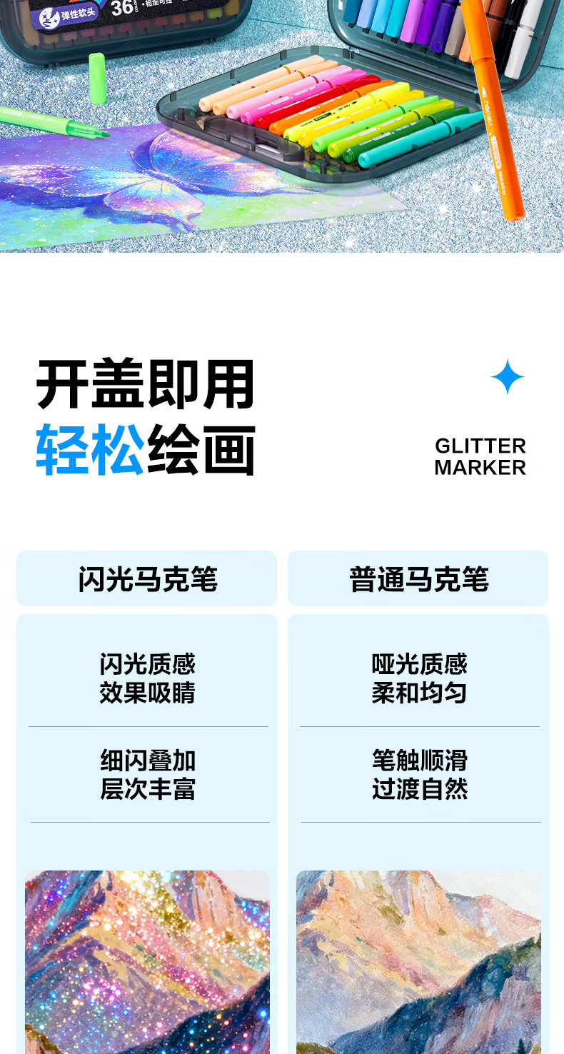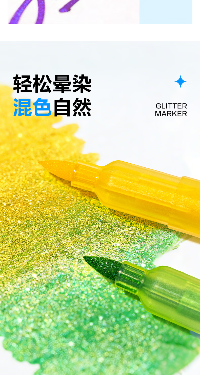 得力(deli)闪光软头丙烯马克笔学生美术专用不透色可叠色爆闪水性彩色笔画笔儿童文具颜料记号笔 软绘闪光马克笔-12色