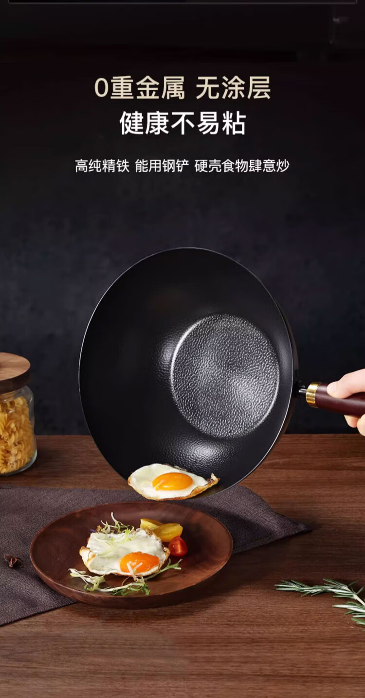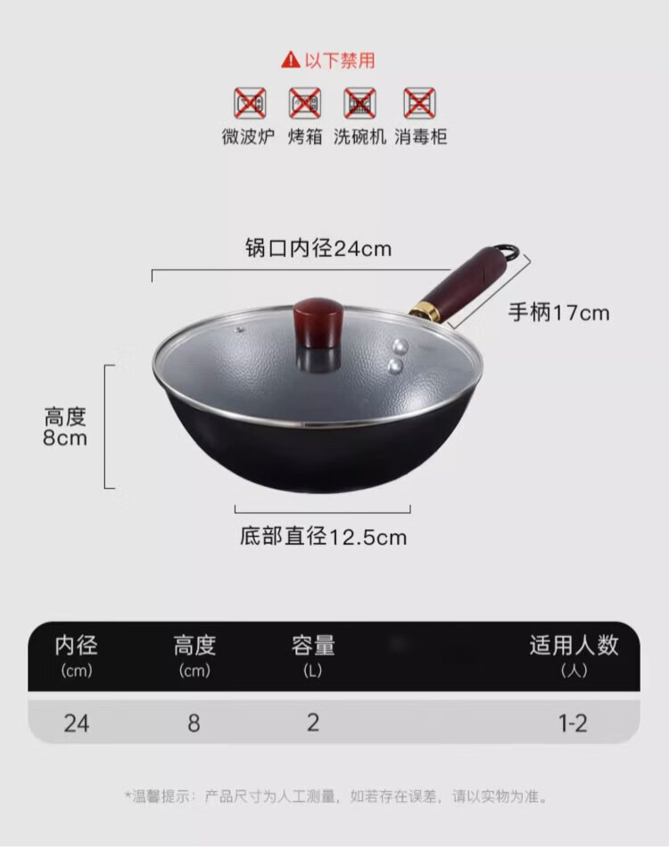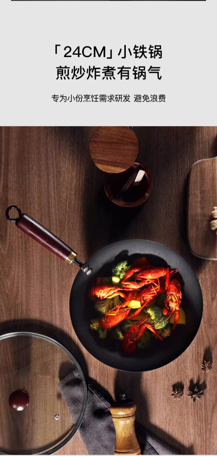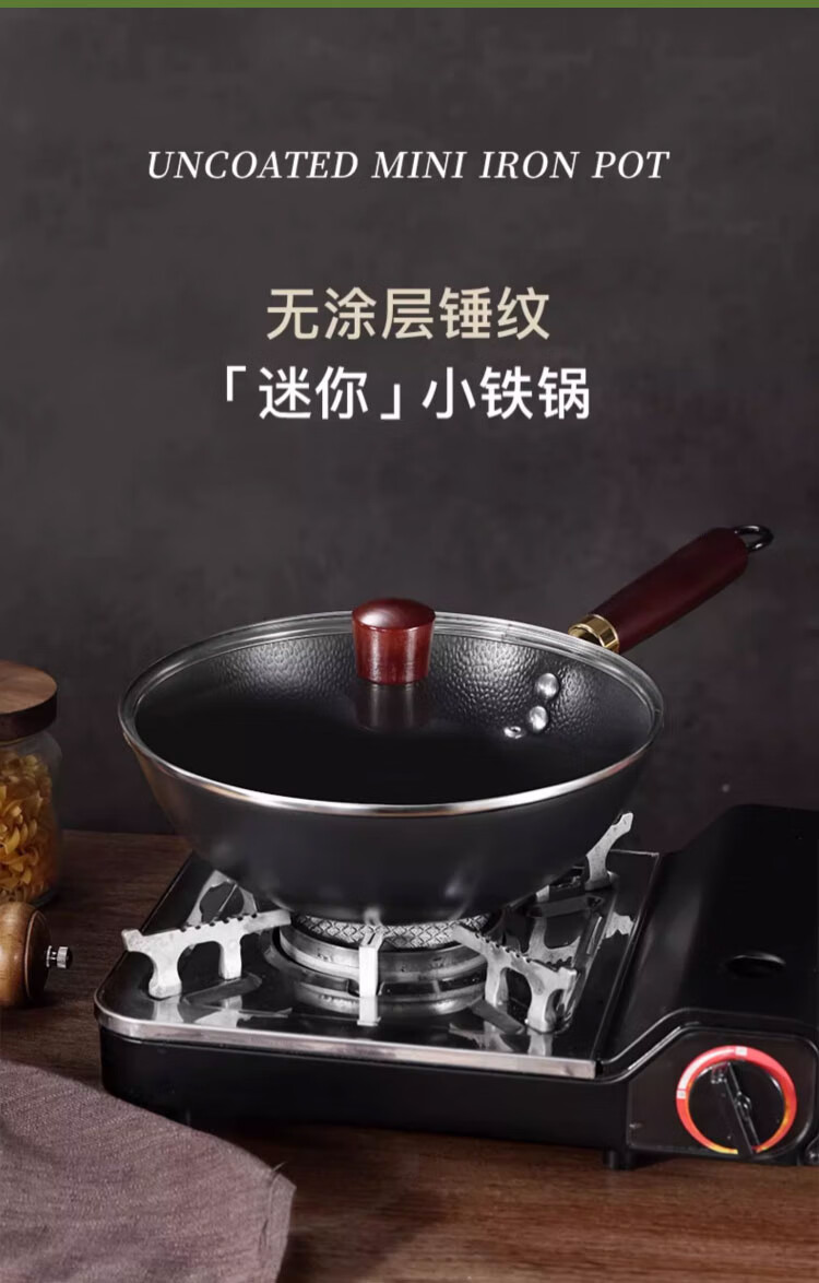 京严小铁锅一人食炒锅日式迷你无涂层炒菜不粘锅平底辅食锅电磁炉燃气 【0涂层|带锅盖】适合2-3人 24cm 锤纹锻打|双倍防锈|不挑灶具