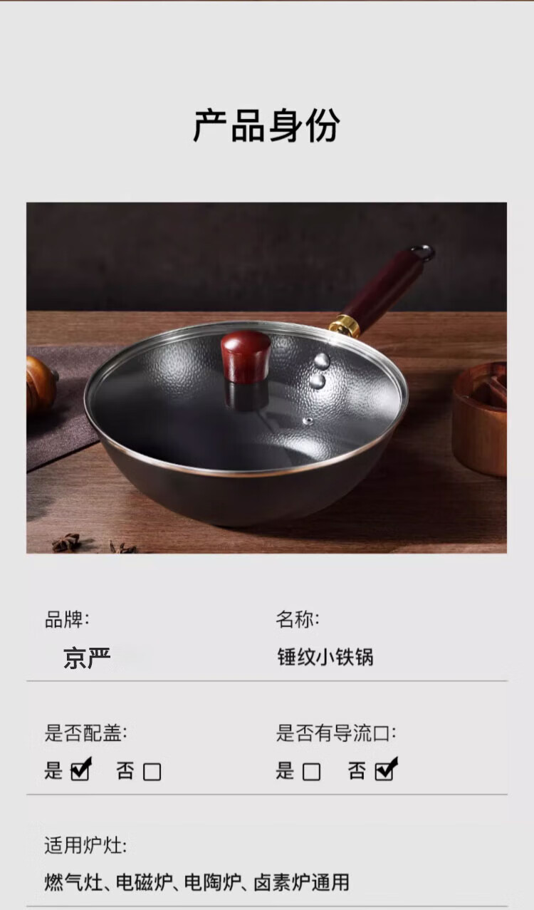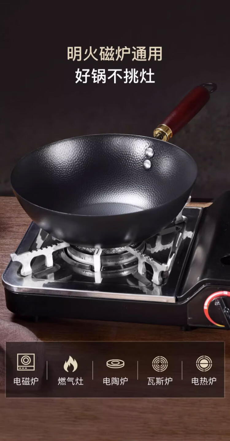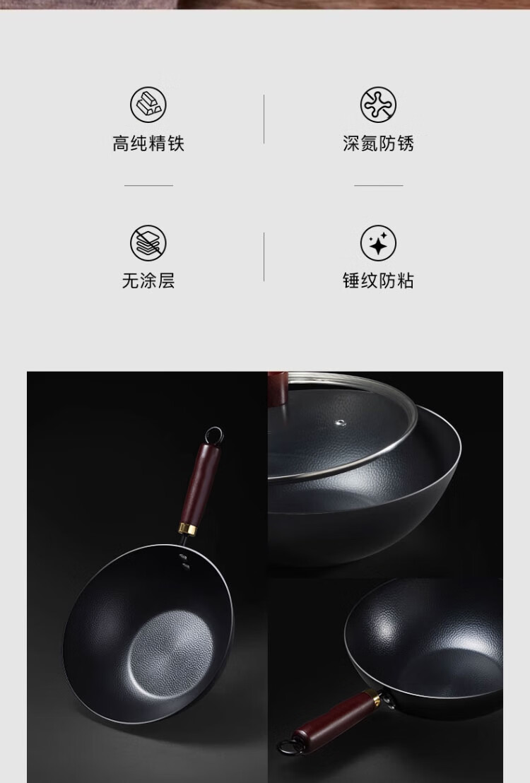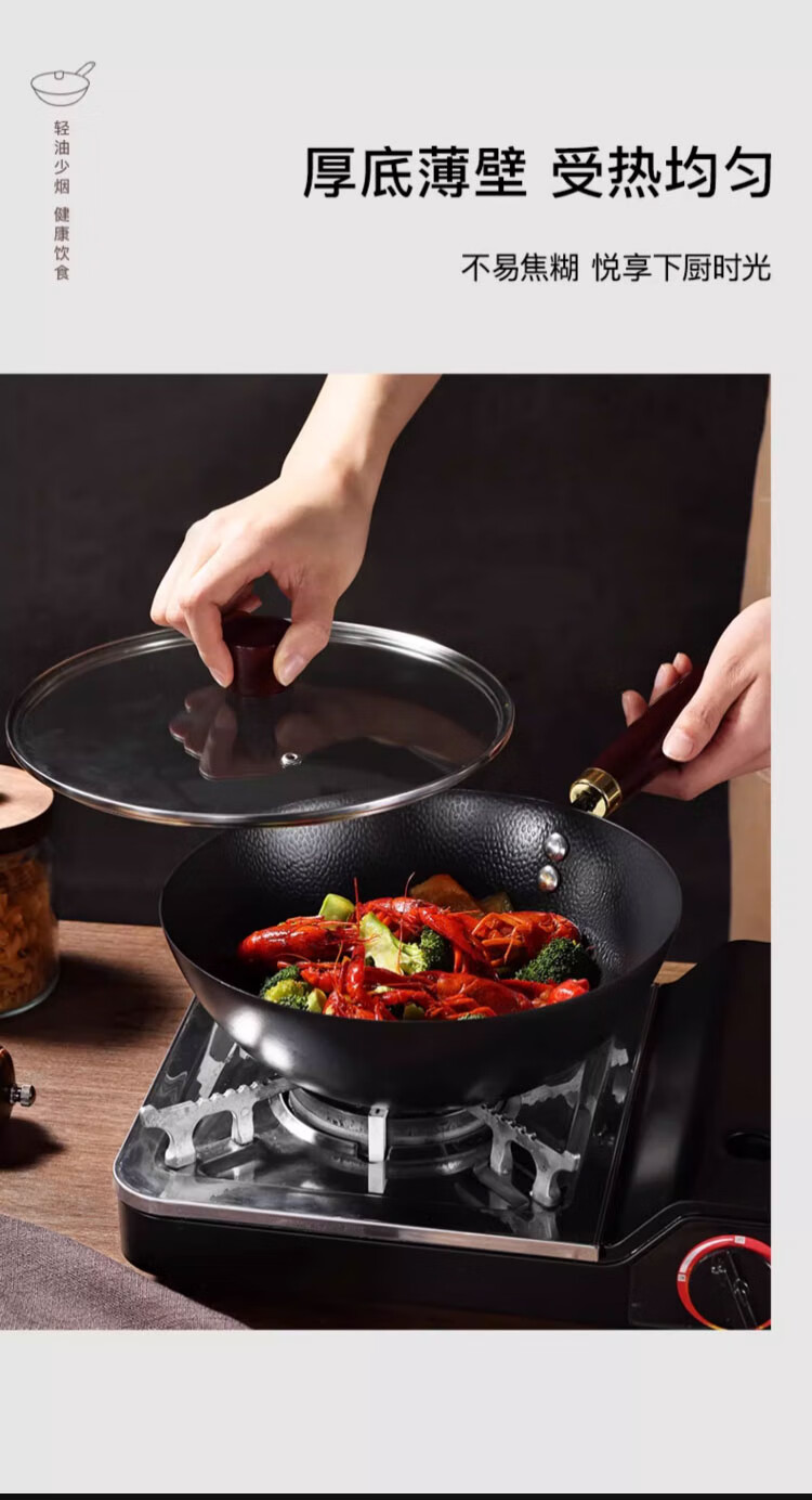 京严小铁锅一人食炒锅日式迷你无涂层炒菜不粘锅平底辅食锅电磁炉燃气 【0涂层|带锅盖】适合2-3人 24cm 锤纹锻打|双倍防锈|不挑灶具