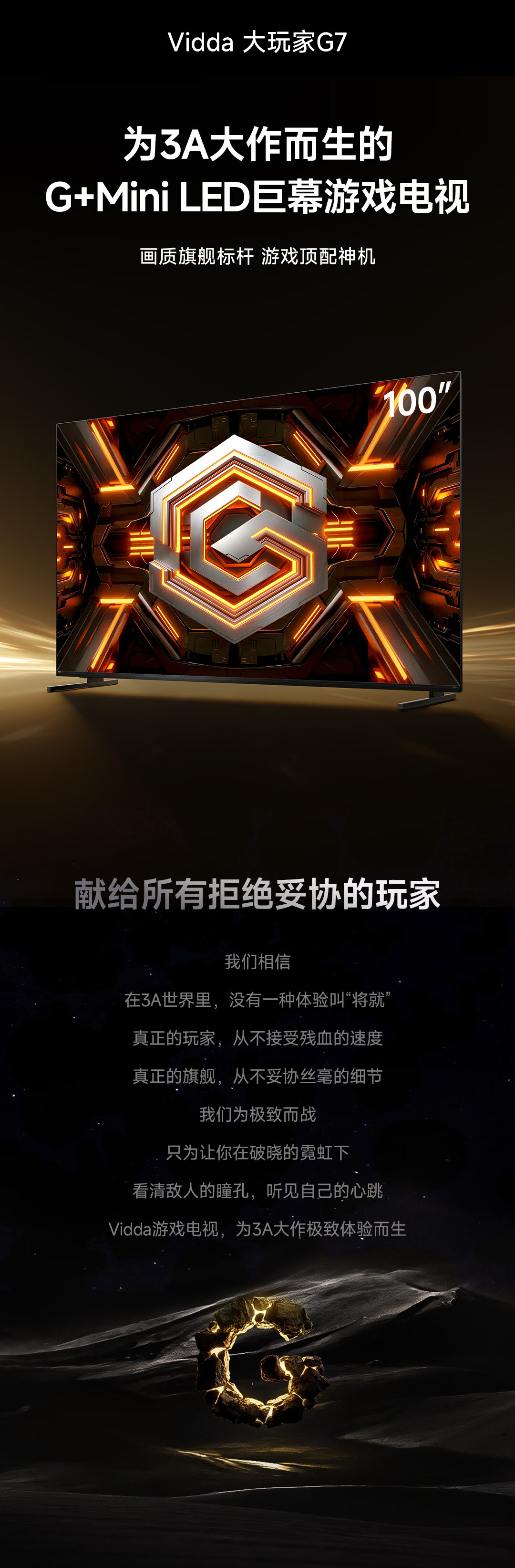 Vidda大玩家G7 海信电视100英寸G+Mini LED 黑曜屏Pro 影游双芯 330Hz高刷游戏电视 限时补贴GamingTV