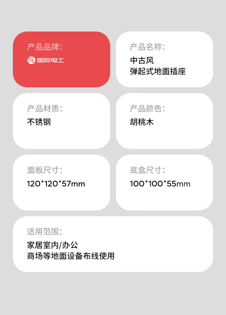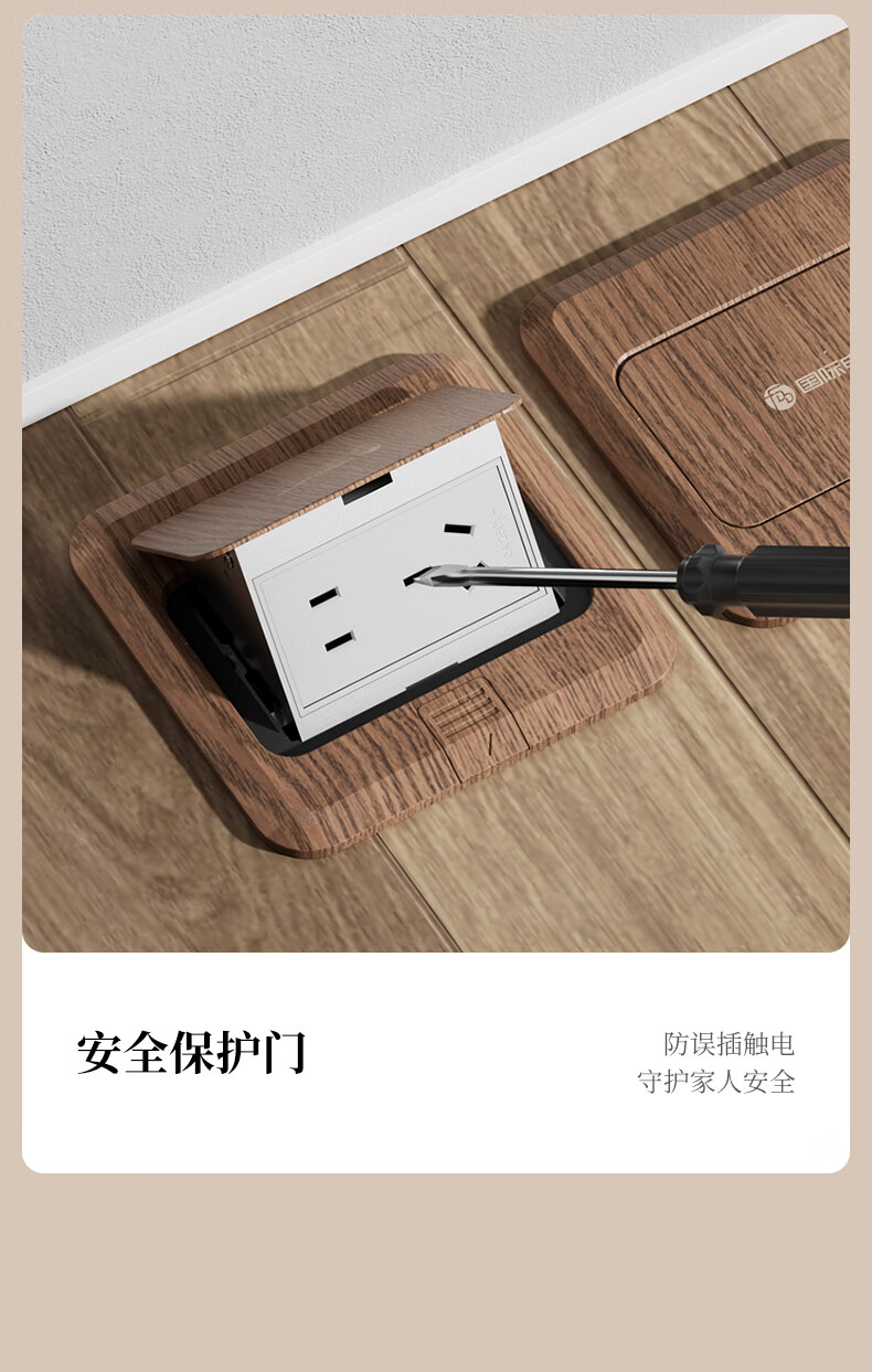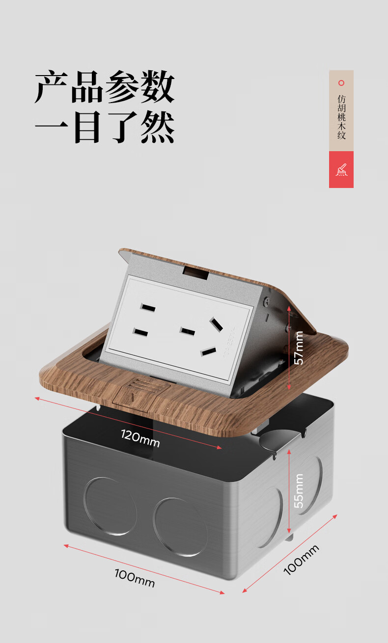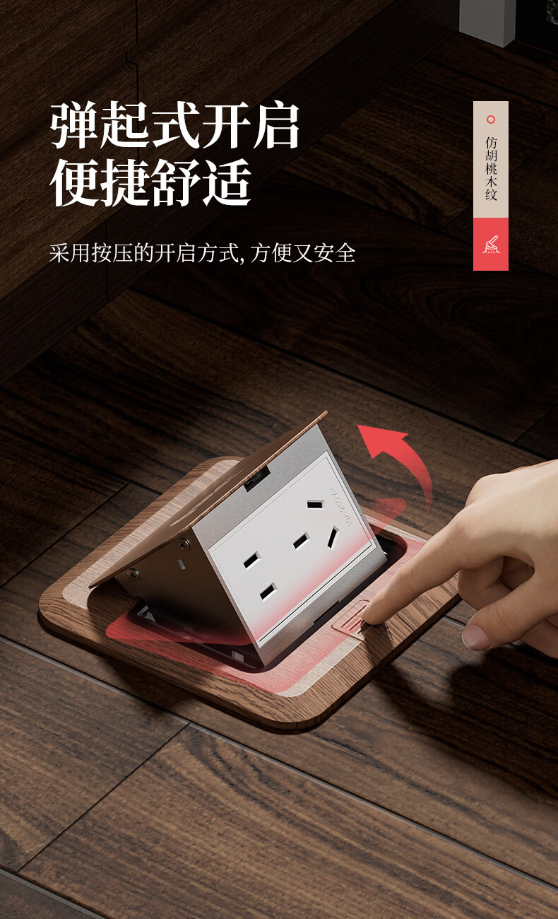 国际电工中古风超薄弹起式地插120型地面复古插座不锈钢防水暗盒地插盒 胡桃木-五孔插座