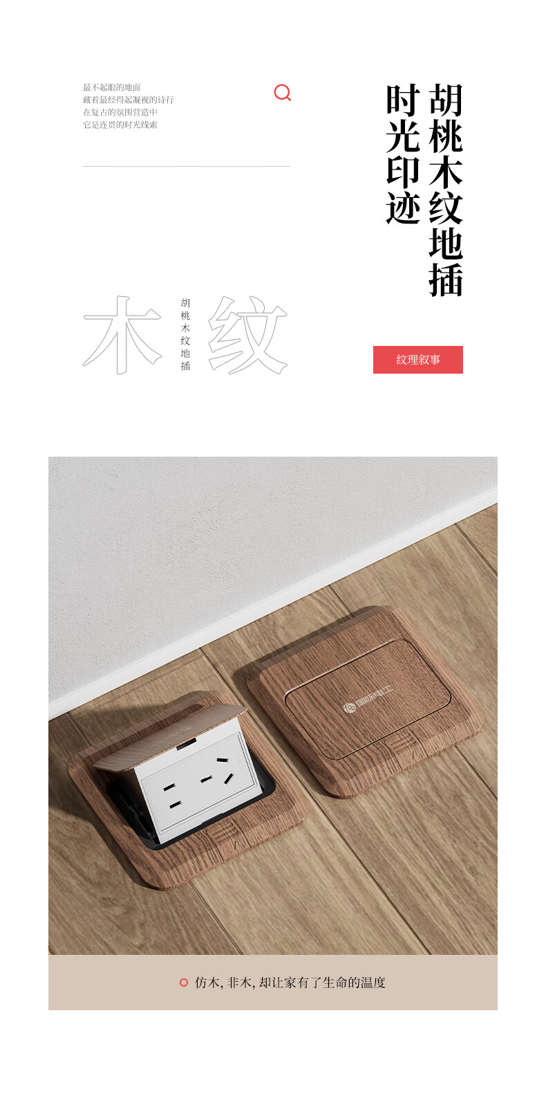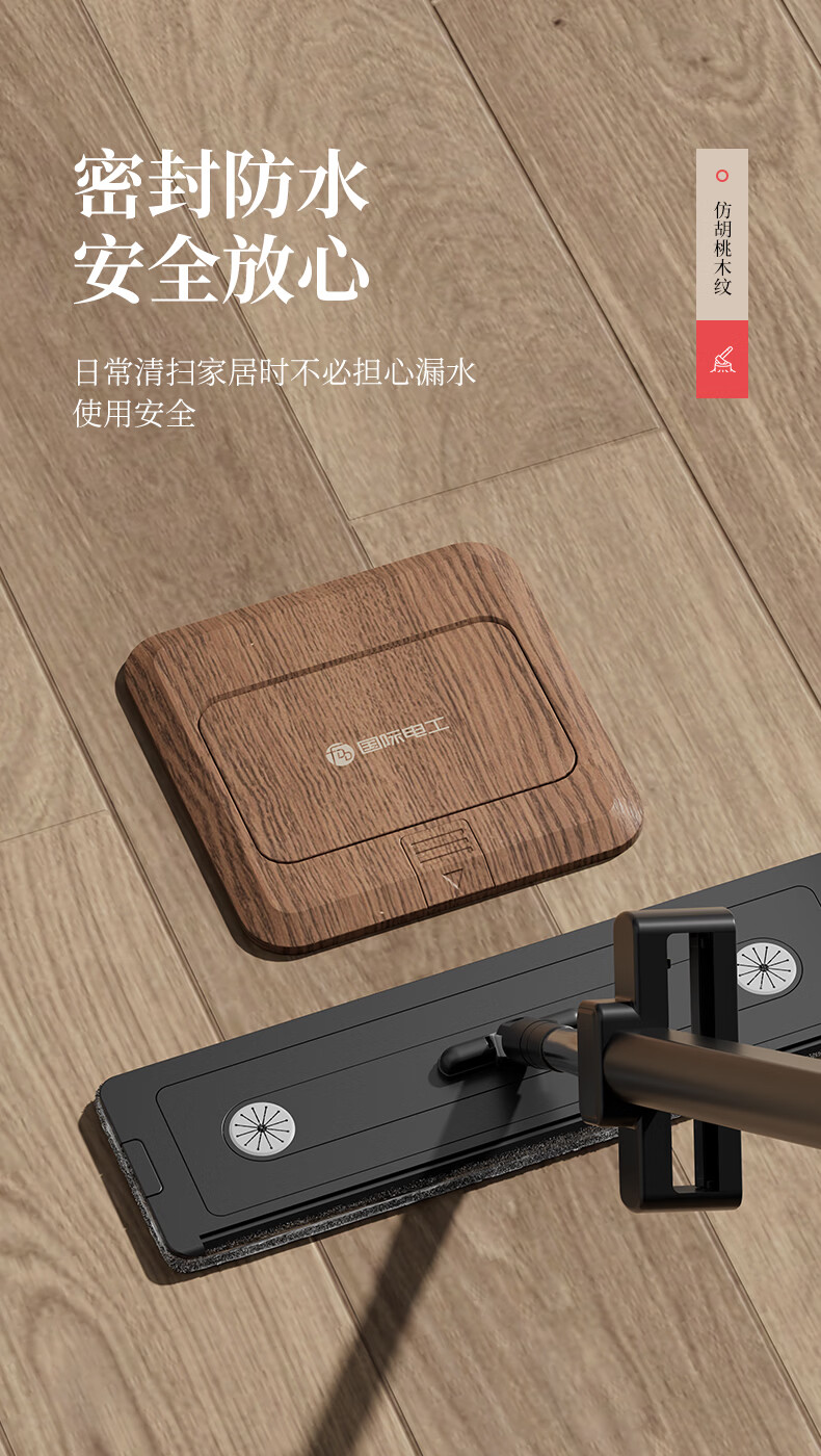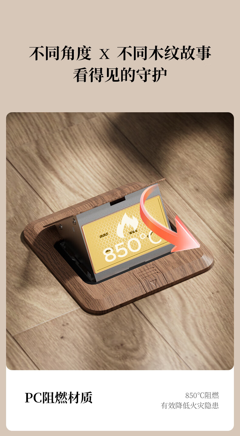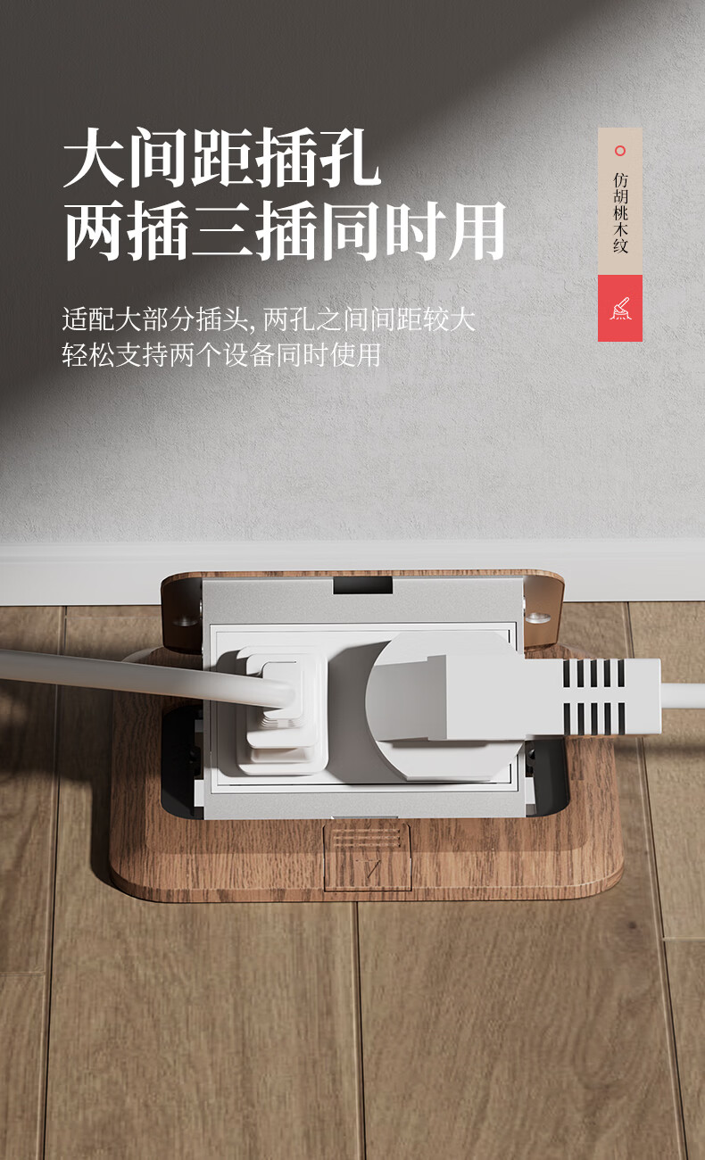 国际电工中古风超薄弹起式地插120型地面复古插座不锈钢防水暗盒地插盒 胡桃木-五孔插座
