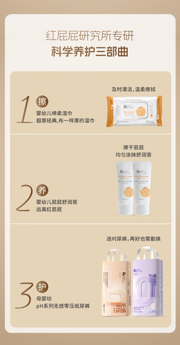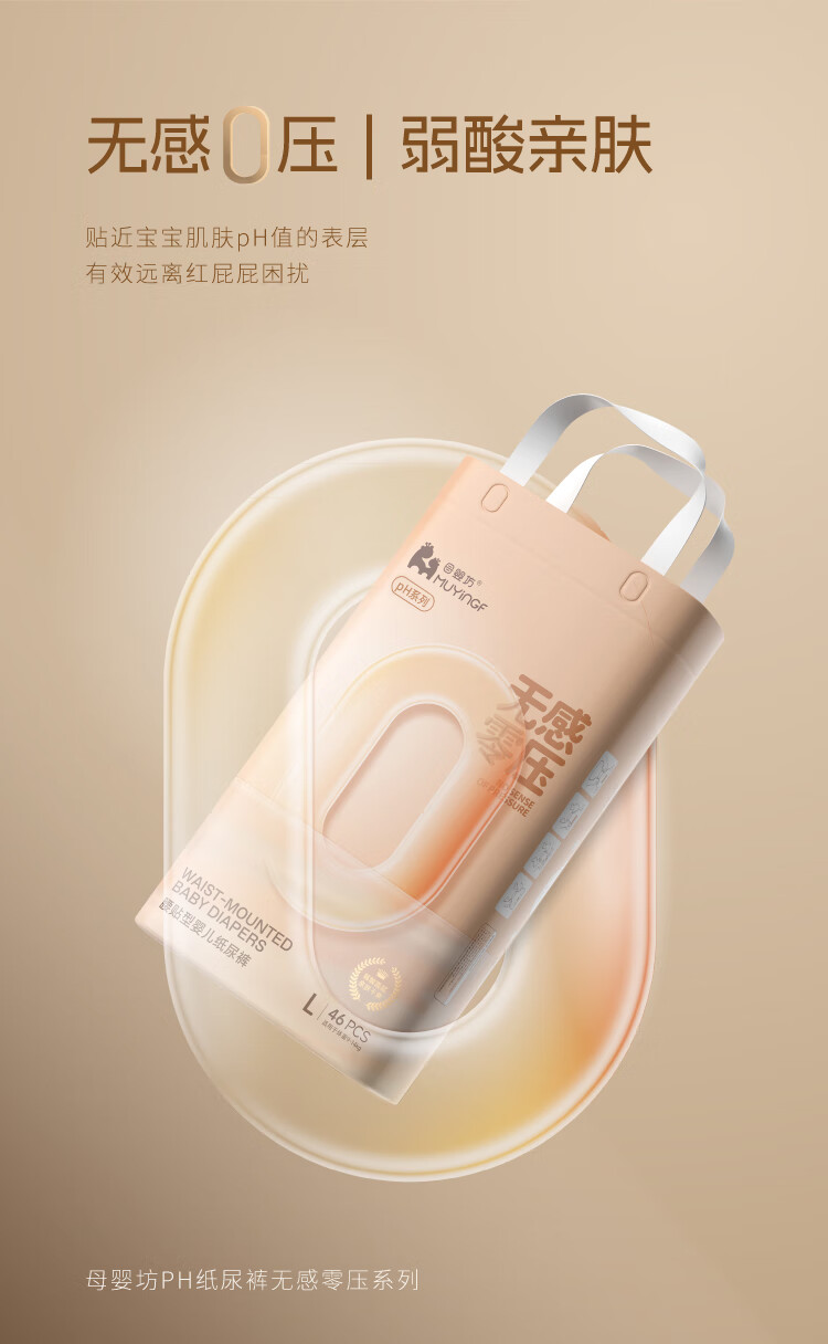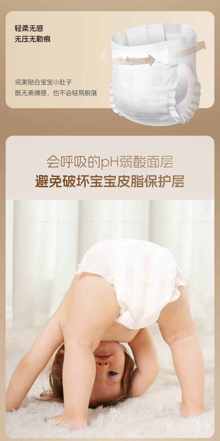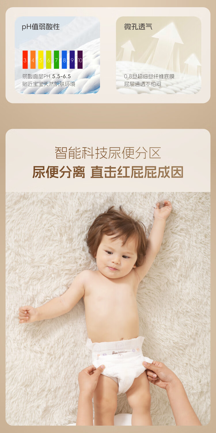 母婴坊PH无感零压系列纸尿裤M码3片尿便分离透气防红屁屁婴儿尿不湿