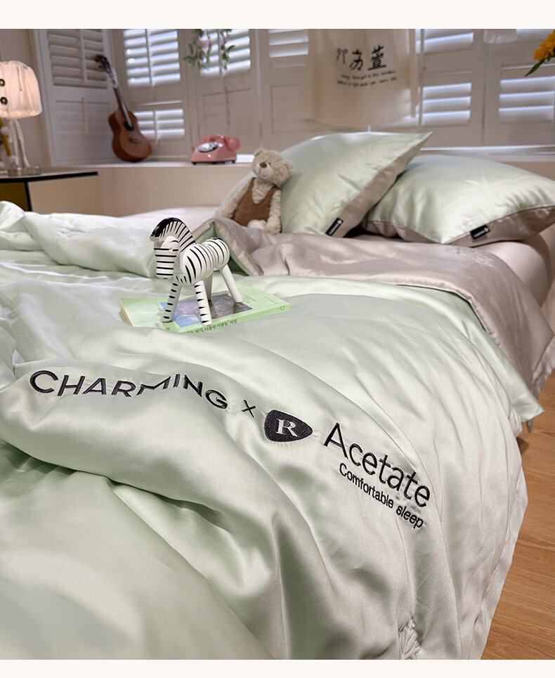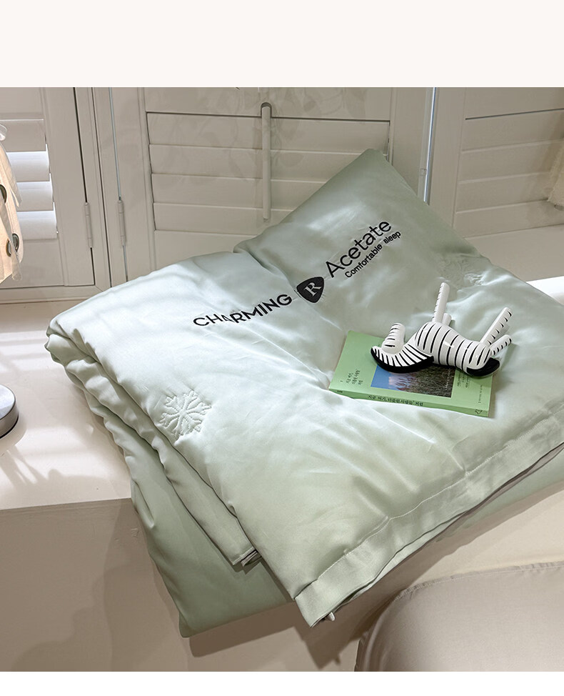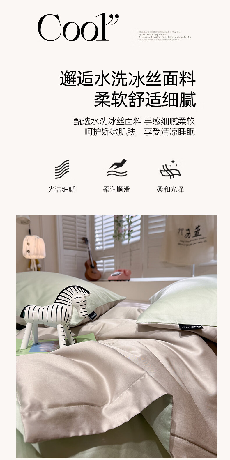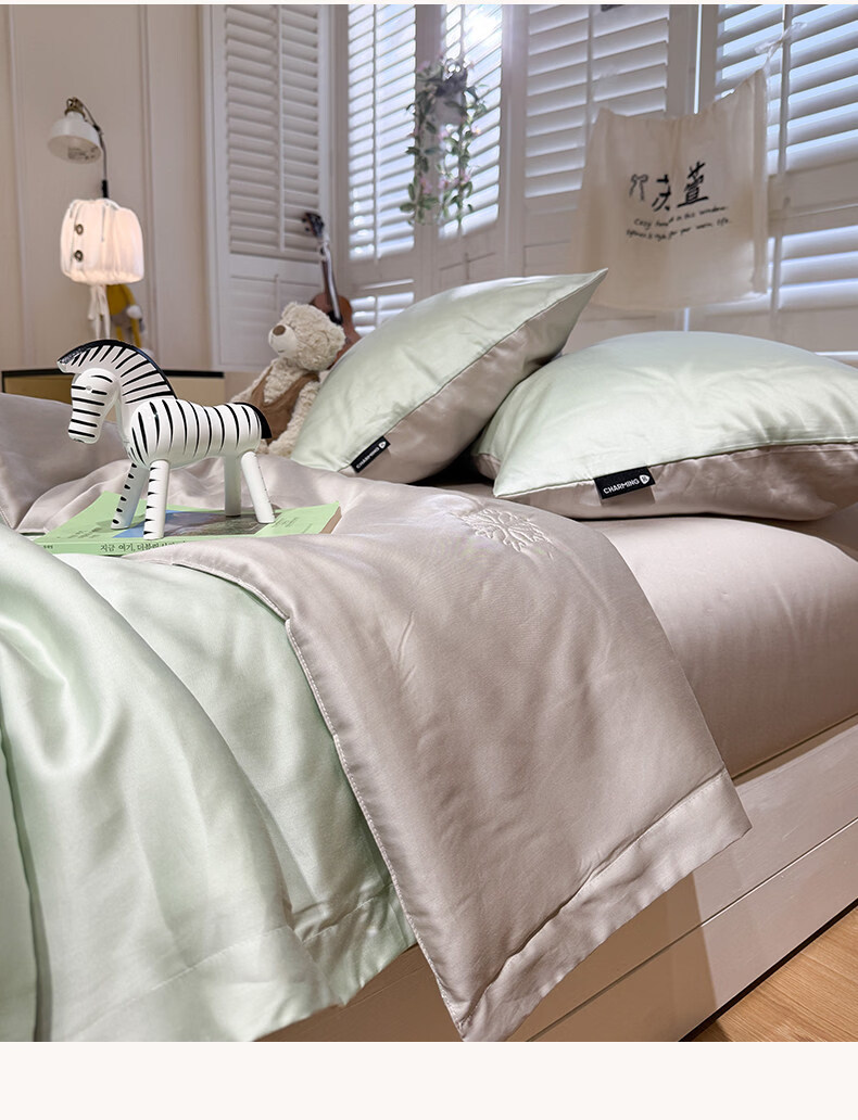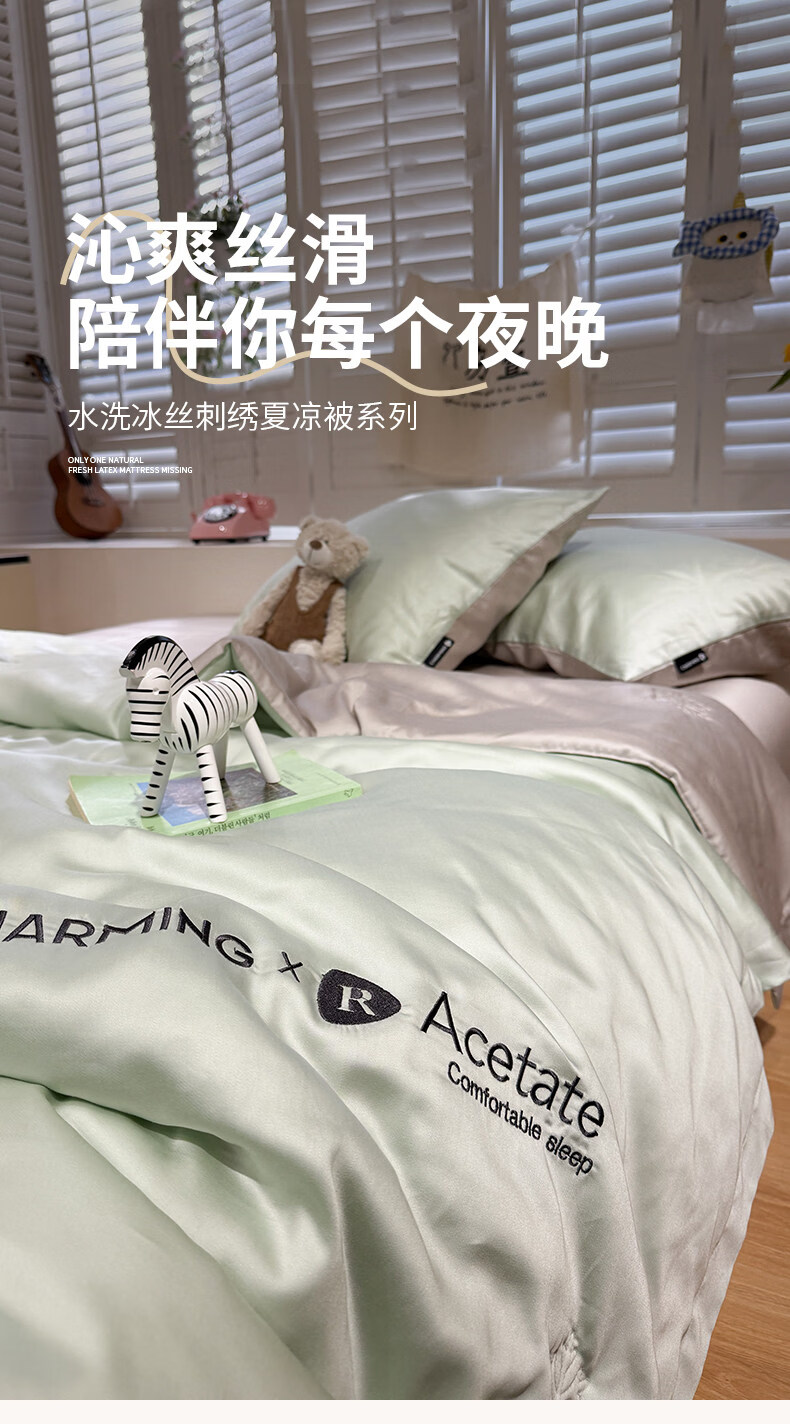 苏萱2026新款热卖水洗冰丝夏被四件套夏季夏凉被空调被可机水洗单双人 亚丁绿+冰川灰 单人夏被-150*200cm