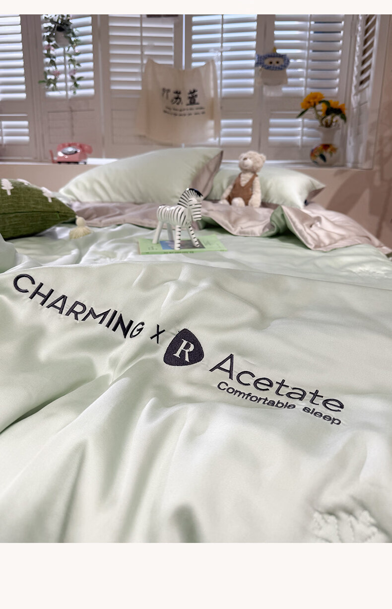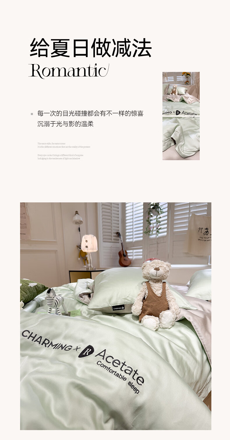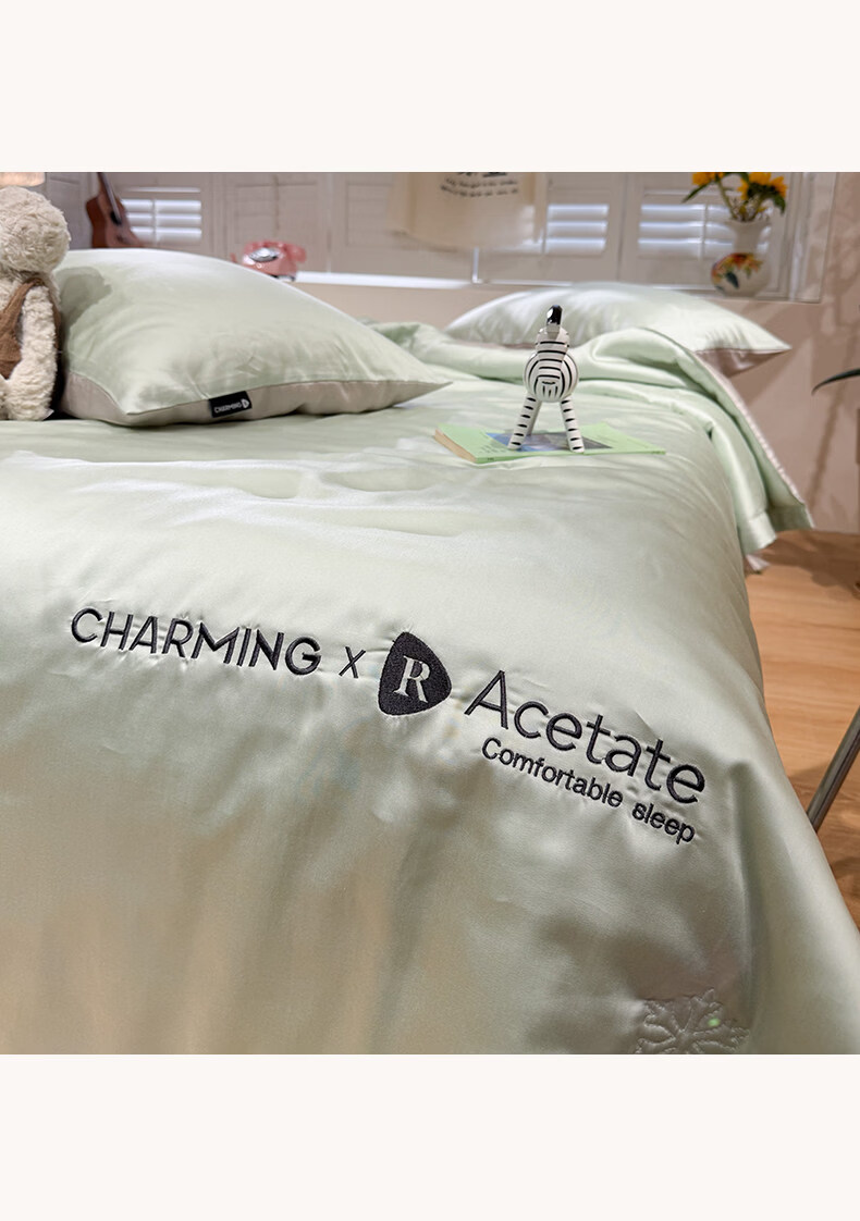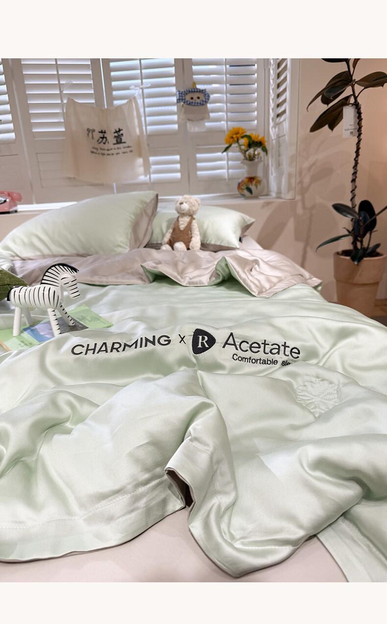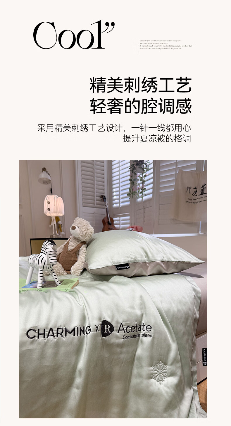 苏萱2026新款热卖水洗冰丝夏被四件套夏季夏凉被空调被可机水洗单双人 亚丁绿+冰川灰 单人夏被-150*200cm