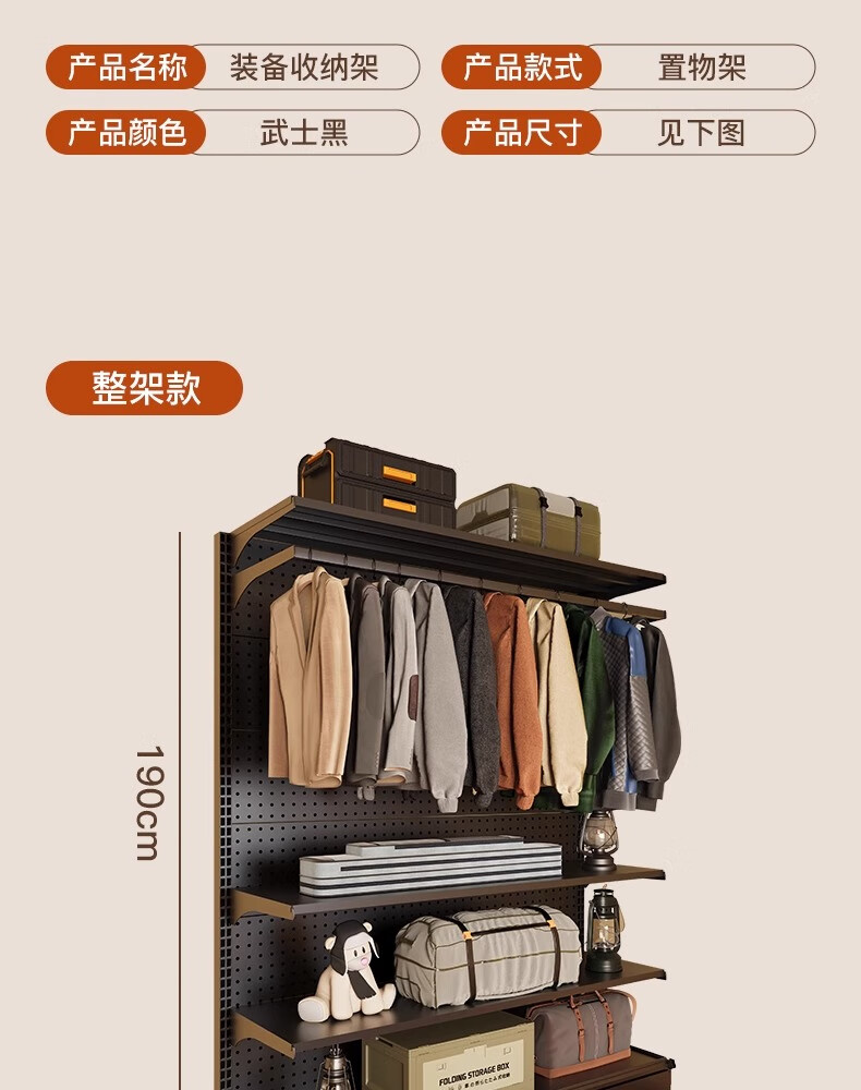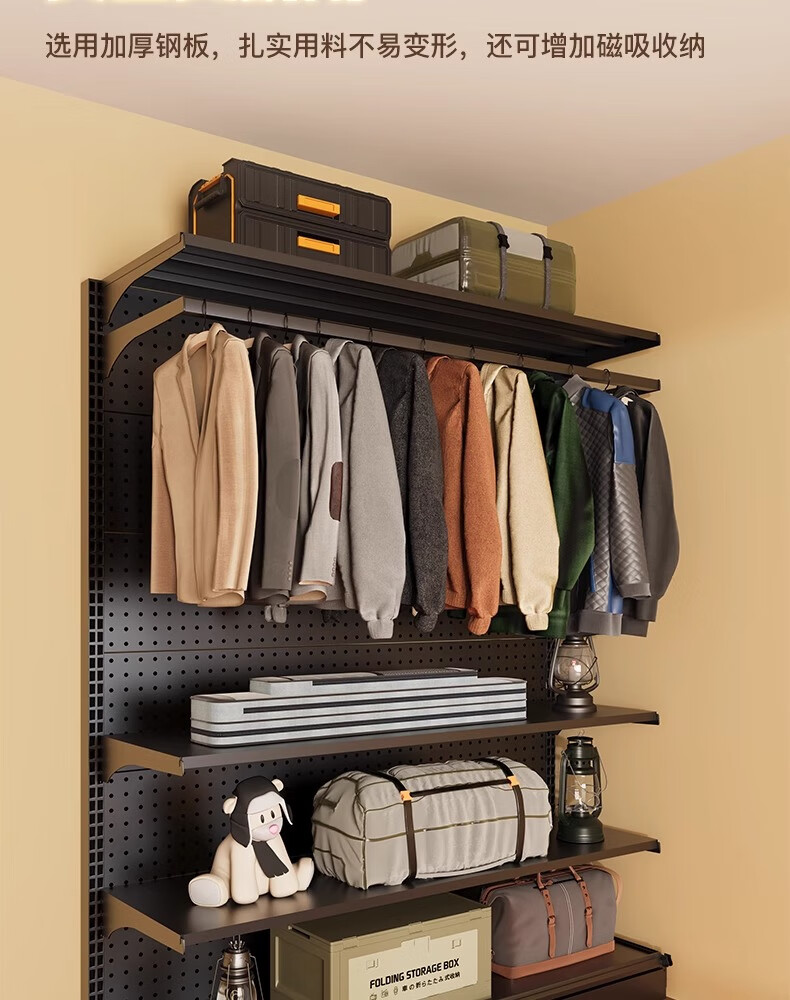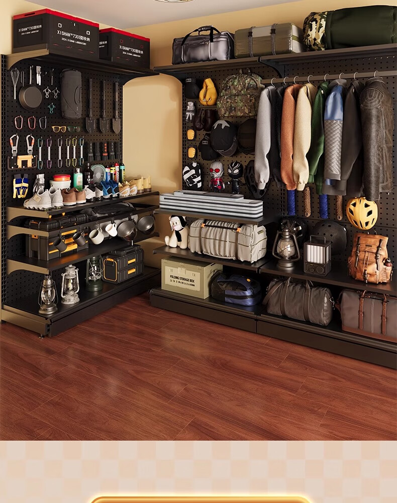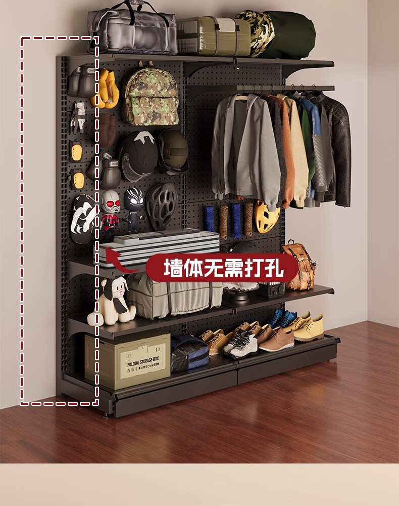 树浩洞洞板置物架免打孔立式储物架户外运动装备收纳架落地挂衣服架子 组合款181*40*190高 5层1挂+赠品