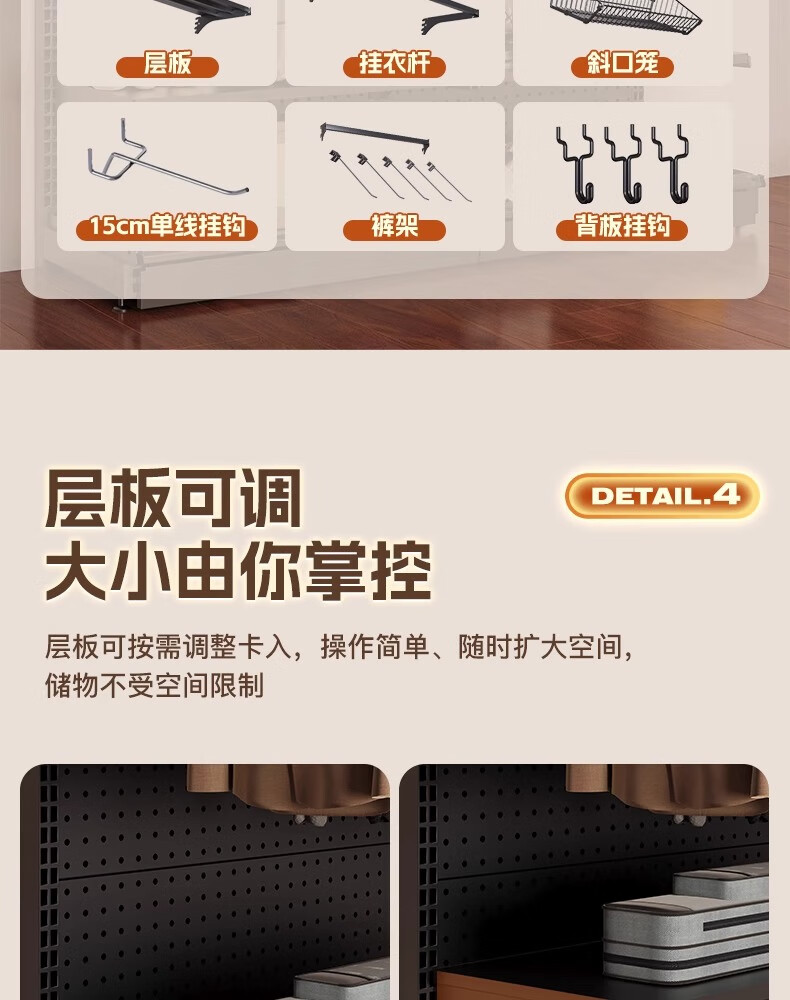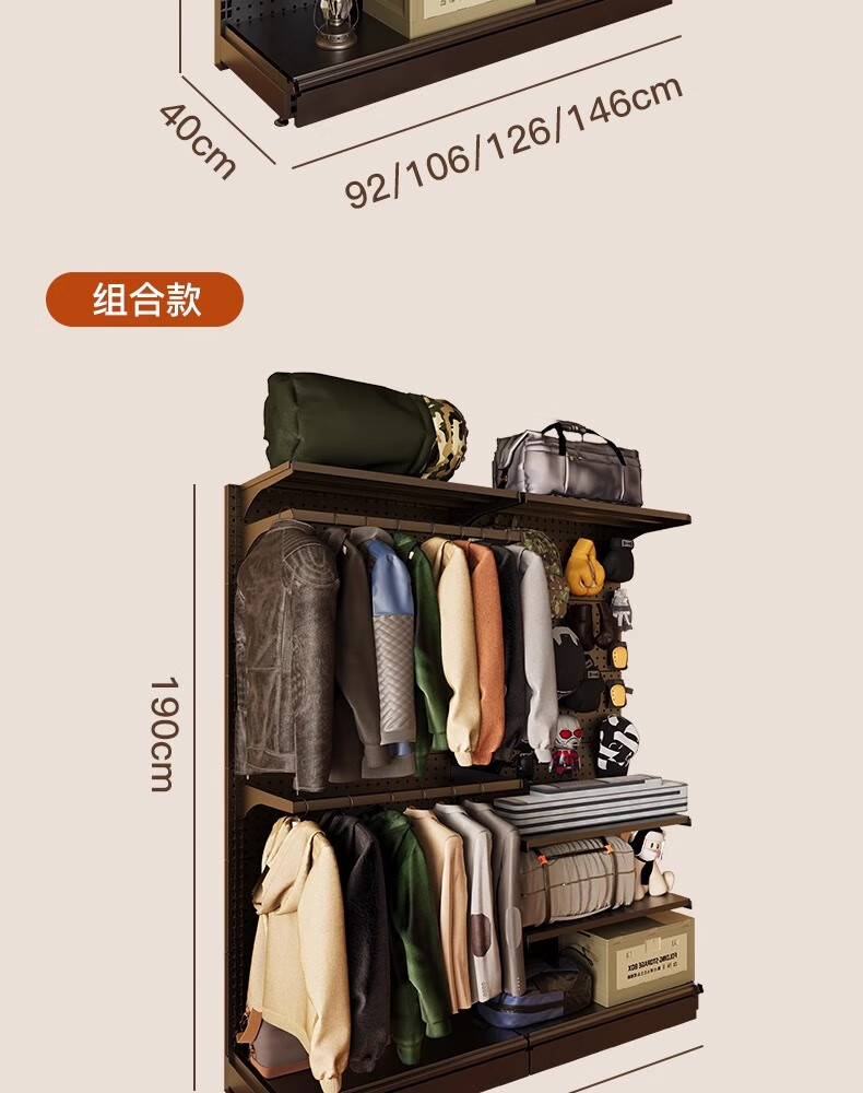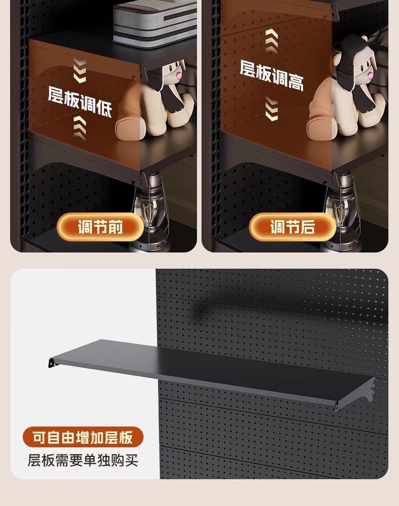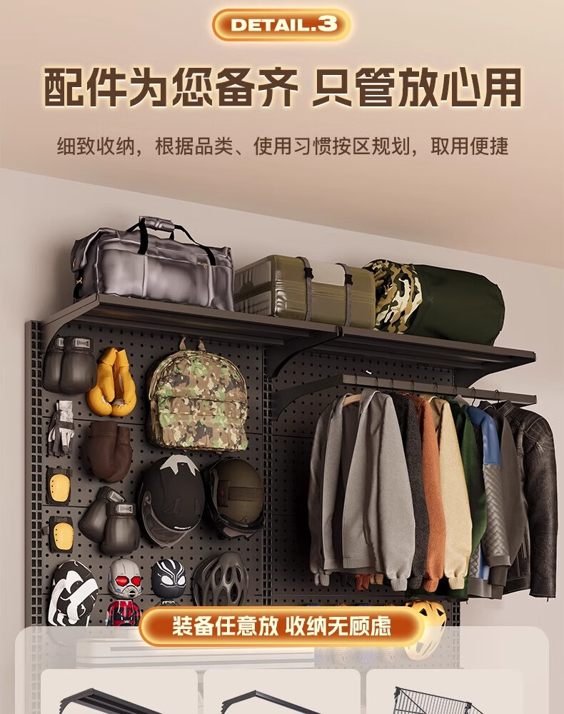 树浩洞洞板置物架免打孔立式储物架户外运动装备收纳架落地挂衣服架子 组合款181*40*190高 5层1挂+赠品