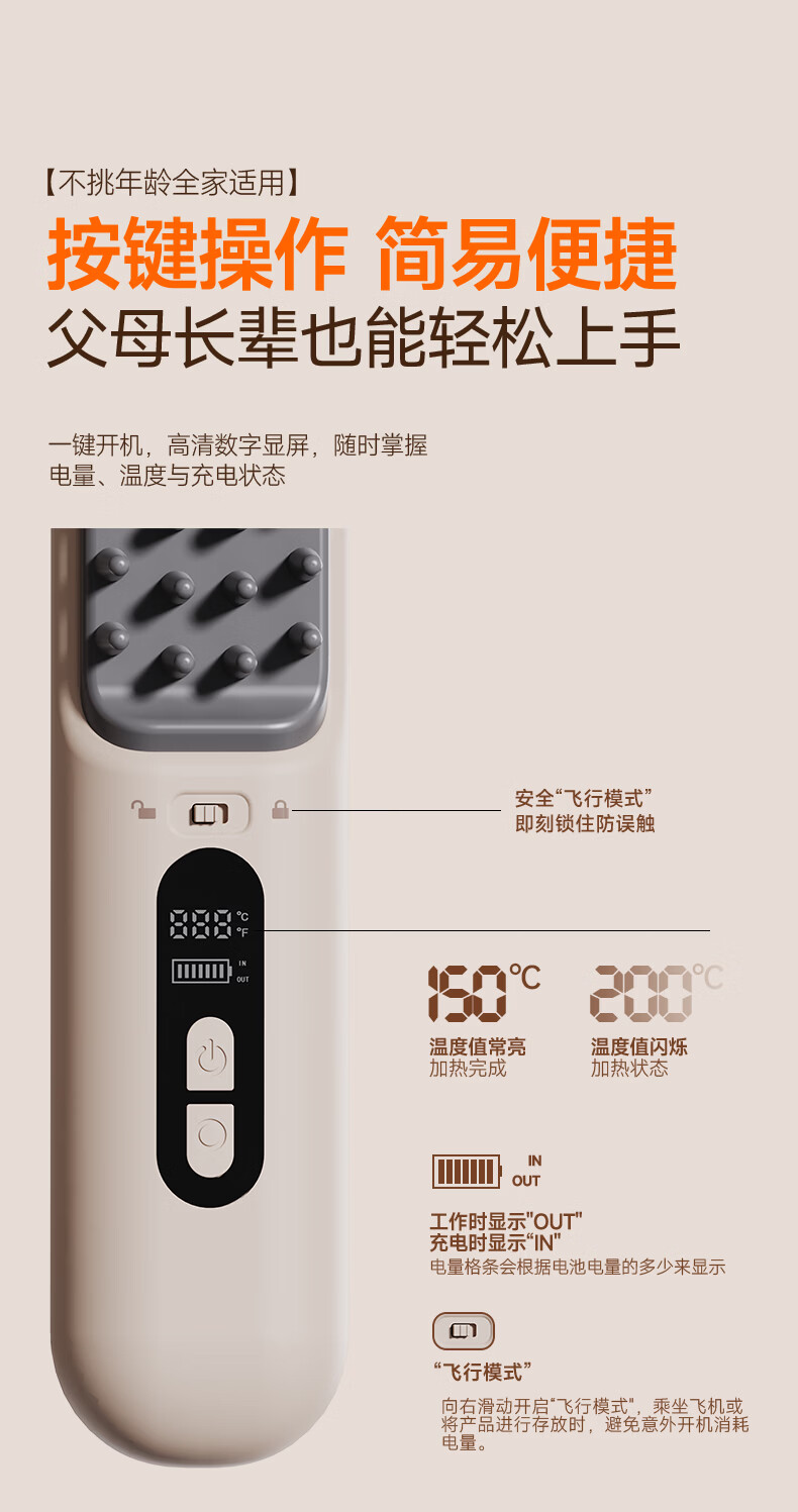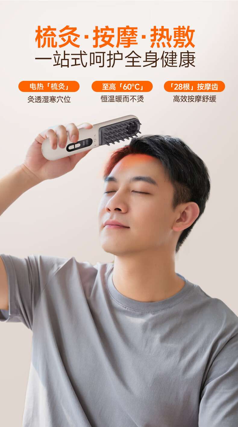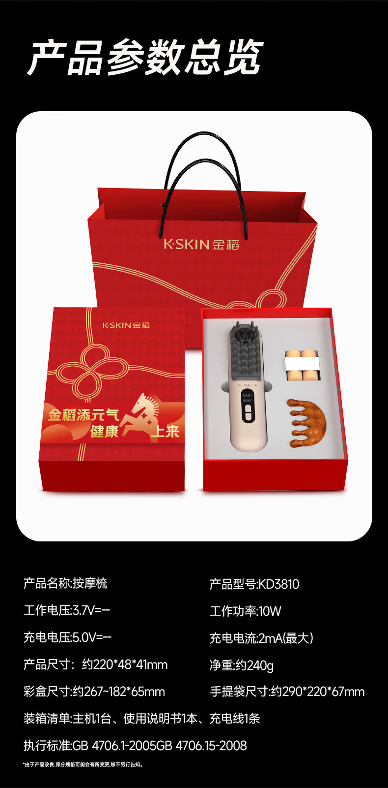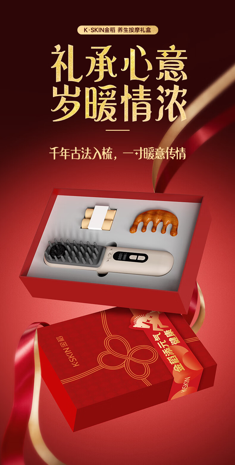 金稻按摩梳全身通用热敷疏通舒缓艾灸祛湿湿气重加热养生梳温热头部按摩器发型送长辈送礼KD3810礼盒