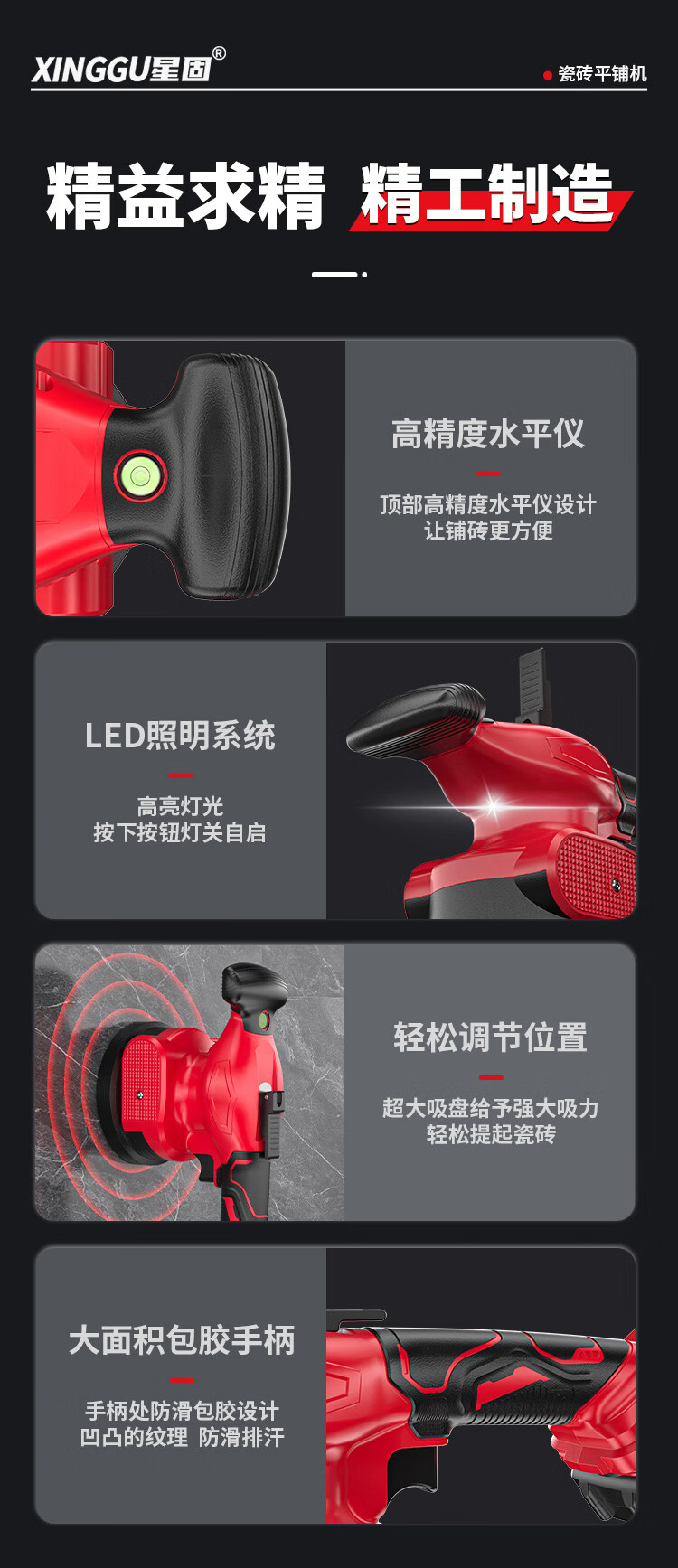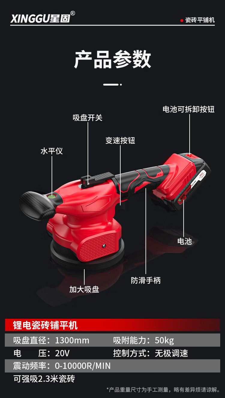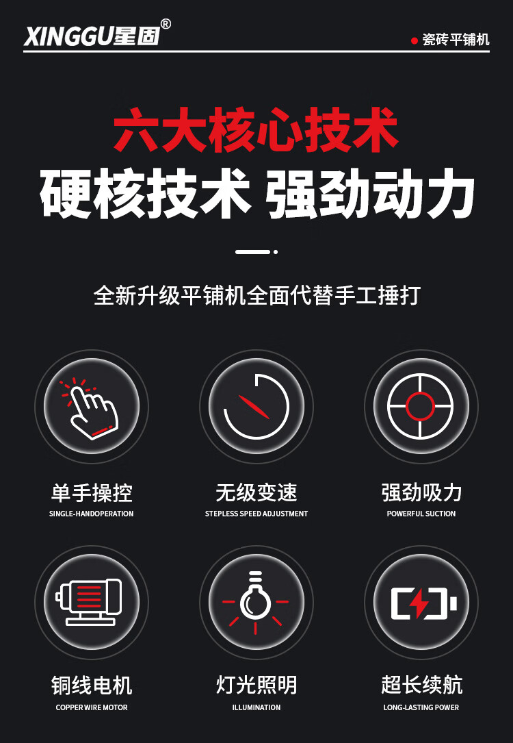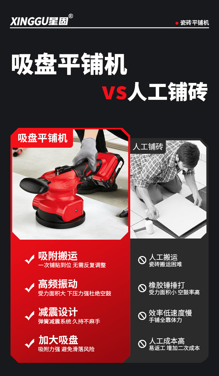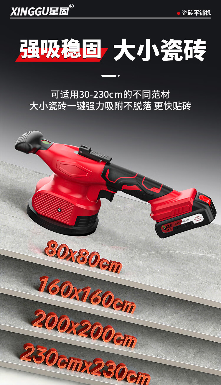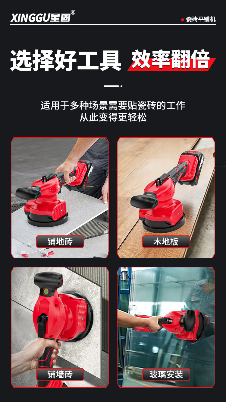 星固瓷砖平铺机铺地砖电动水平吸盘瓷砖专用吸提器大功率震动平板机 5节双电丨无级变速丨铜线电机