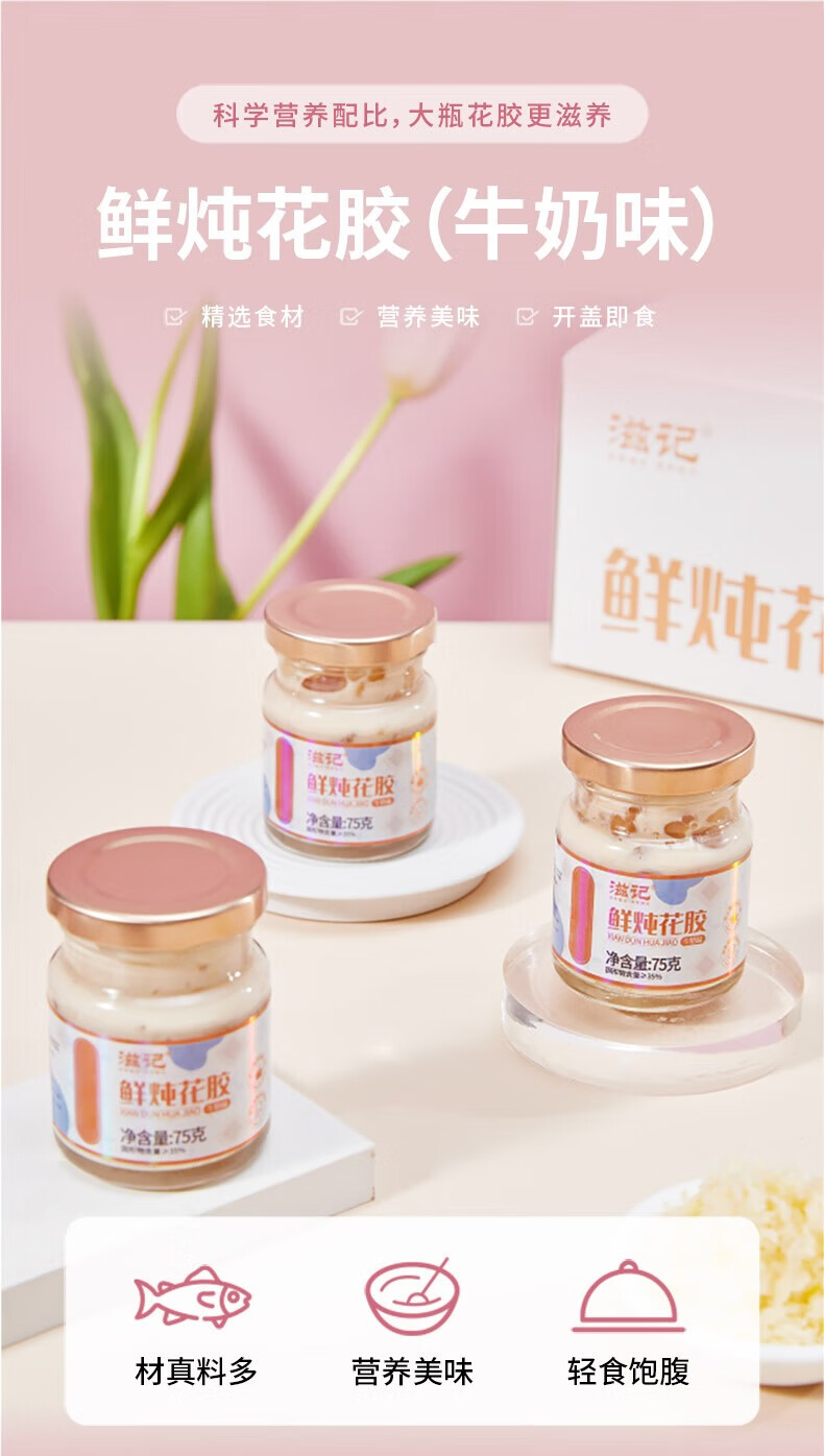 滋记鲜炖花胶 即食花胶补气血牛奶味鱼胶 孕妇女性营养补品送礼礼盒装 【爆款推荐 椰香花胶粥】 170g*8盒