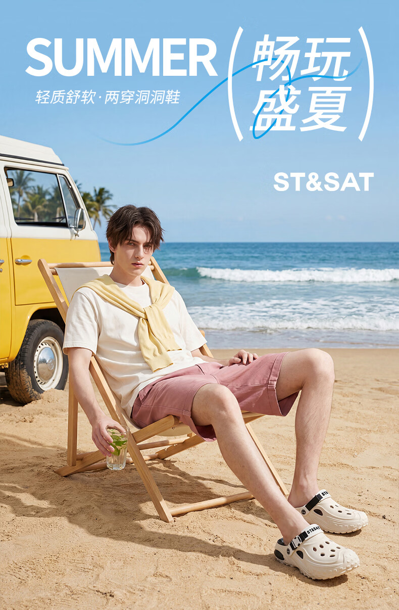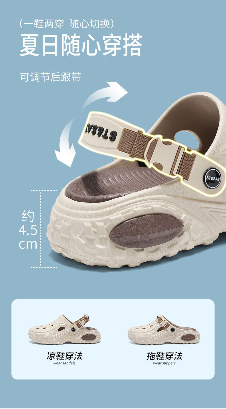 星期六(St&Sat)包头拖鞋男夏季外穿两穿洞洞鞋男士百搭踩屎感沙滩厚底休闲凉鞋男 白色 40-41 标准运动尺码