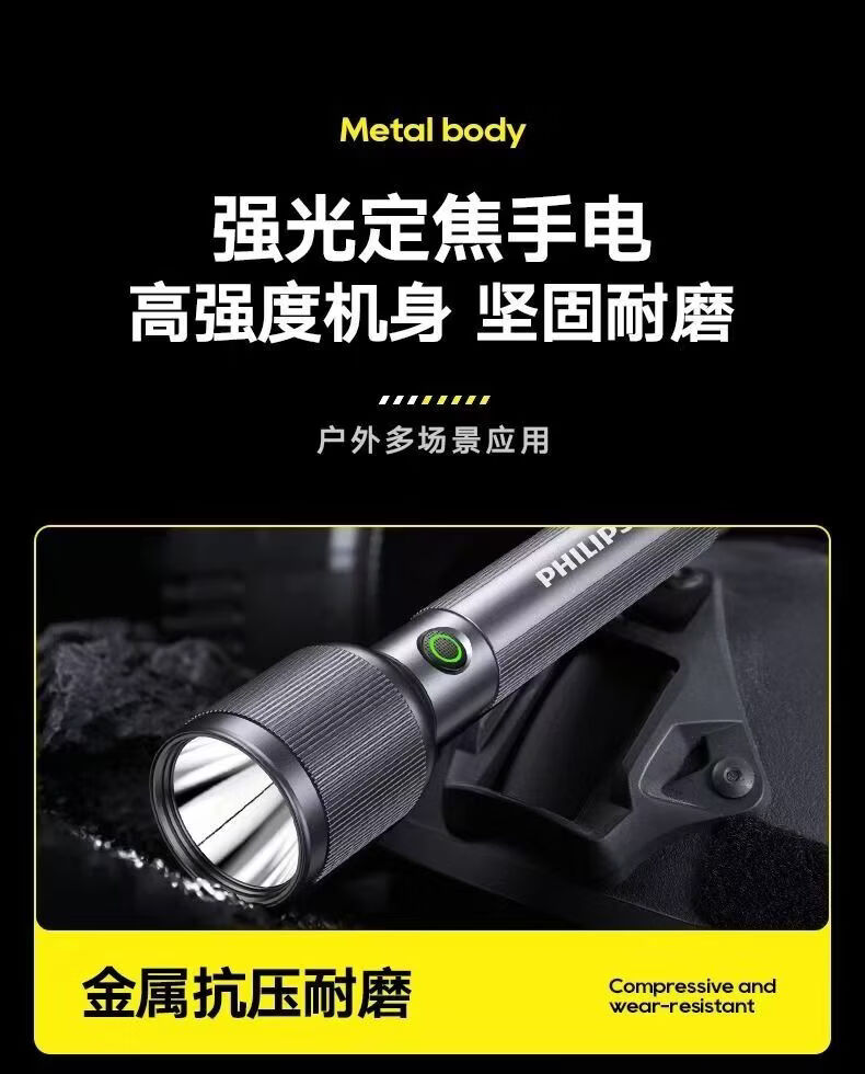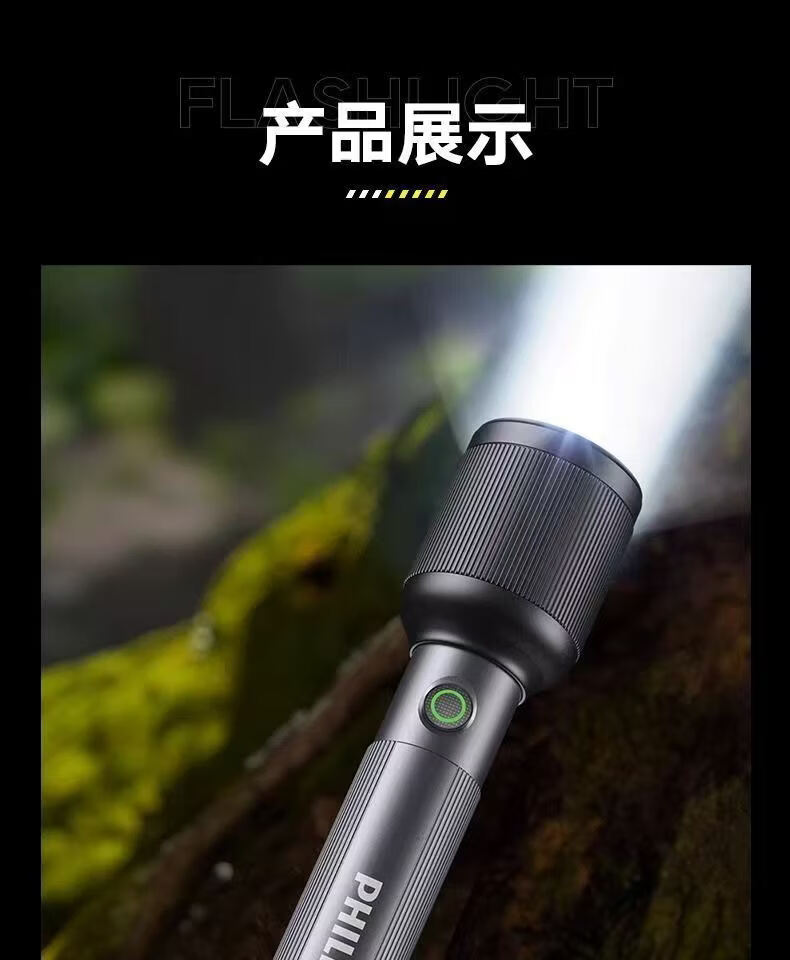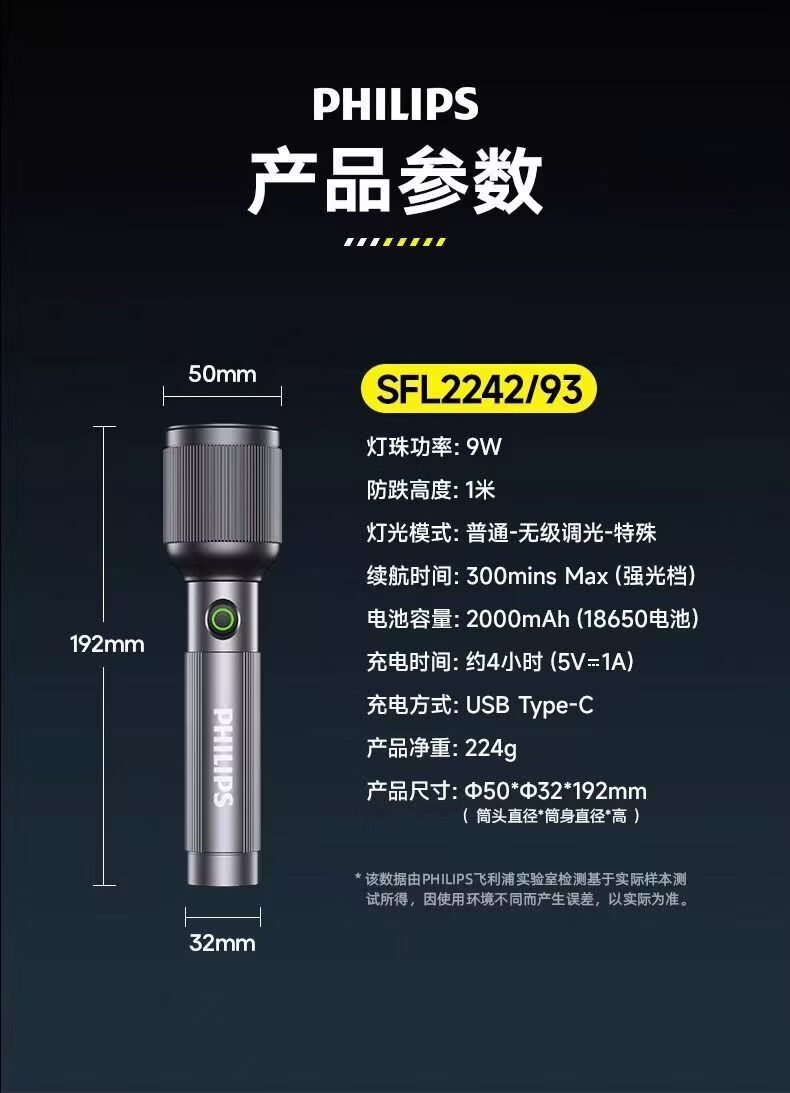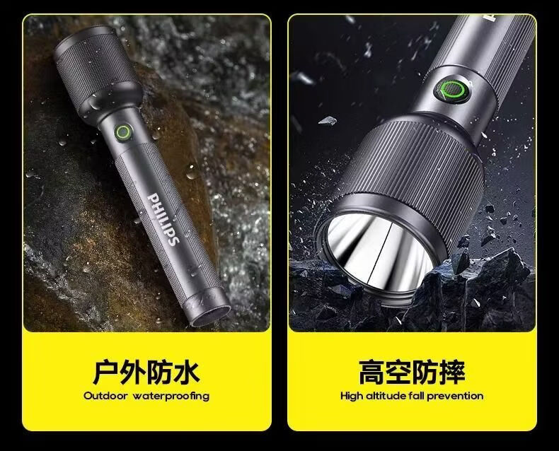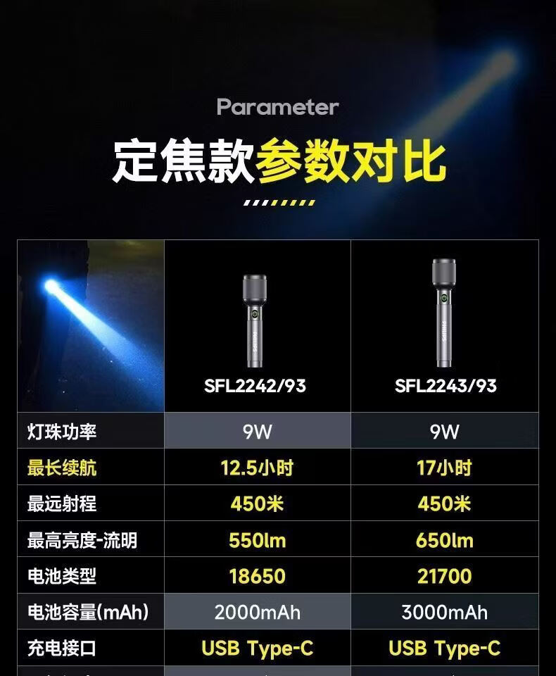 飞利浦(PHILIPS)变焦手电筒强光高亮充电长续航家用户外远射户外SFL2242/SFL2243 9W/2000毫安/定焦/SFL2242