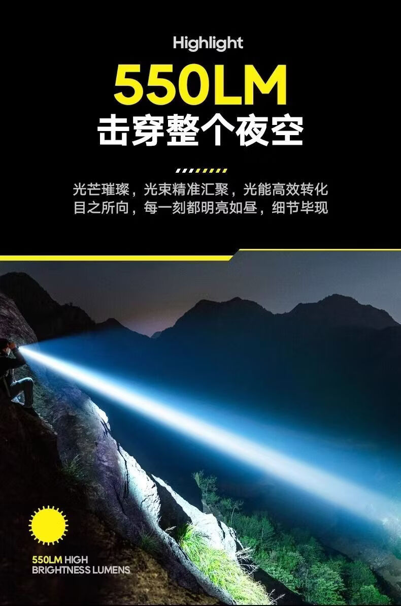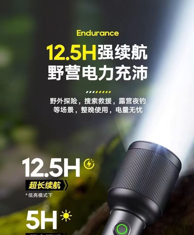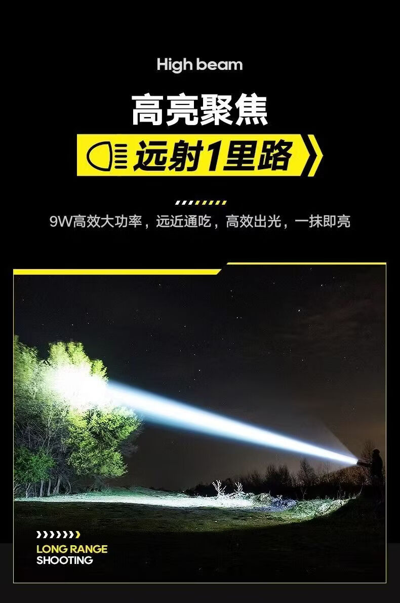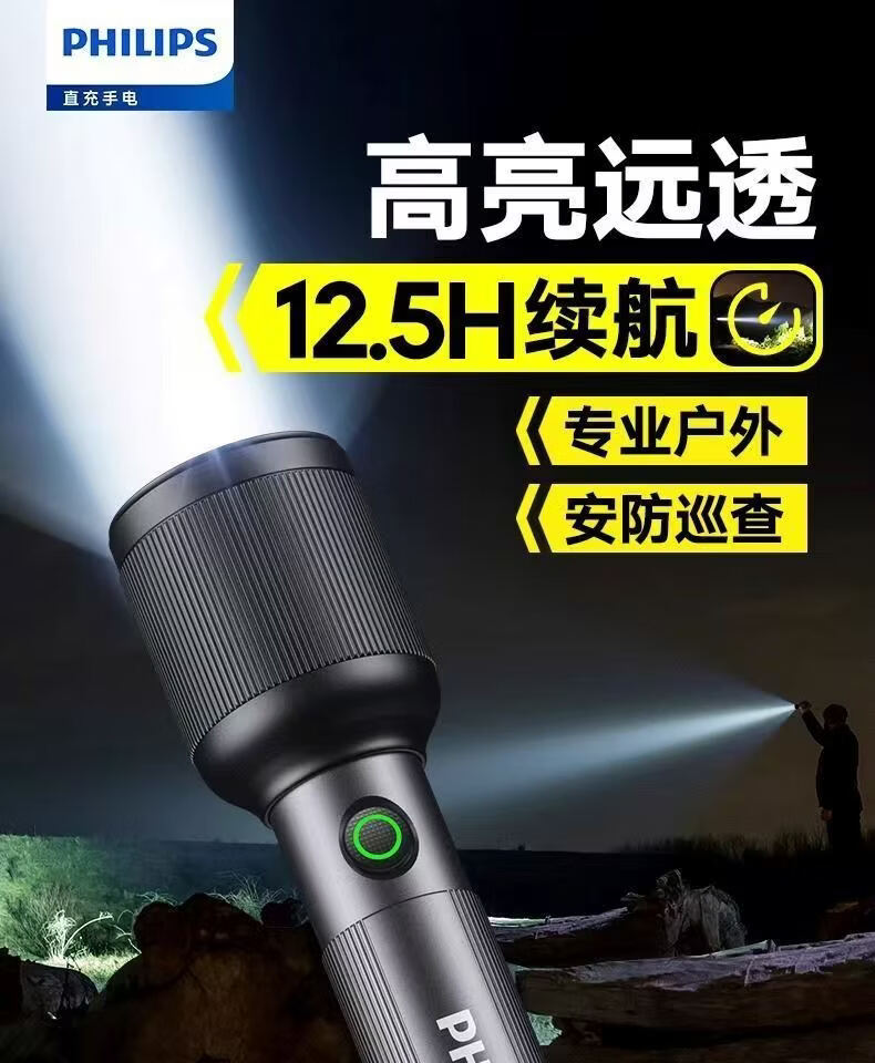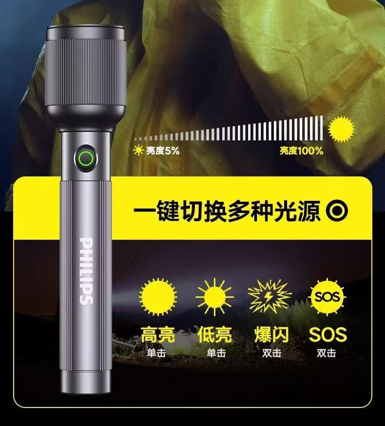 飞利浦(PHILIPS)变焦手电筒强光高亮充电长续航家用户外远射户外SFL2242/SFL2243 9W/2000毫安/定焦/SFL2242