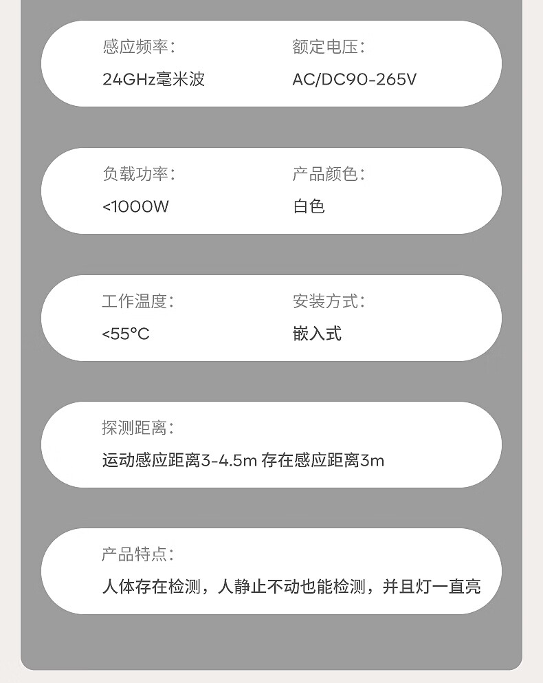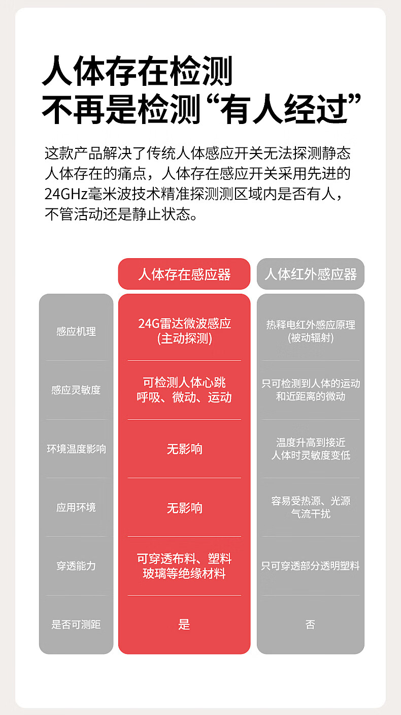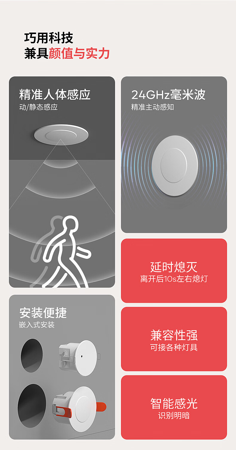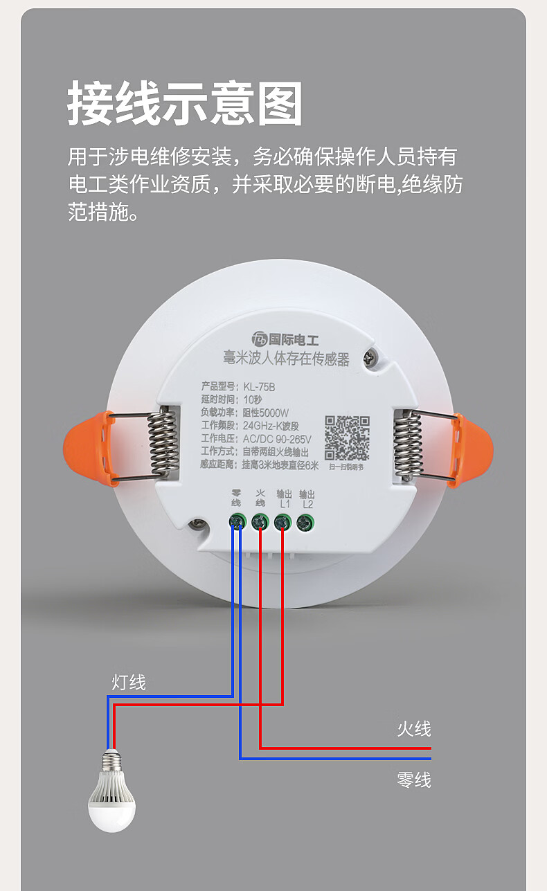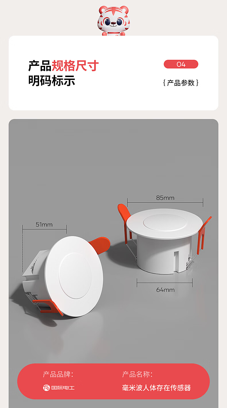 国际电工(FDD)人体存在感应器开关智能识别办公家用吸顶嵌入式24G毫米波传感器 开孔【70-80mm】 40A人体存在感应器(可调节)