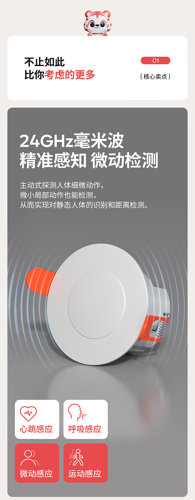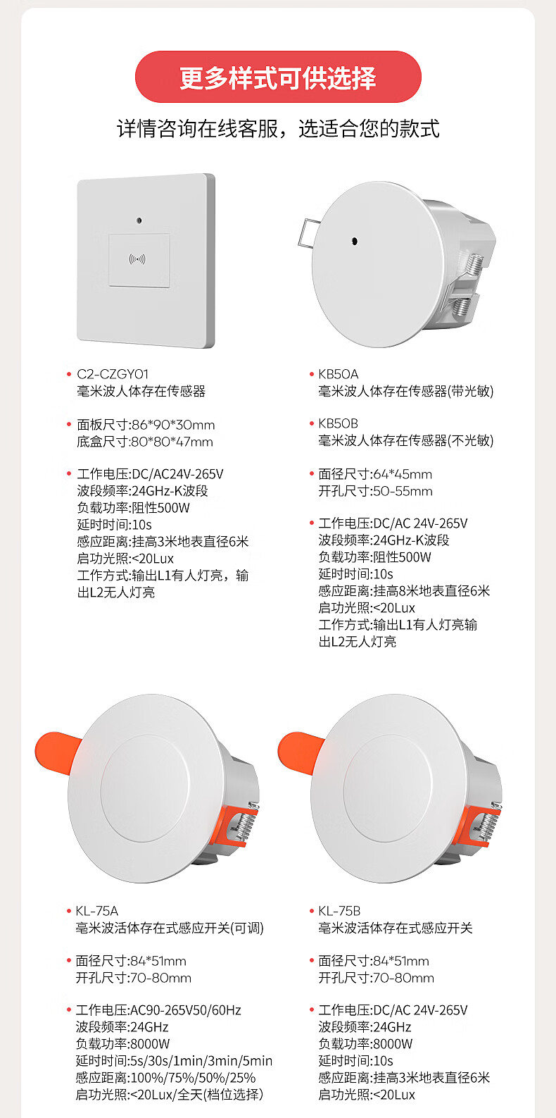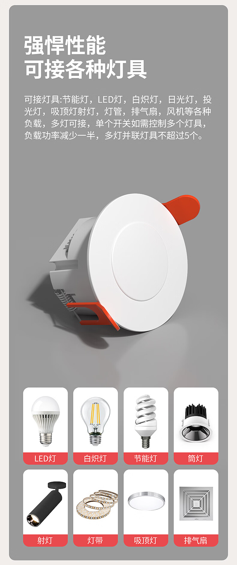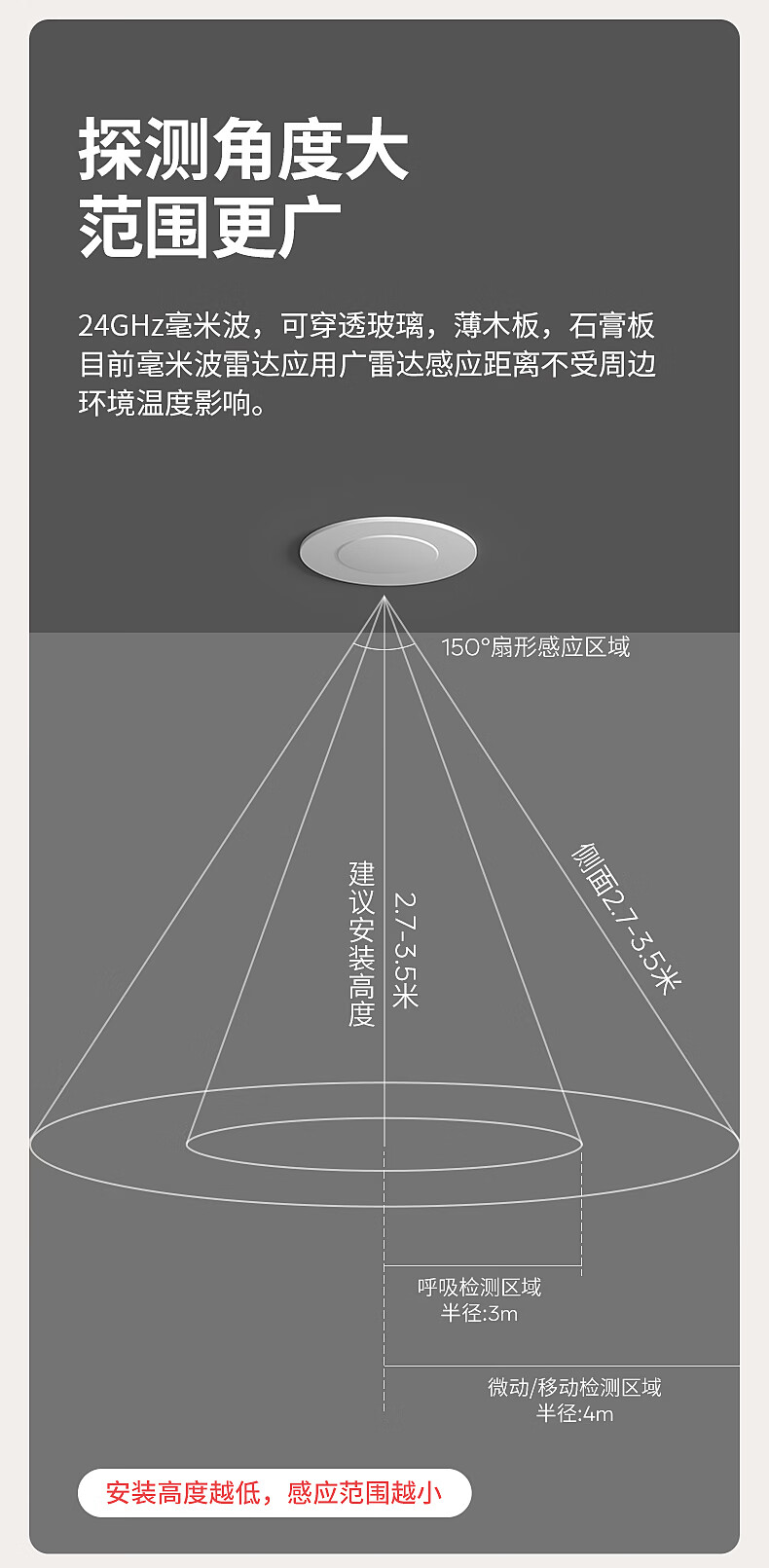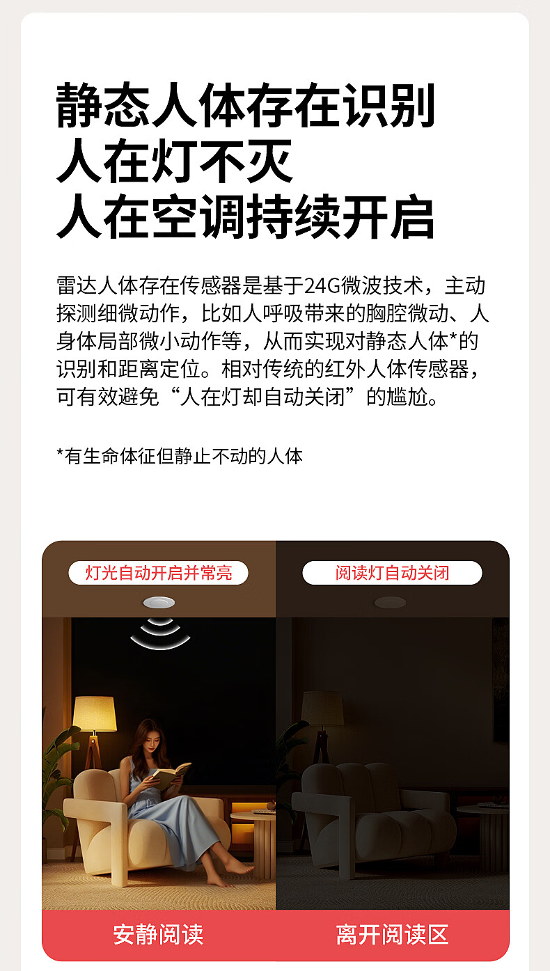 国际电工(FDD)人体存在感应器开关智能识别办公家用吸顶嵌入式24G毫米波传感器 开孔【70-80mm】 40A人体存在感应器(可调节)