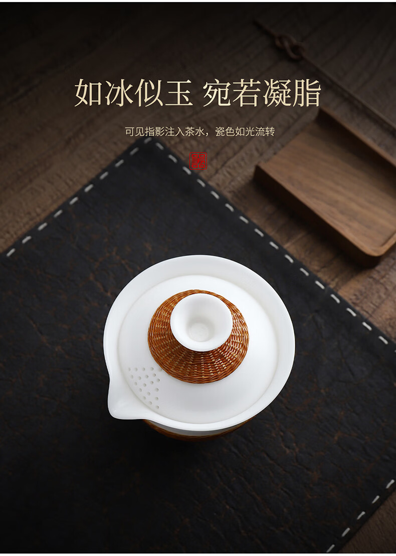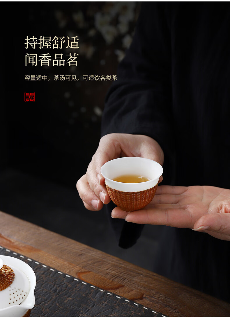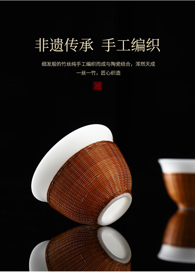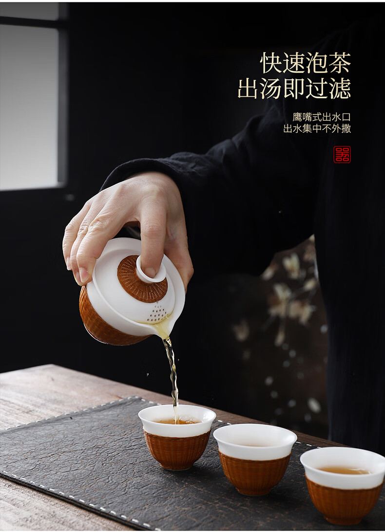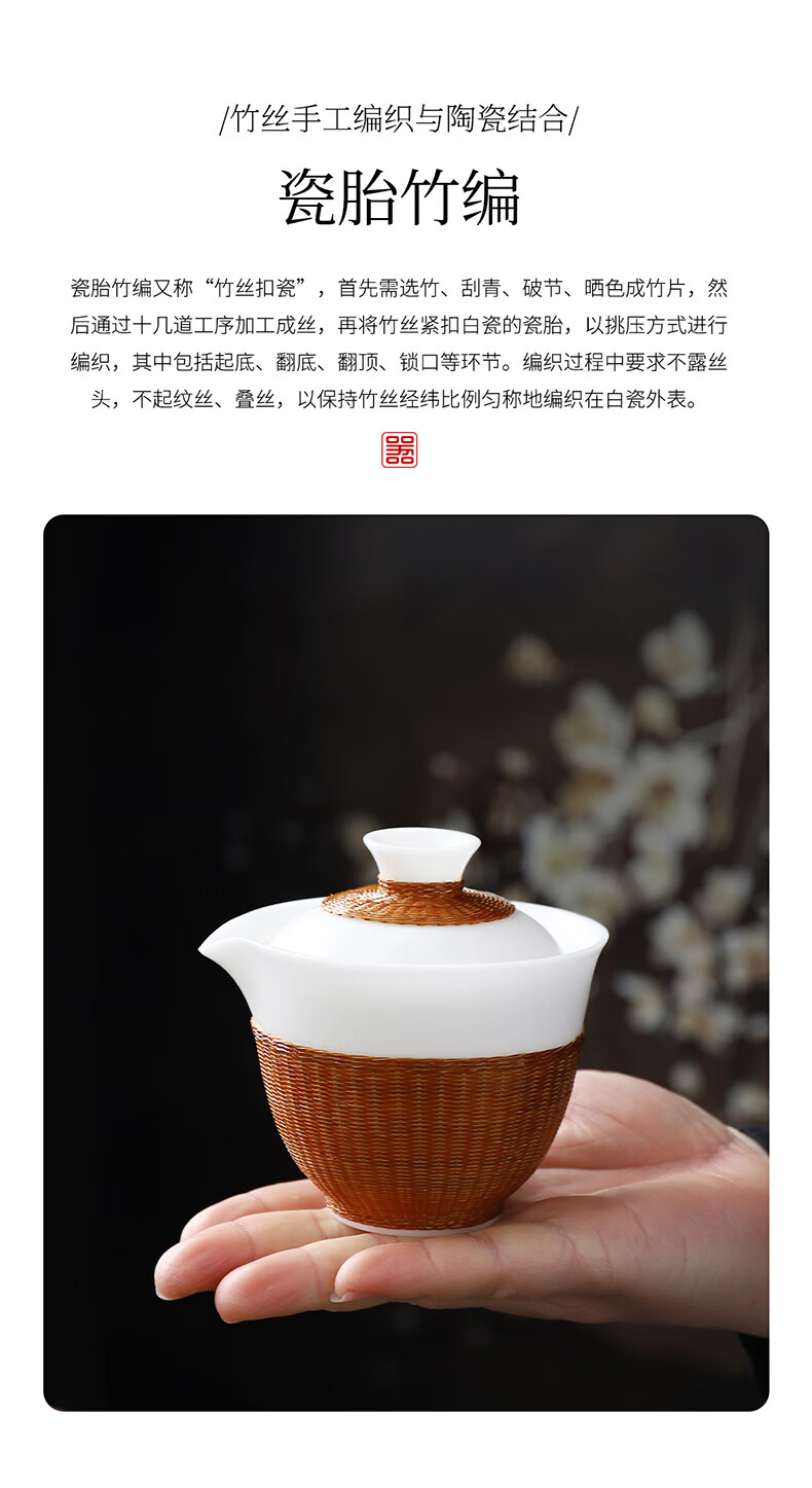 器美优品竹丝扣瓷旅行茶具便携式快客杯瓷胎竹编非遗手工四川特色商务送礼 竹丝扣瓷烤红旅行茶具一碗三杯