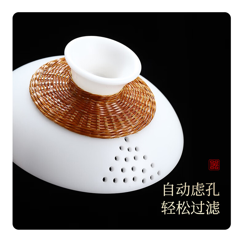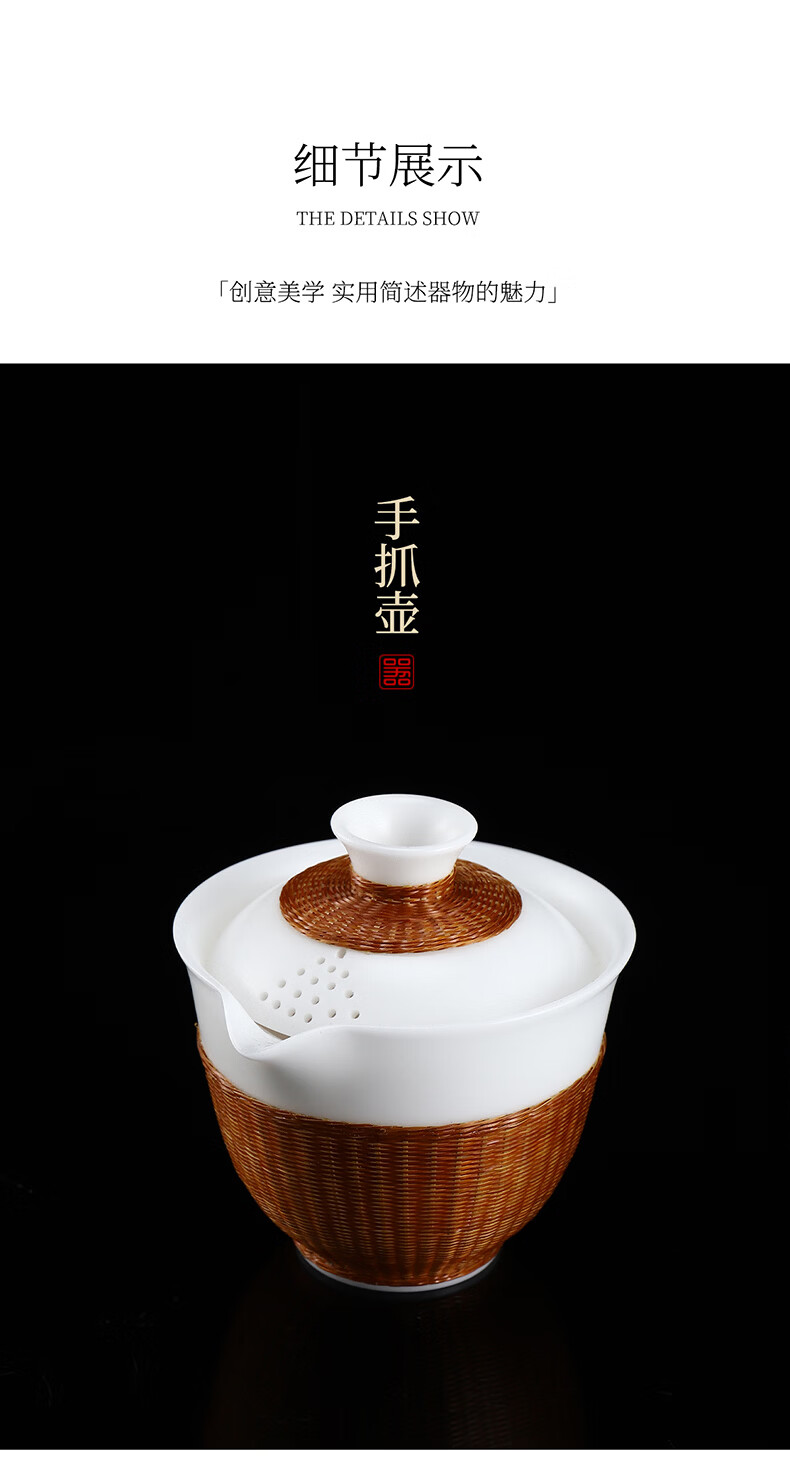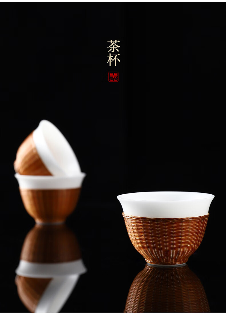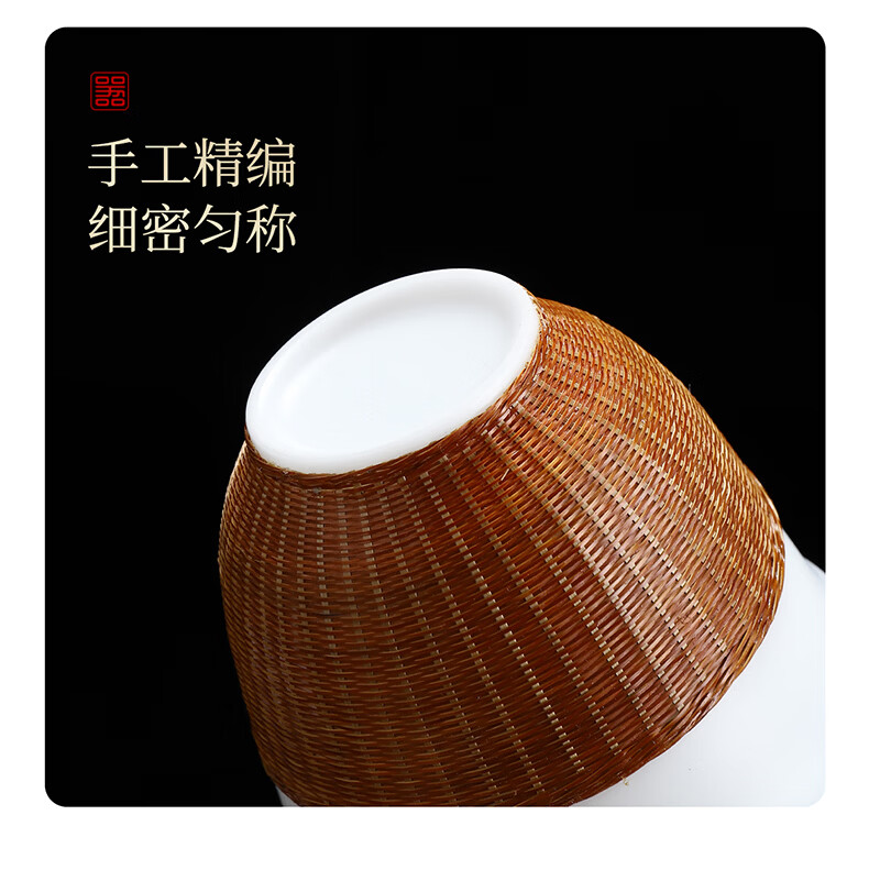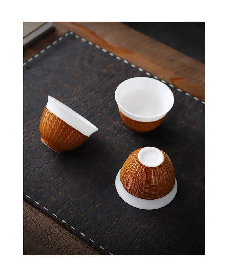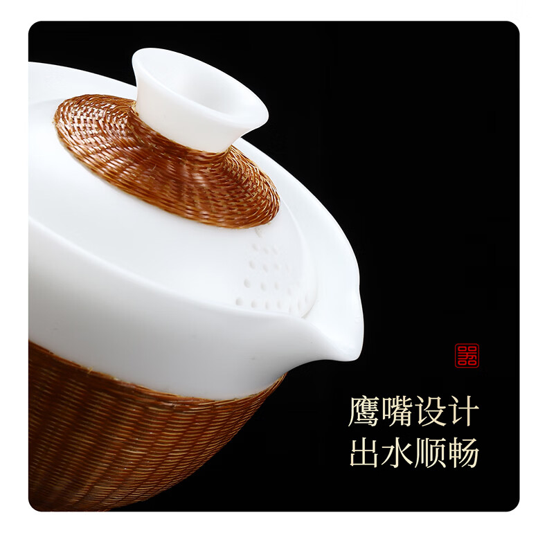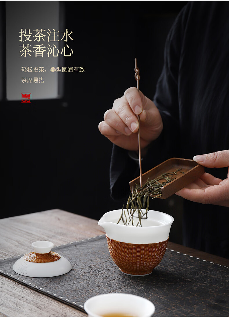 器美优品竹丝扣瓷旅行茶具便携式快客杯瓷胎竹编非遗手工四川特色商务送礼 竹丝扣瓷烤红旅行茶具一碗三杯