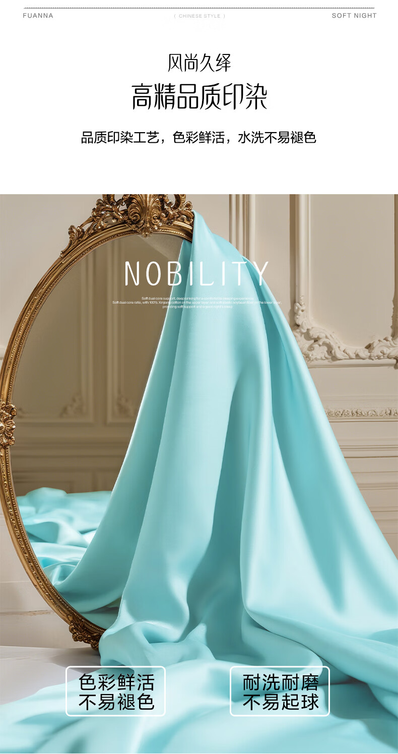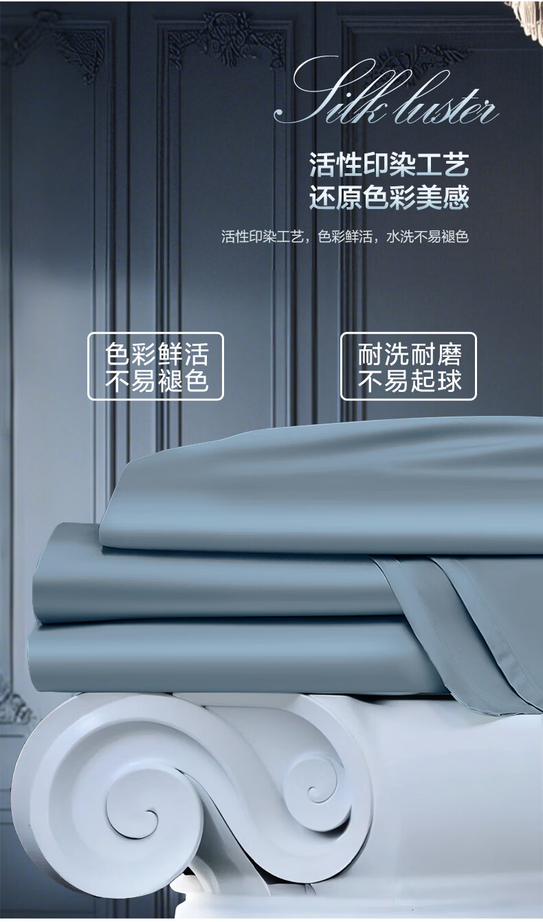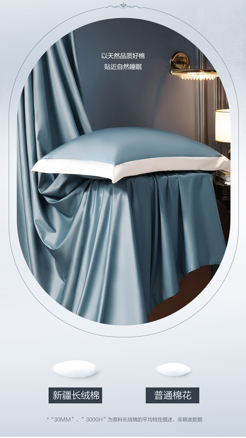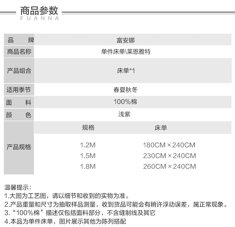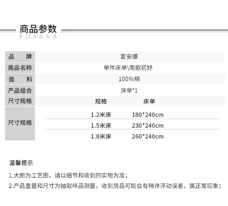富安娜家纺60支长绒棉单件床单亲肤纯棉高支贡缎被单家用全棉床罩单件 【60支国风长绒棉】-初妤蓝 1.2米床适用 (180*240cm)