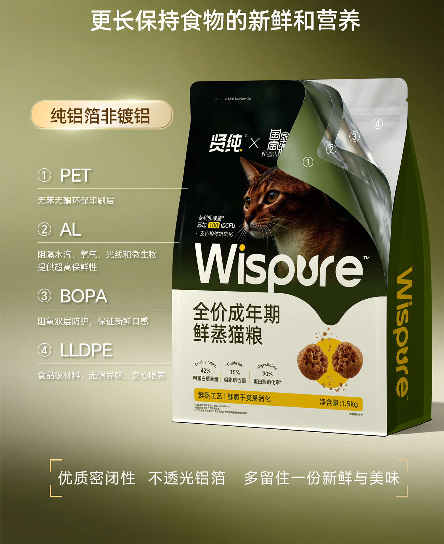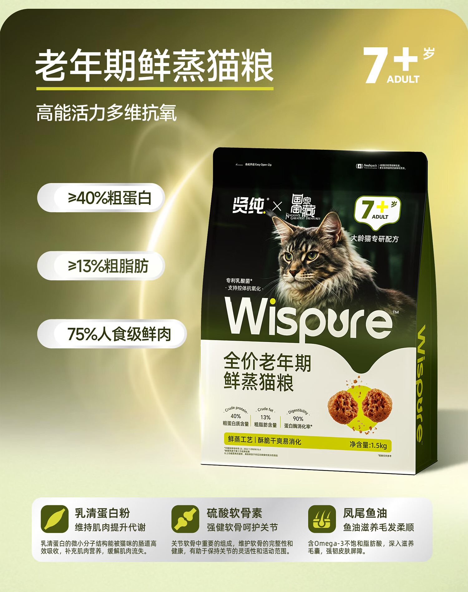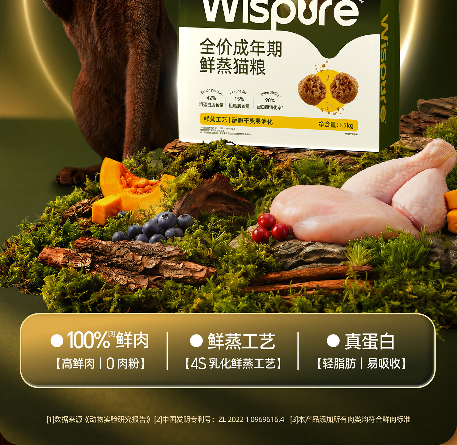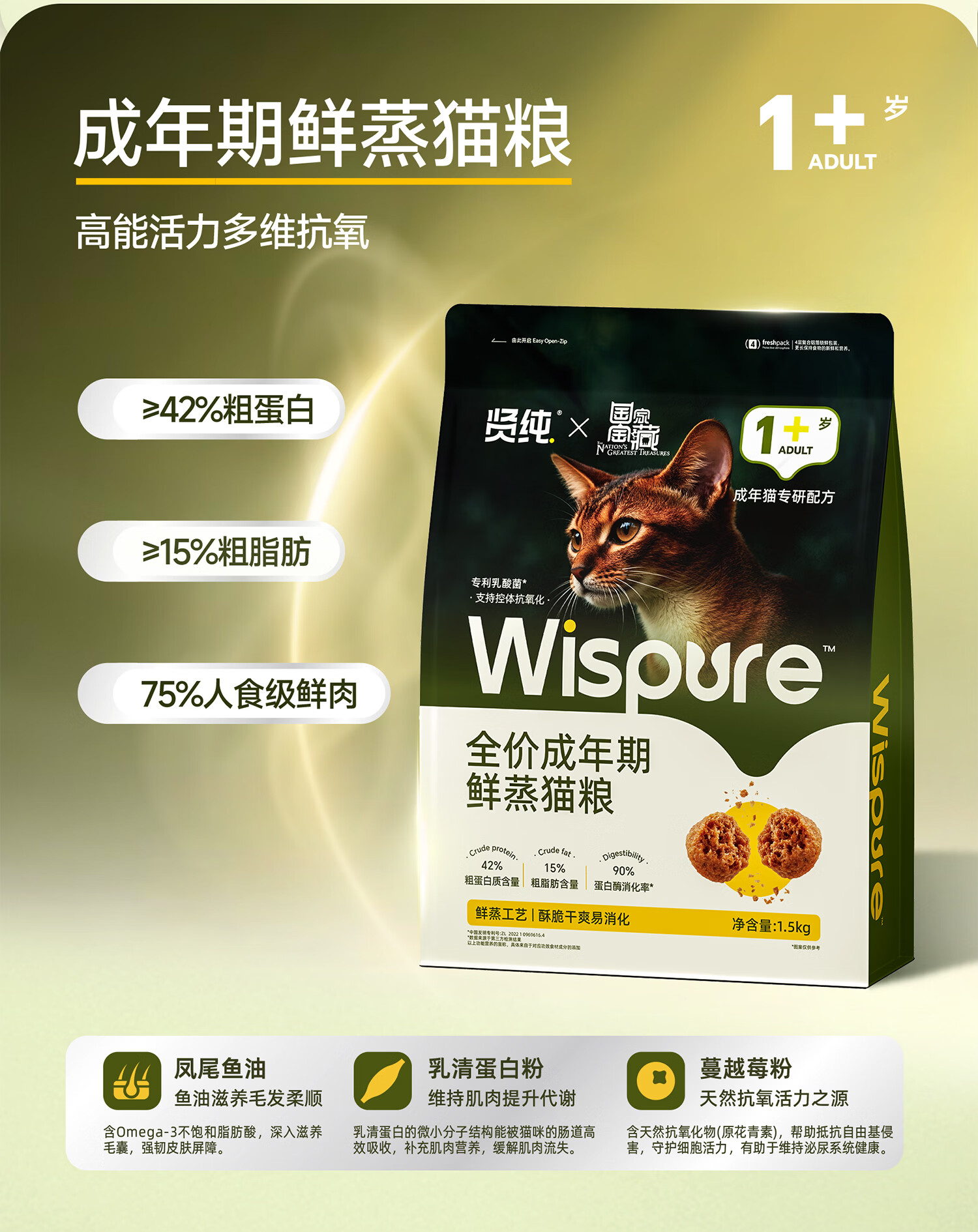 贤纯猫粮 全价鲜蒸成猫粮高鲜肉高消化好护肠胃专利益生菌 【国家宝藏】1岁+鲜蒸全价鸡肉猫粮1.5kg