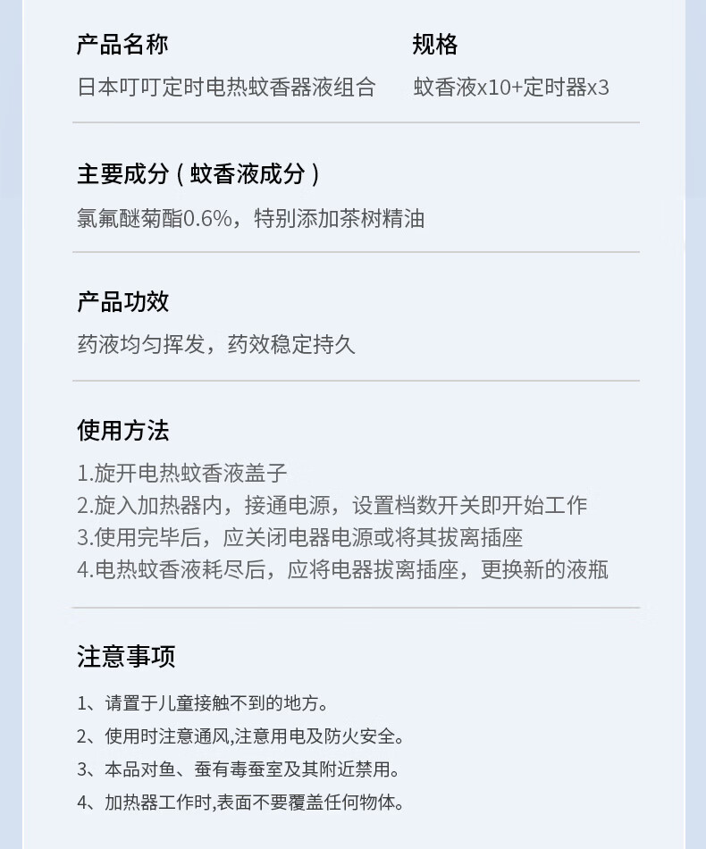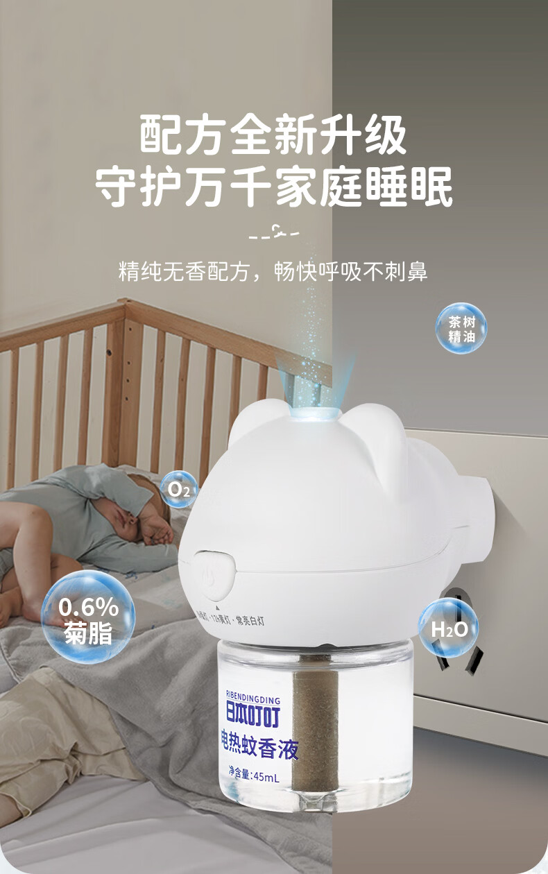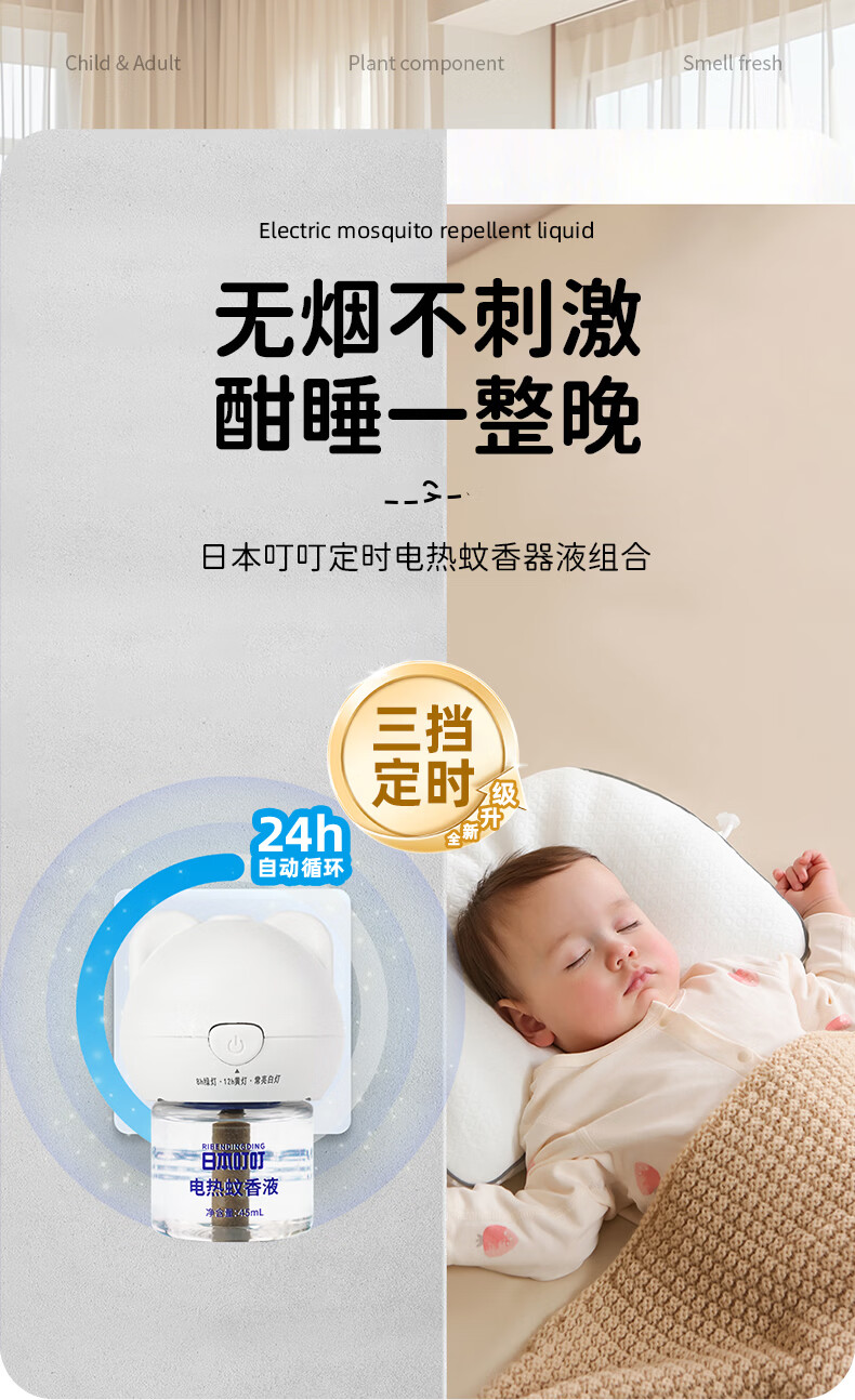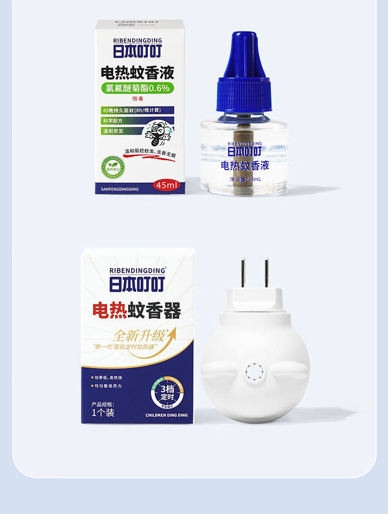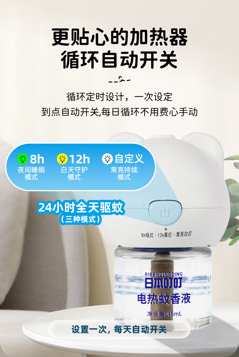 日本叮叮蚊香液电蚊香驱蚊液450晚3器+10液45ml三档定时宝宝儿童防蚊无香
