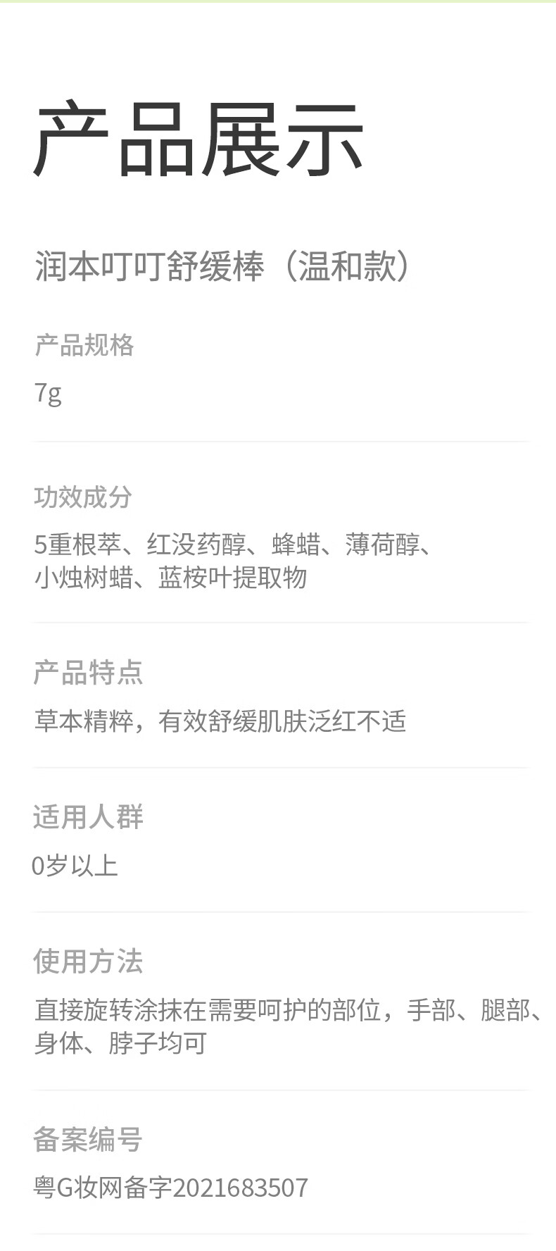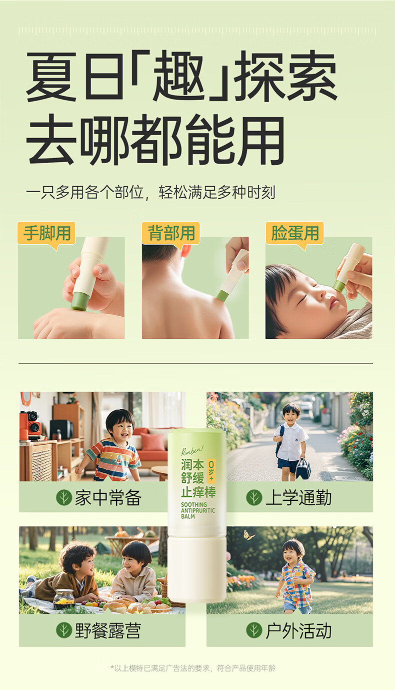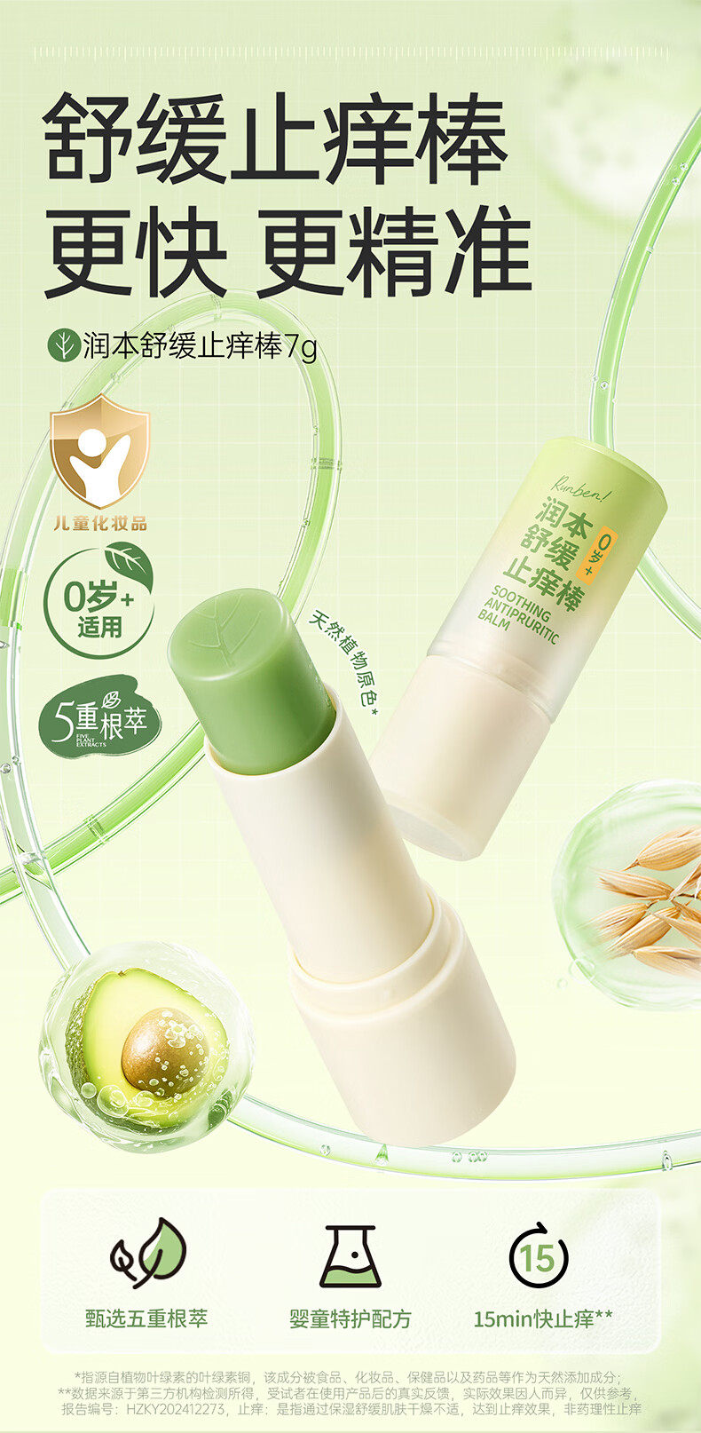 润本紫草膏婴儿童止痒棒舒缓蚊虫叮咬消包清凉膏宝宝专用青草膏棒便携 6.5g 1支 【温和款|儿童可用】