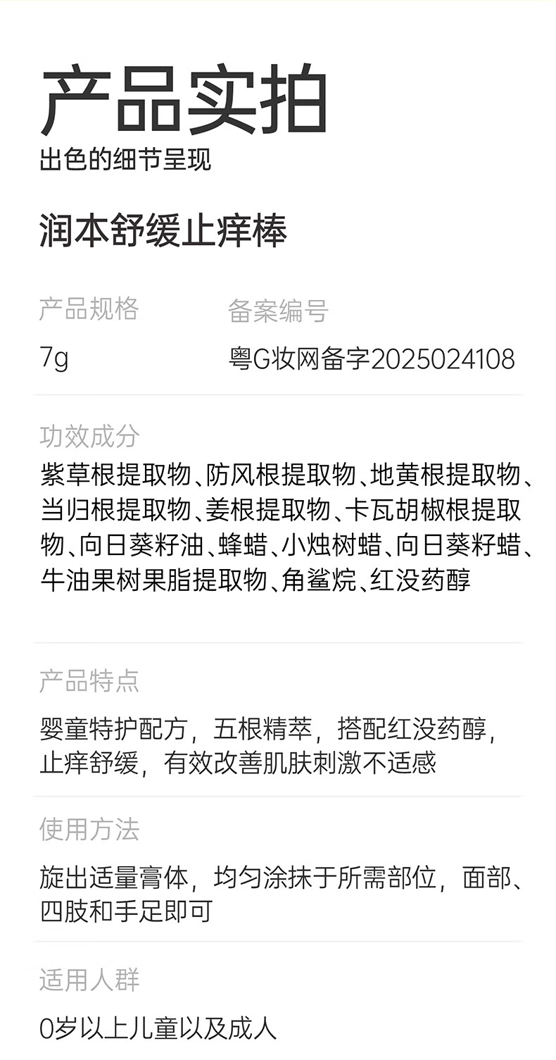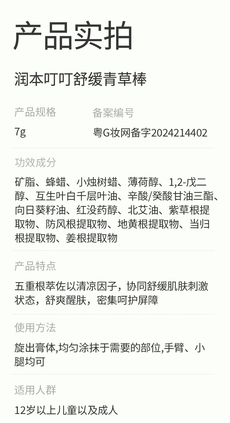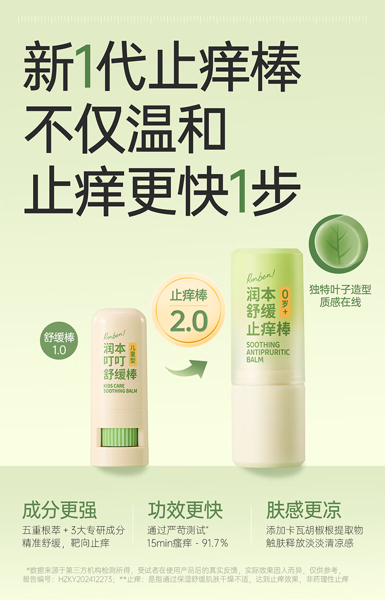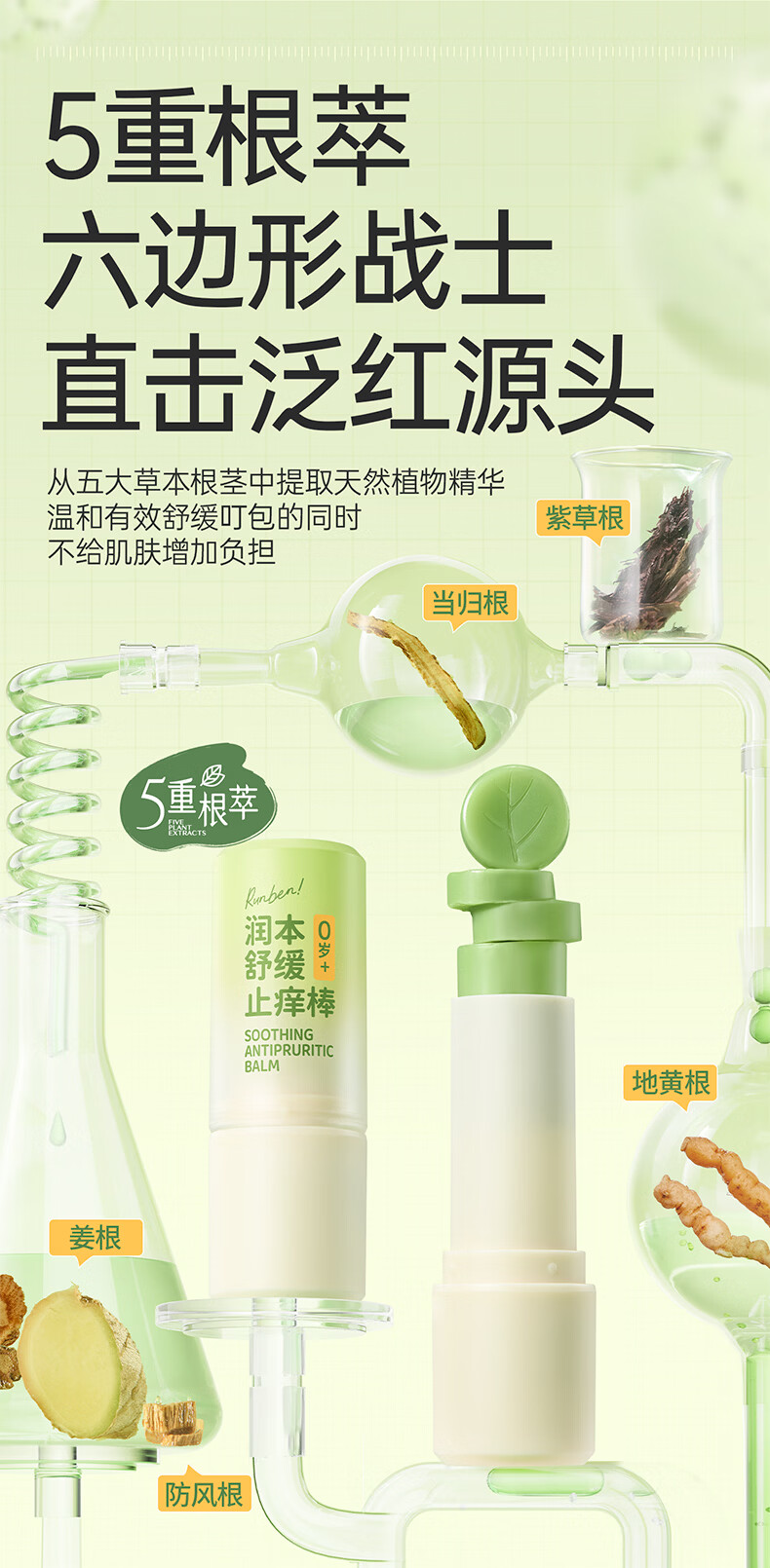 润本紫草膏婴儿童止痒棒舒缓蚊虫叮咬消包清凉膏宝宝专用青草膏棒便携 6.5g 1支 【温和款|儿童可用】