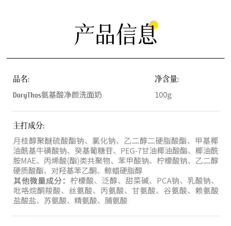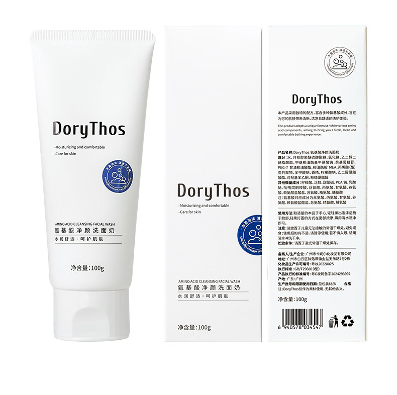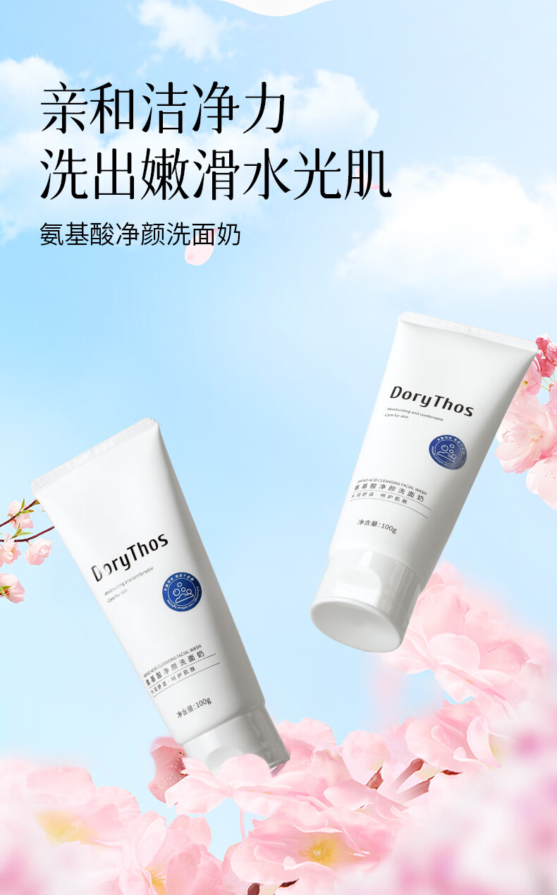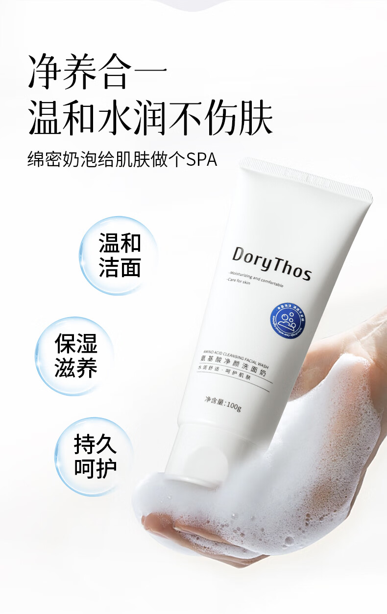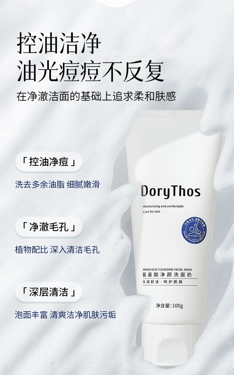 比诗(DoryThos)未来氨基酸净颜洗面奶100g 洁面控油不假滑舒缓肌肤洁面乳两支装