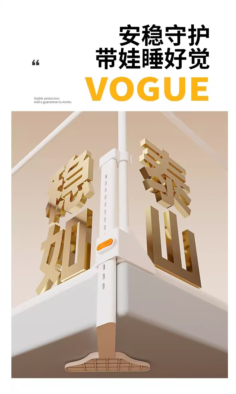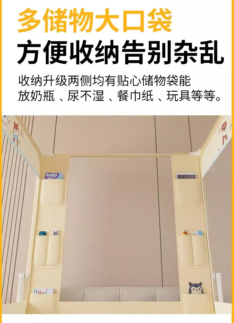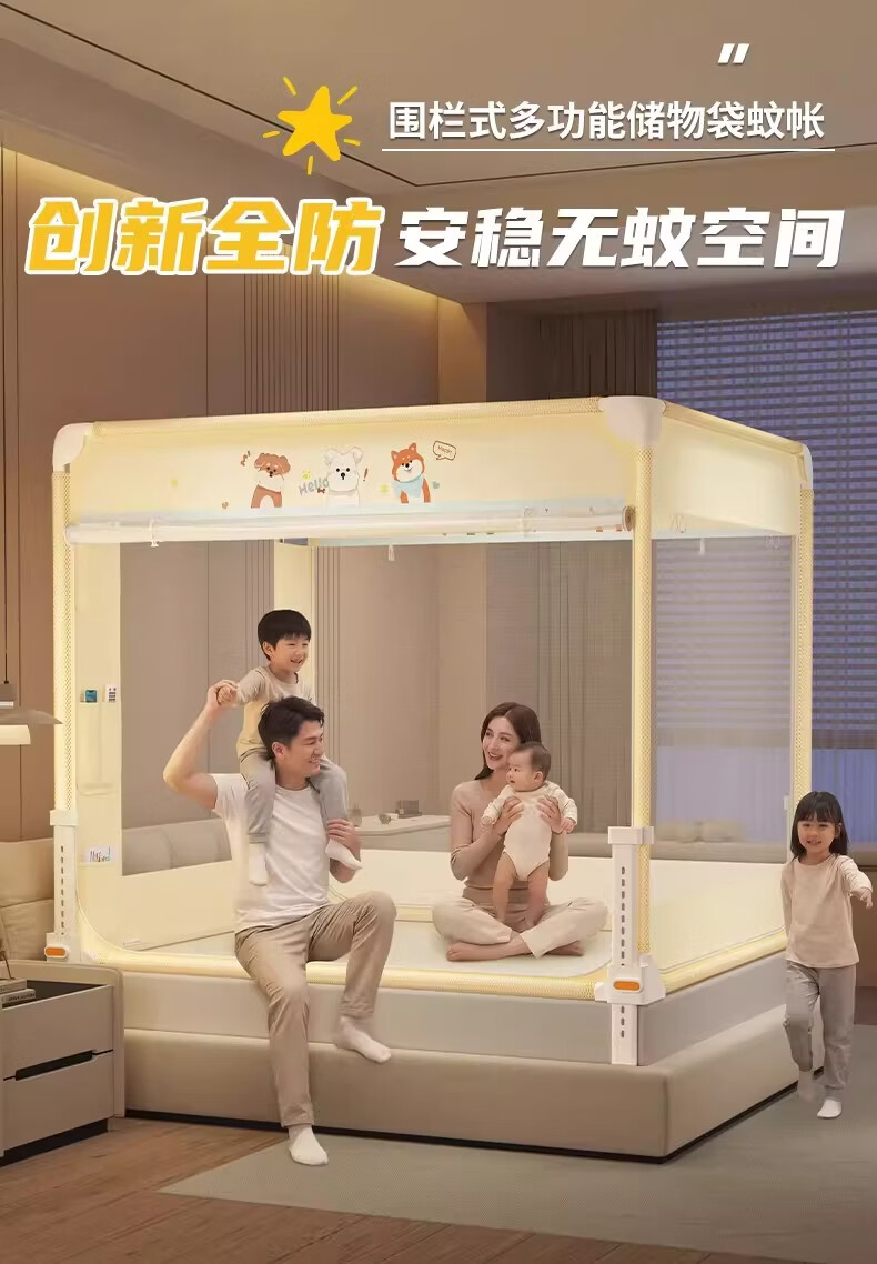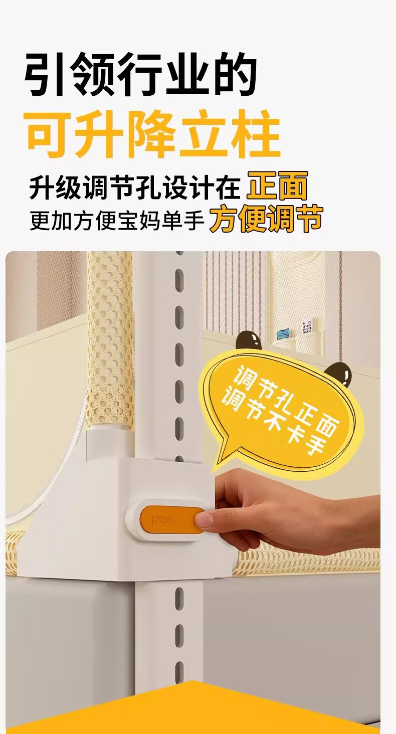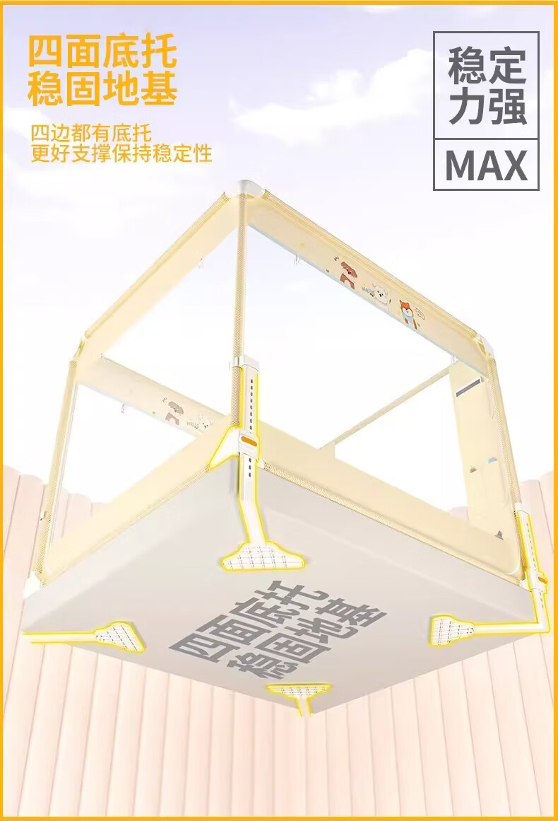 无印良品宝宝防摔蚊帐1.5米x2米家用一体式卧室床上帐篷婴儿童防掉床围栏 熊猫盼盼-可升降支架 150cm*200cm*170cm 【围栏支架】