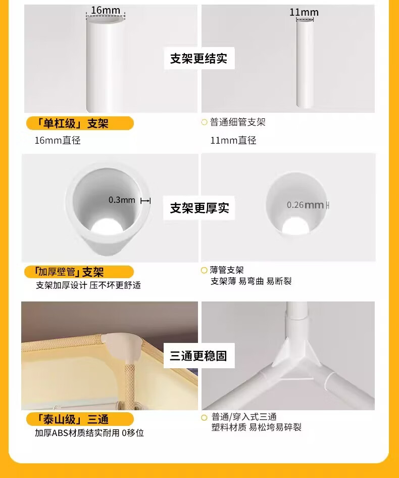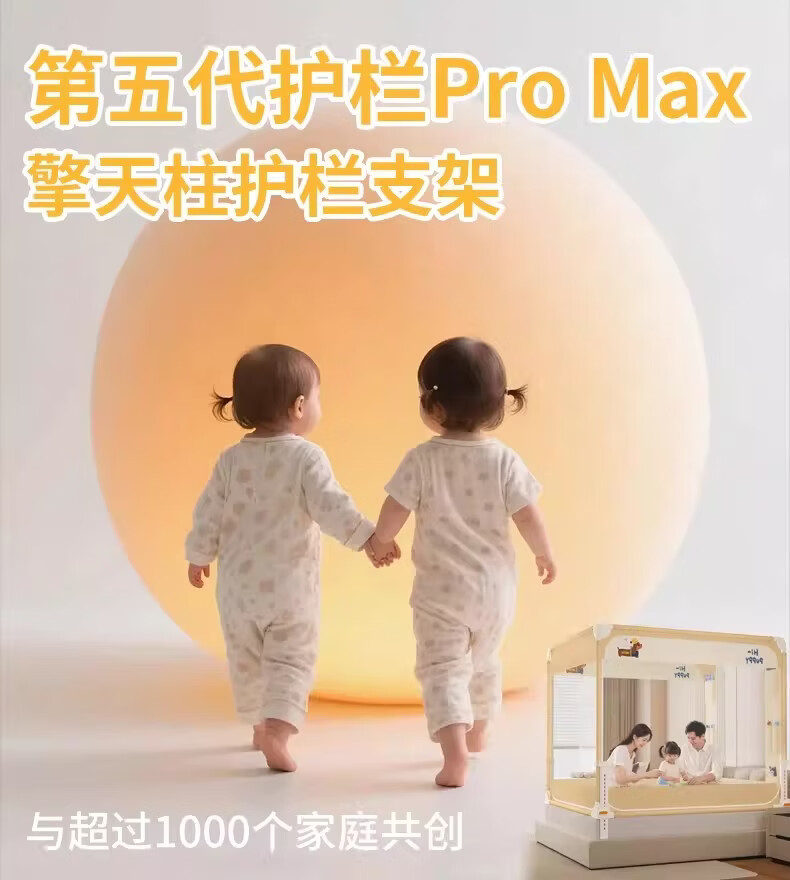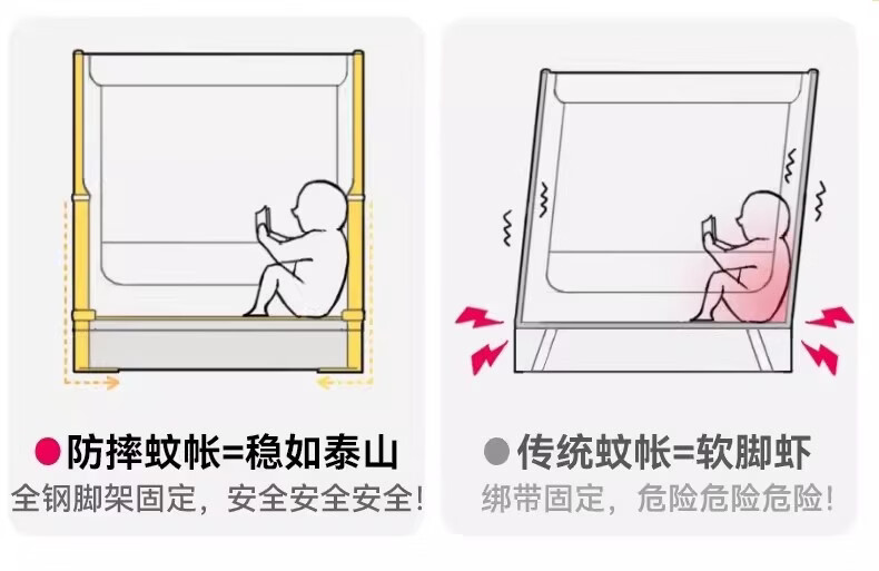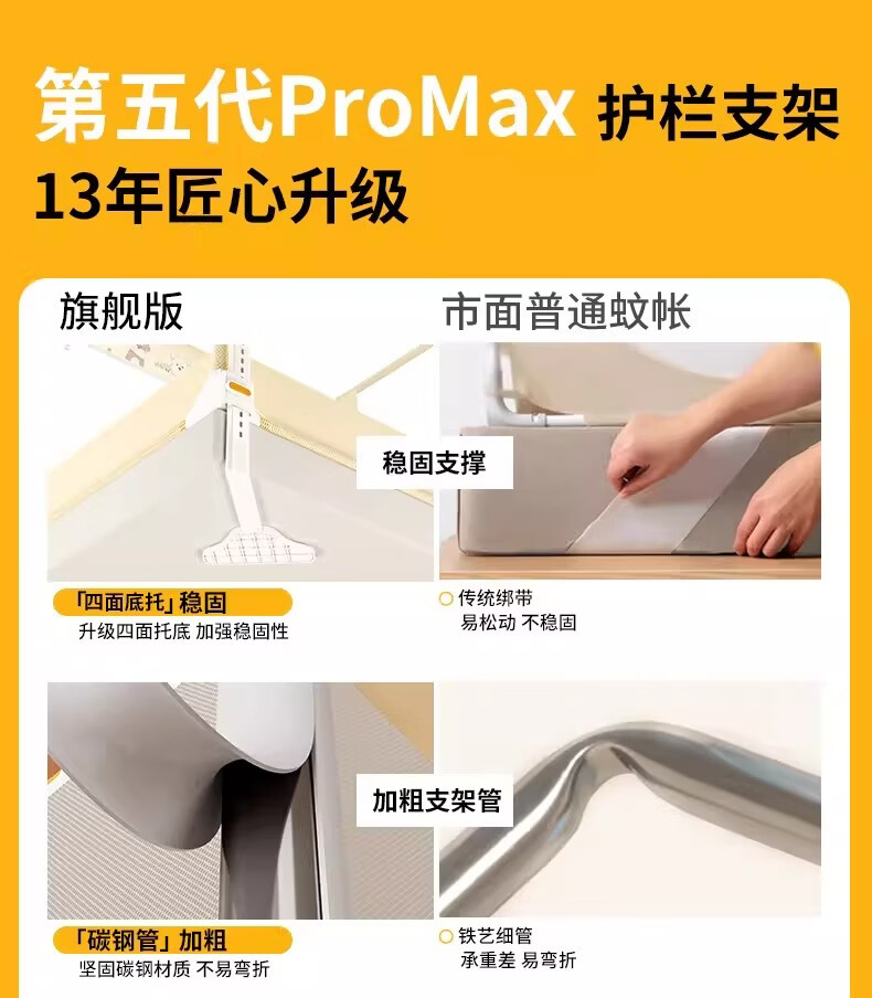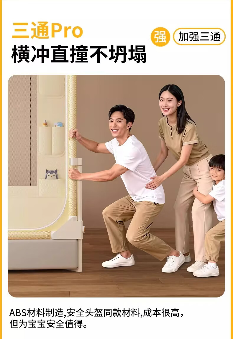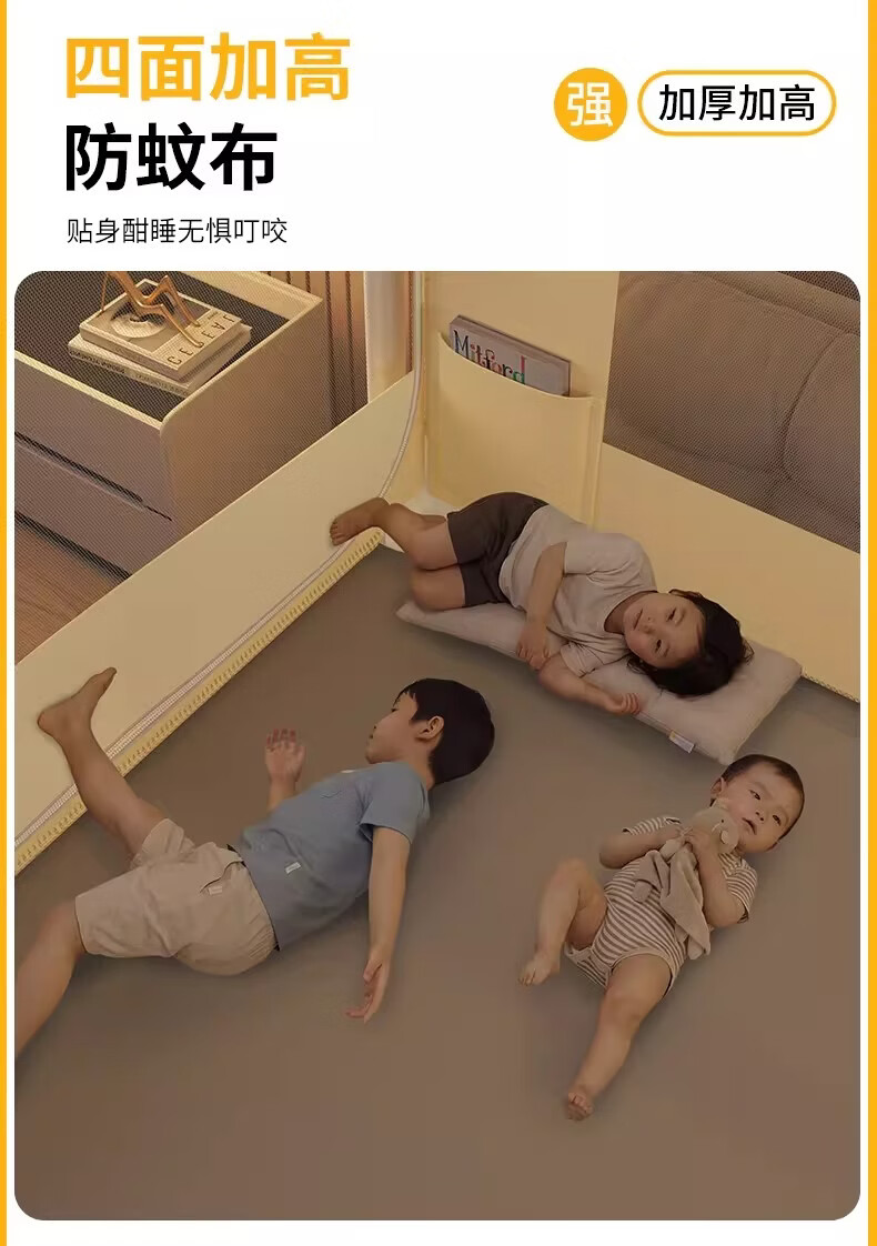无印良品宝宝防摔蚊帐1.5米x2米家用一体式卧室床上帐篷婴儿童防掉床围栏 熊猫盼盼-可升降支架 150cm*200cm*170cm 【围栏支架】