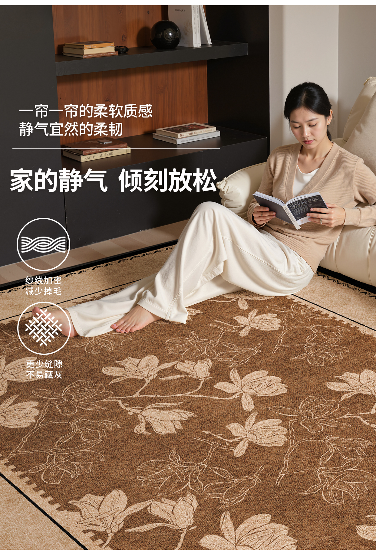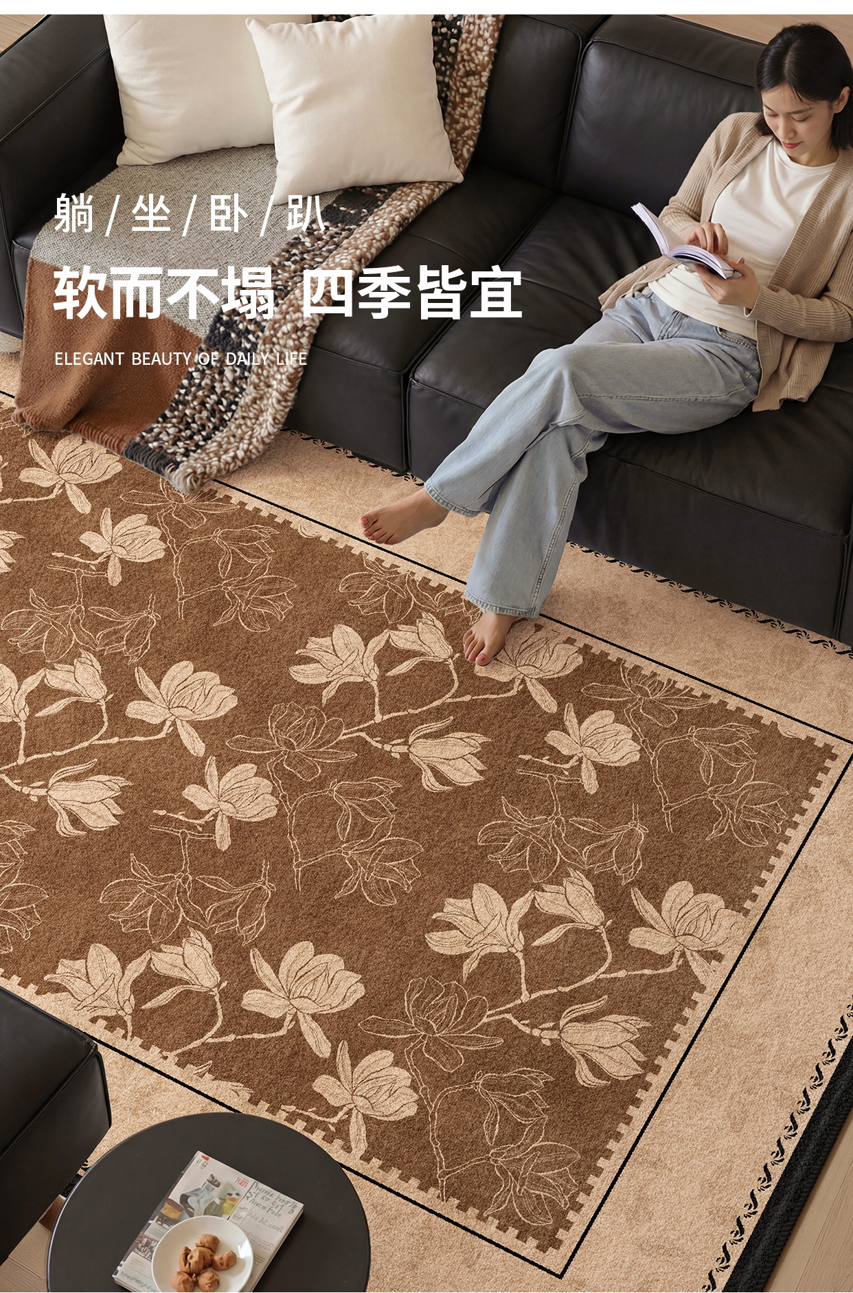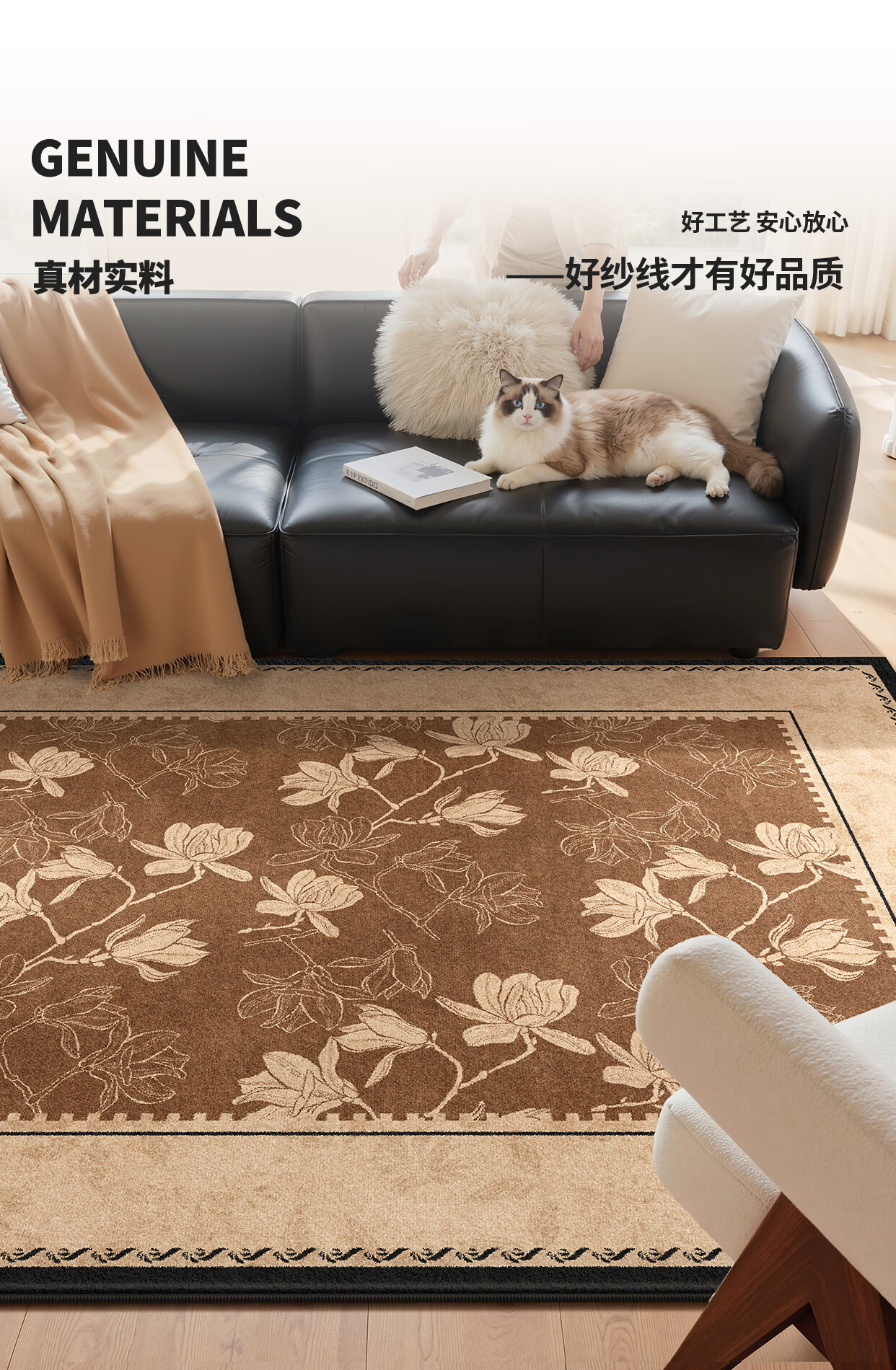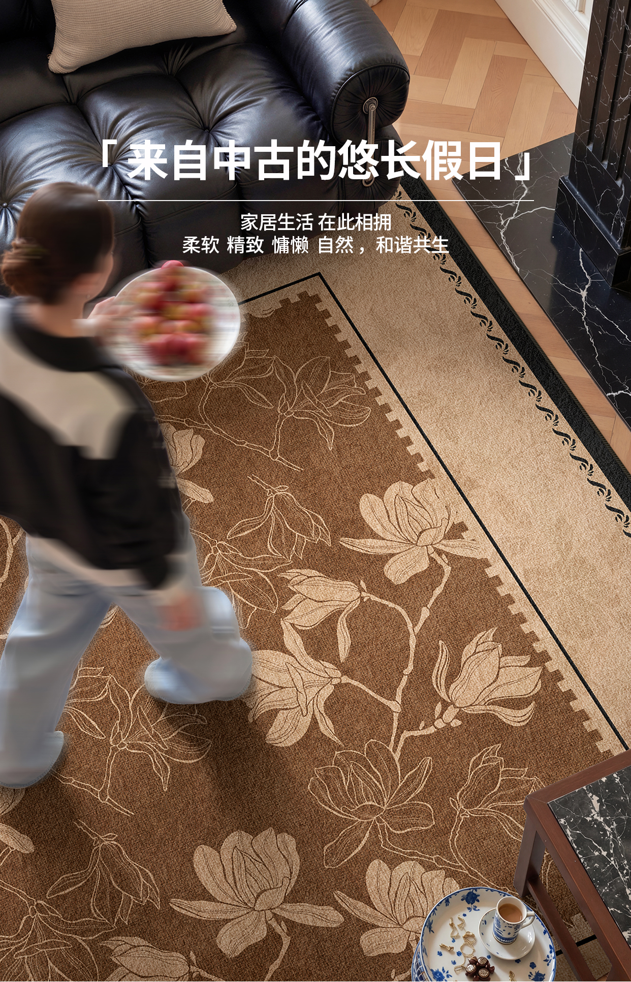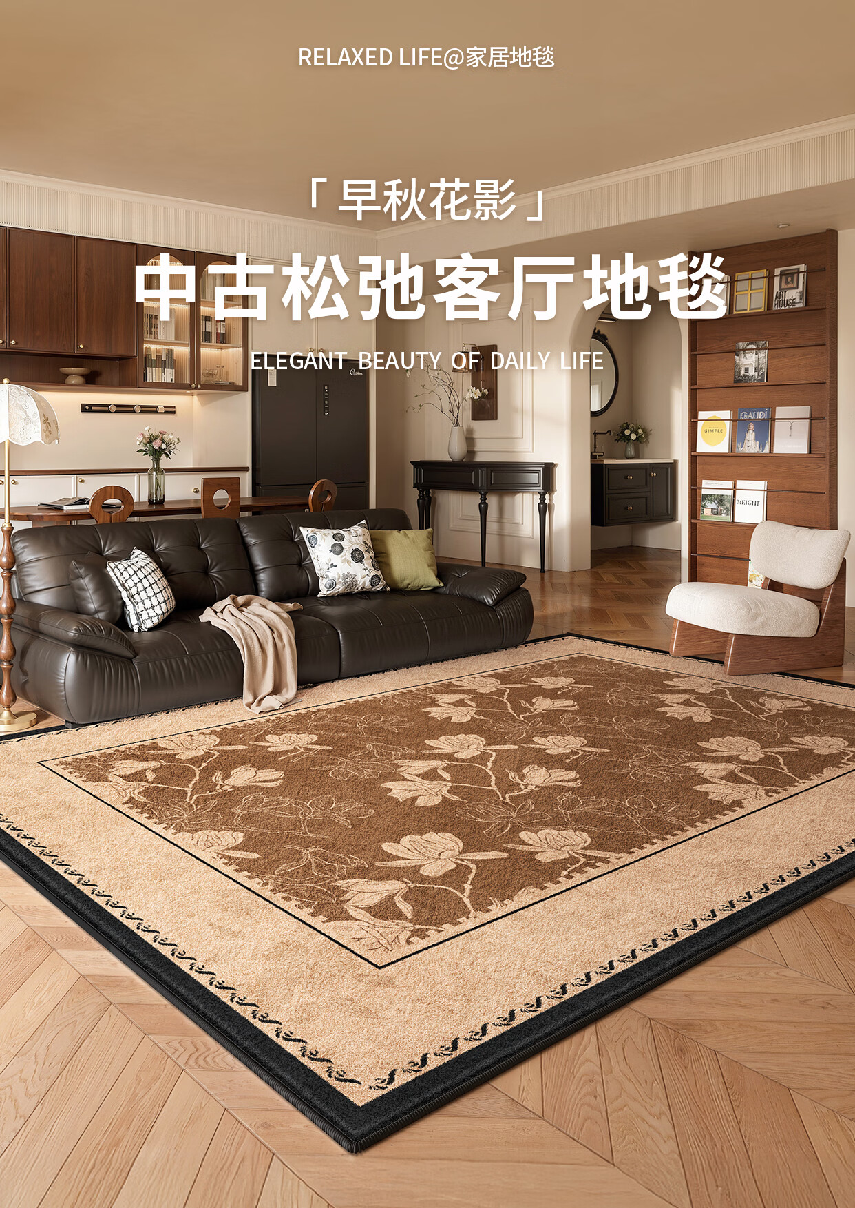 著忆地毯客厅中古风2026新款法式复古免洗可擦免打理防水卧室沙发地垫 S波斯绒-早秋花影 定制尺寸【联系客服】