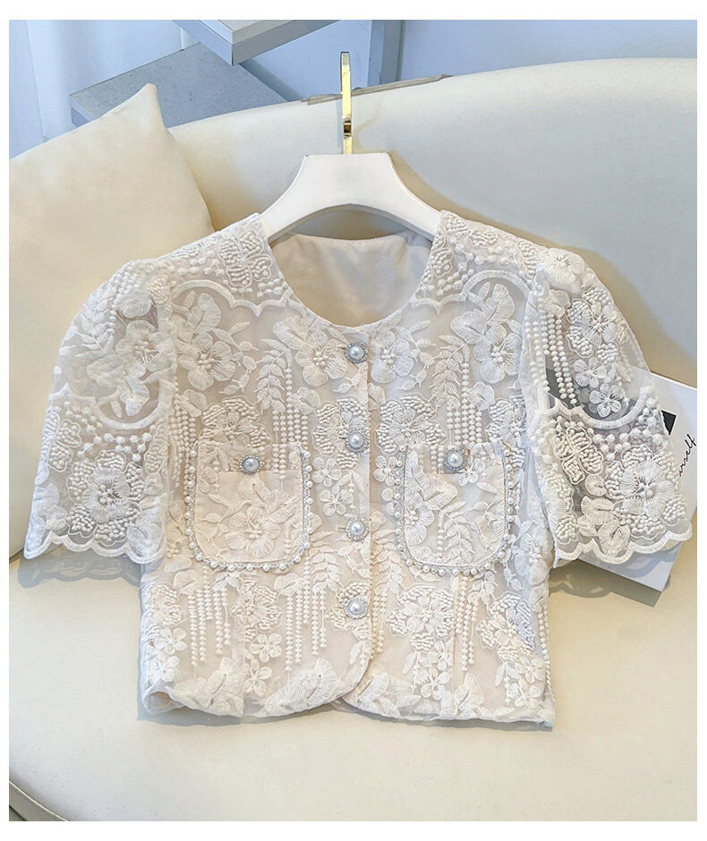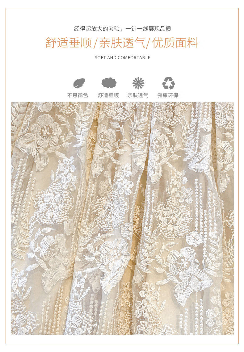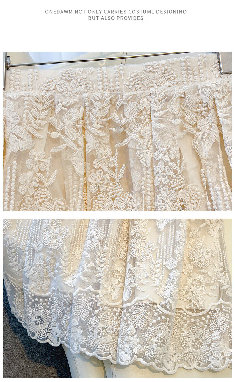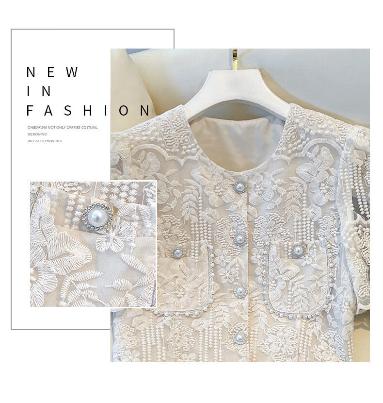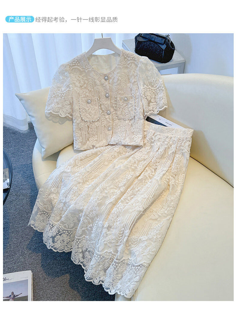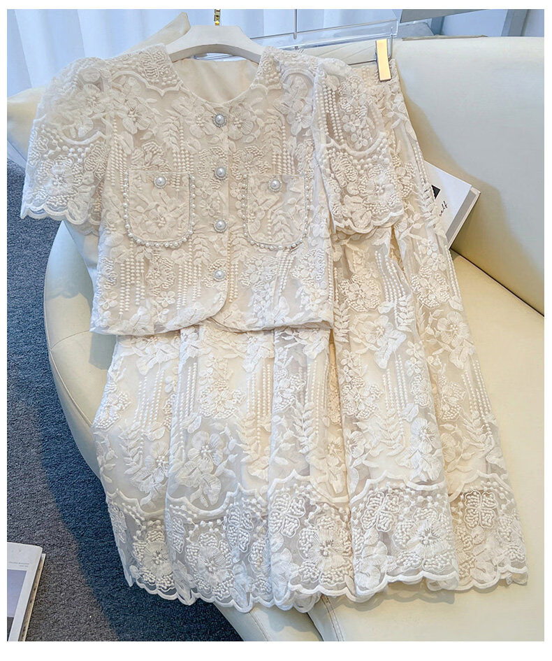 MODX国风高端小香风洋装2026新款女夏法式蕾丝钩花小礼服显瘦两件套 杏色两件套 S