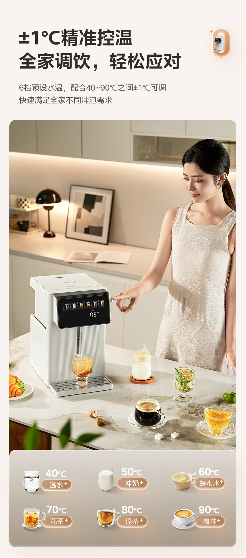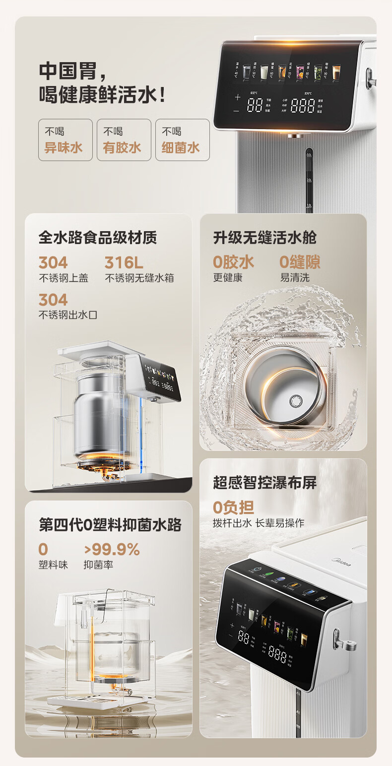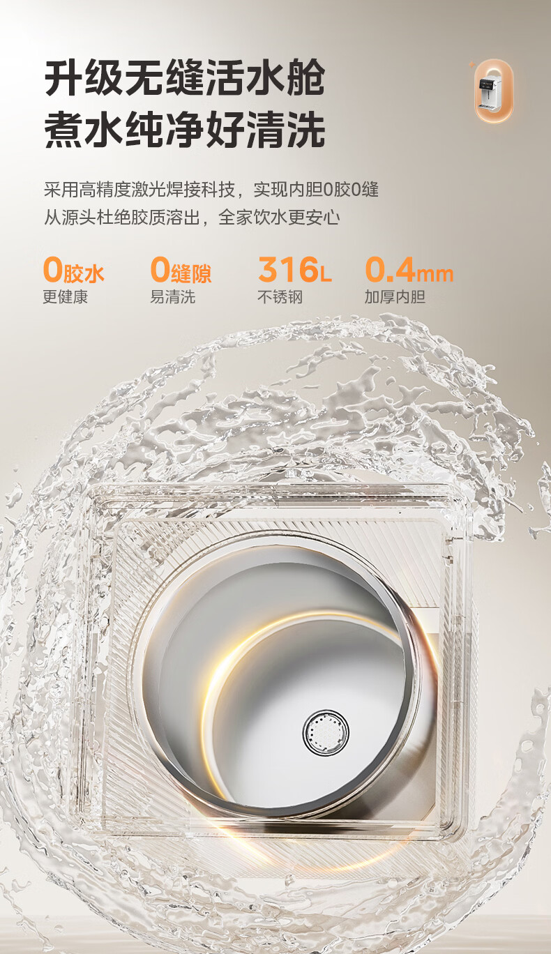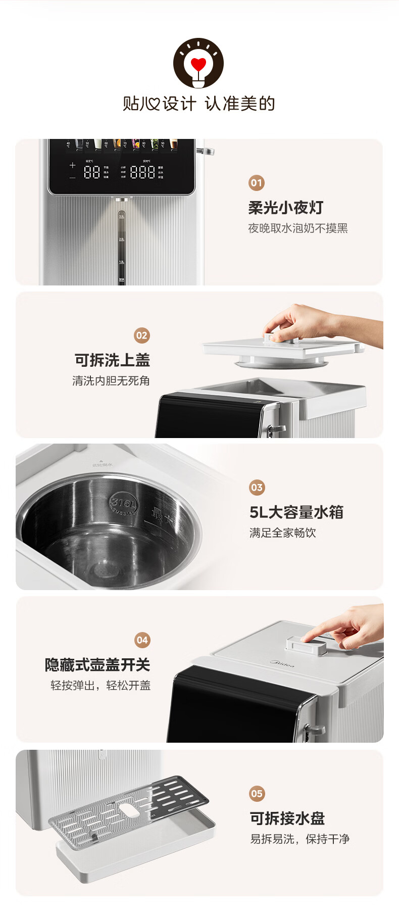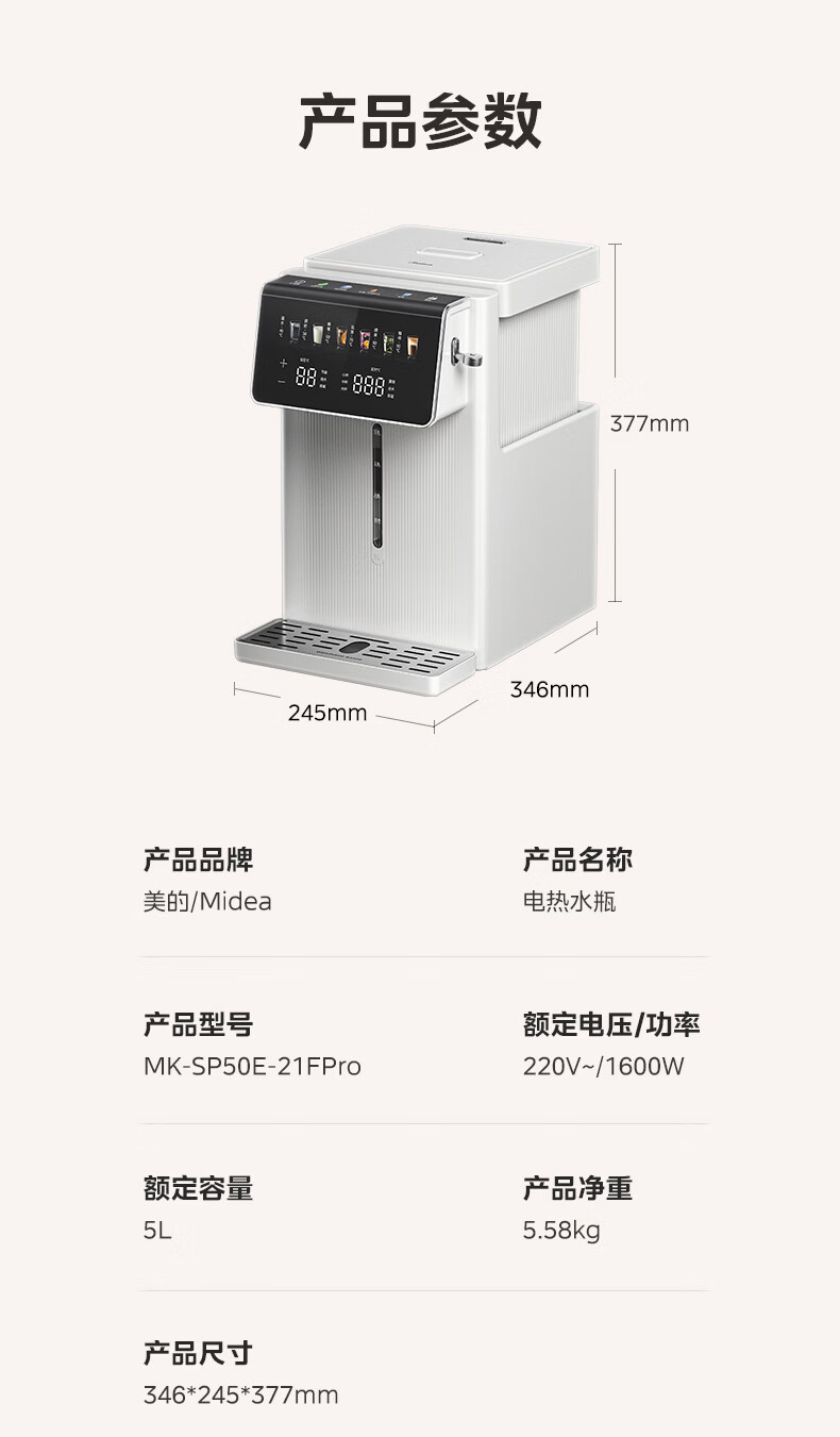 美的(Midea)小魔方电热水瓶烧水壶饮水机316L不锈钢无缝一体内胆5L大容量全自动保温恒温母婴抑菌可拆21FPro