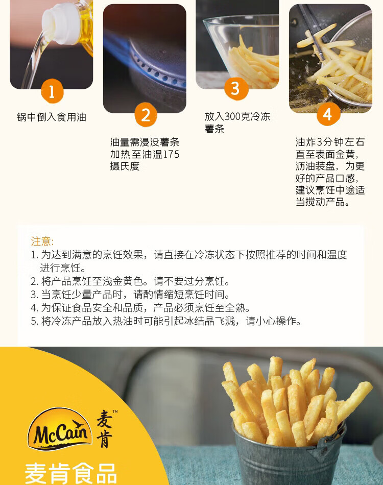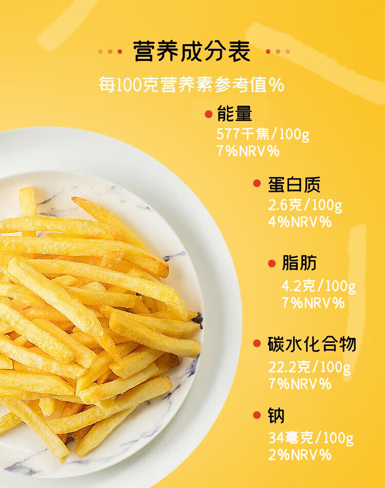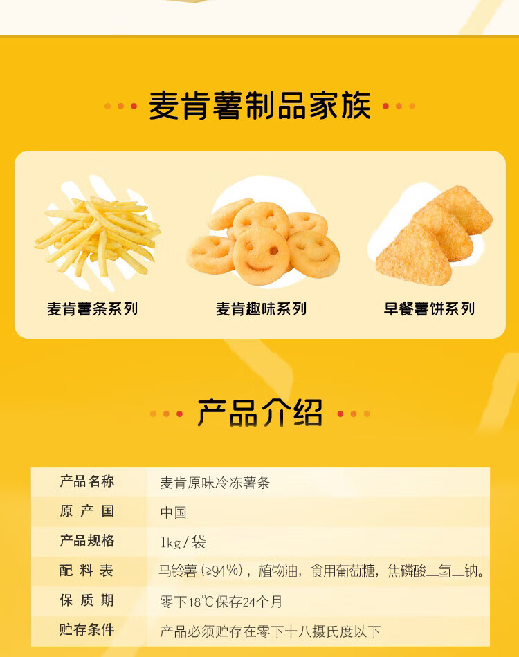 麦肯万怡珍原味冷冻细薯条1kg 空气炸锅食材半成品食品炸货下酒菜