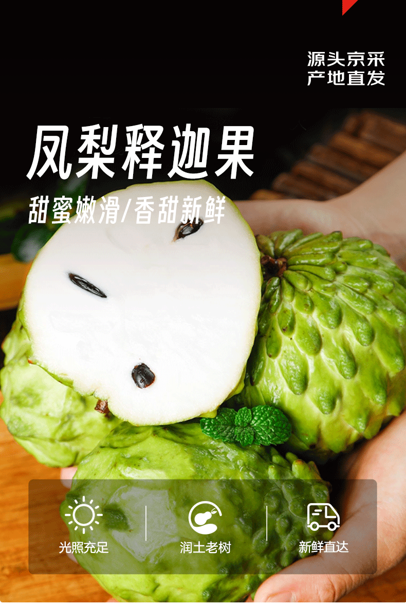 京鲜生 广西牛奶释迦果净重2.5斤 单果300g起4粒装佛头果源头直发包邮
