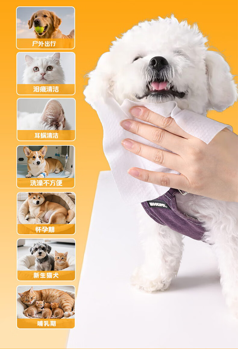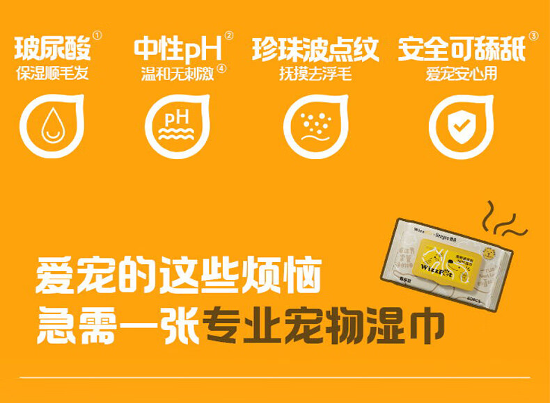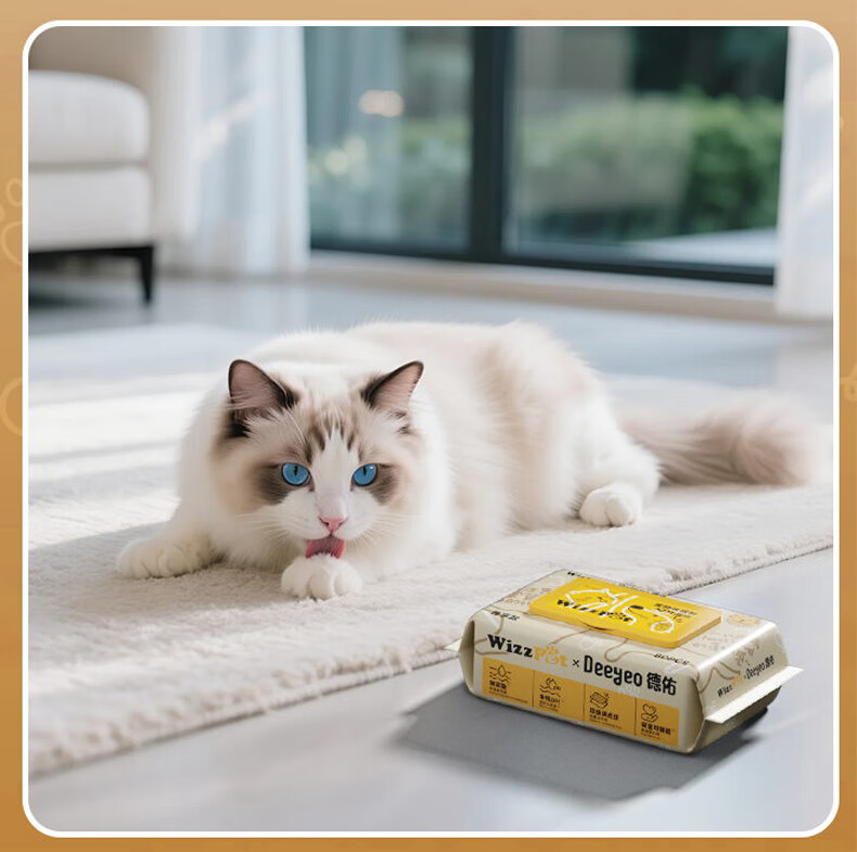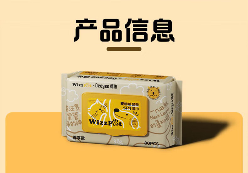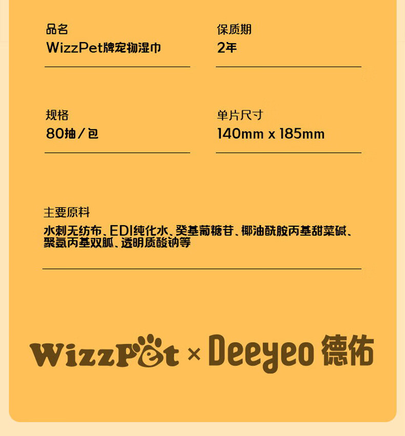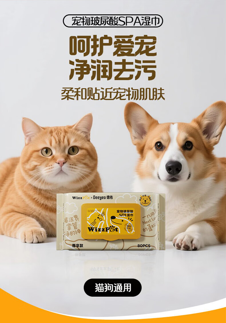 德佑宠物湿巾80抽*3包 免洗除臭湿纸巾EDI纯水猫狗通用无毒可舔舐