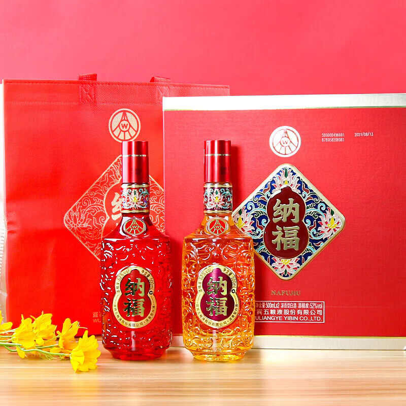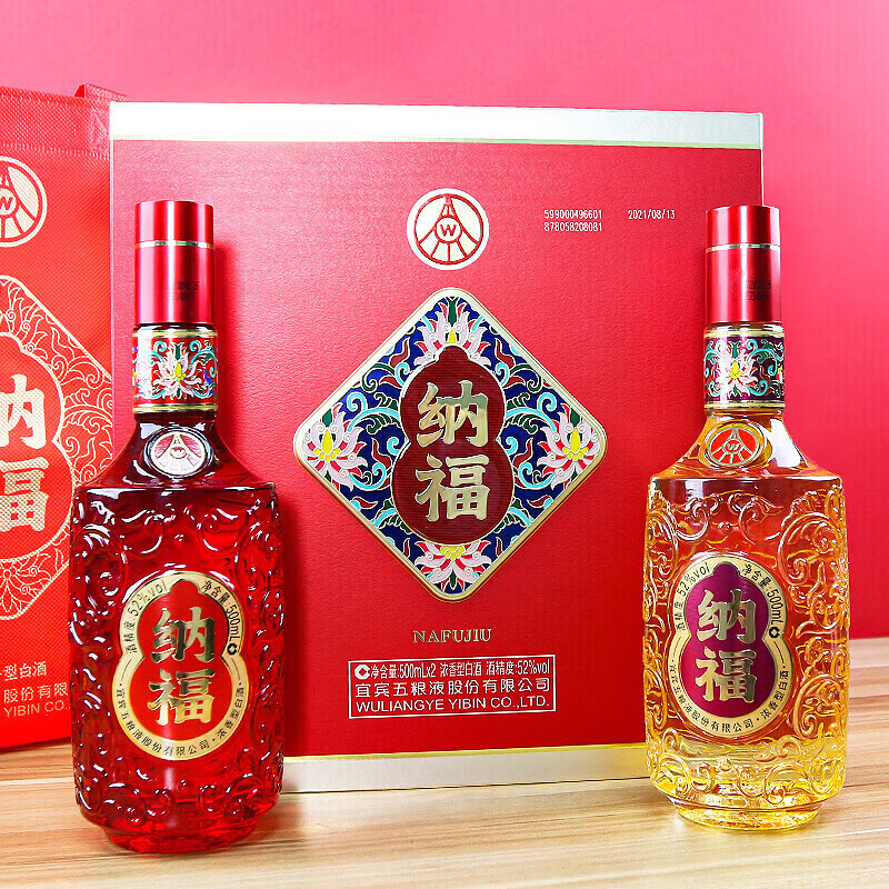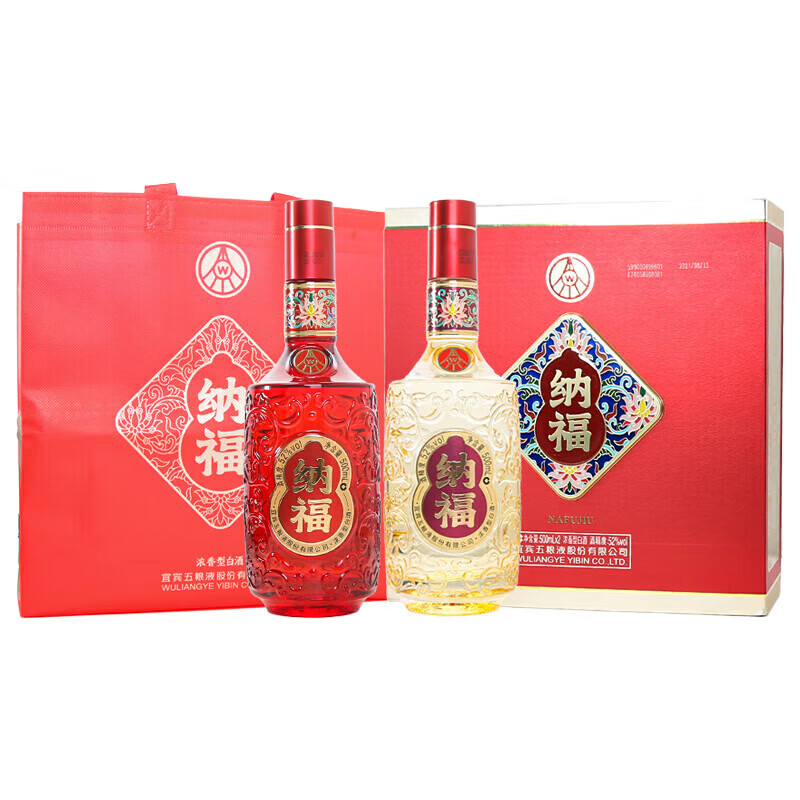 五粮浓香五粮液股份出品 纳福福运畅享礼盒装 52度浓香型白酒 500ml*2瓶 52度 500mL 2瓶