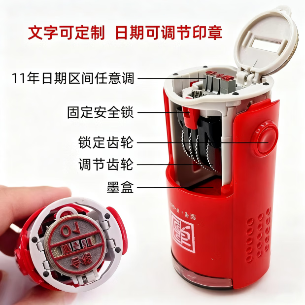 印章定制刻章回墨日期可调印章定制年月日翻转印日期签名数字名字姓名个人公司定制印章光敏刻章 纯铜光敏章圆形40mm/42mm