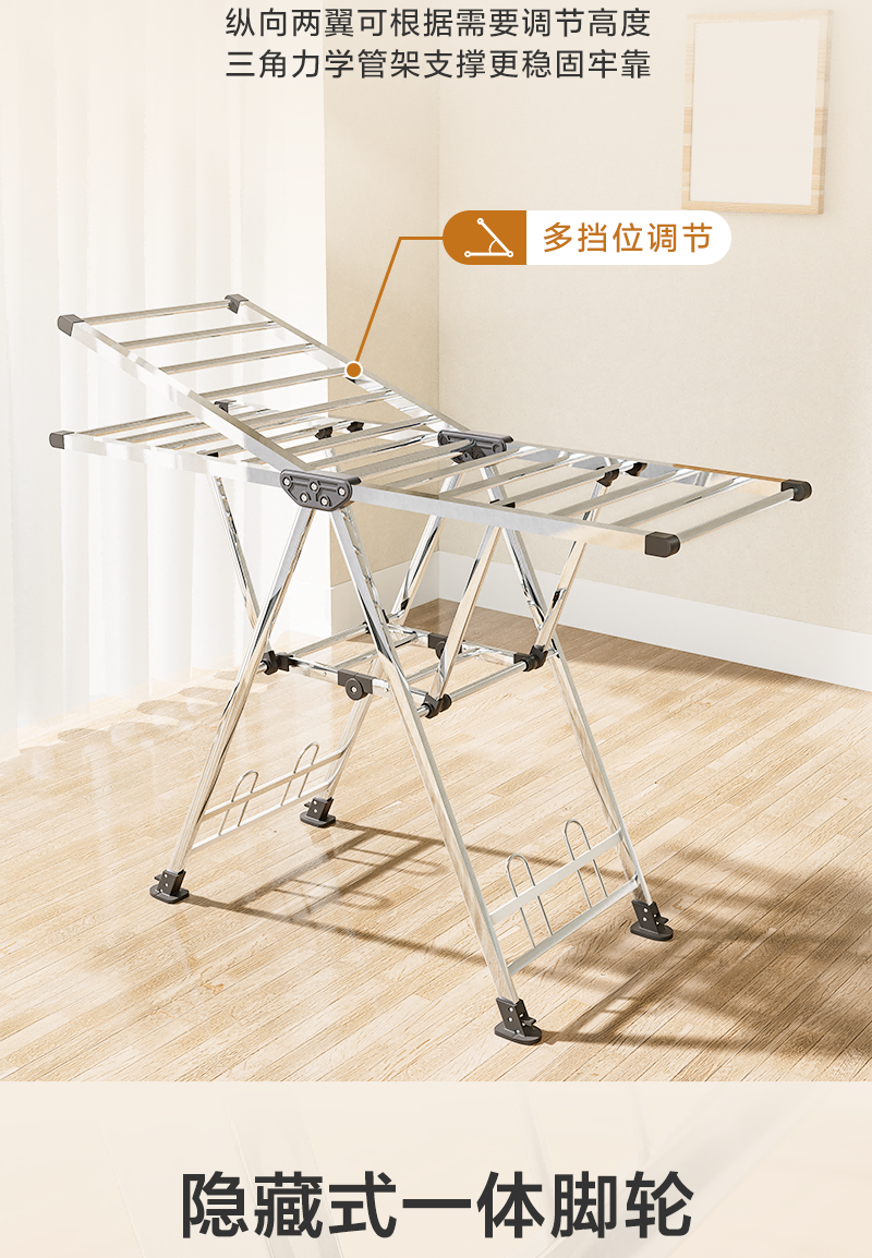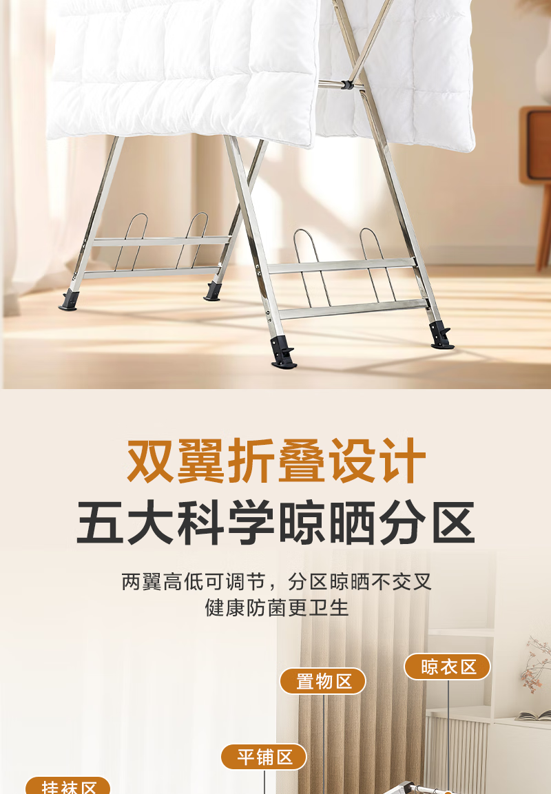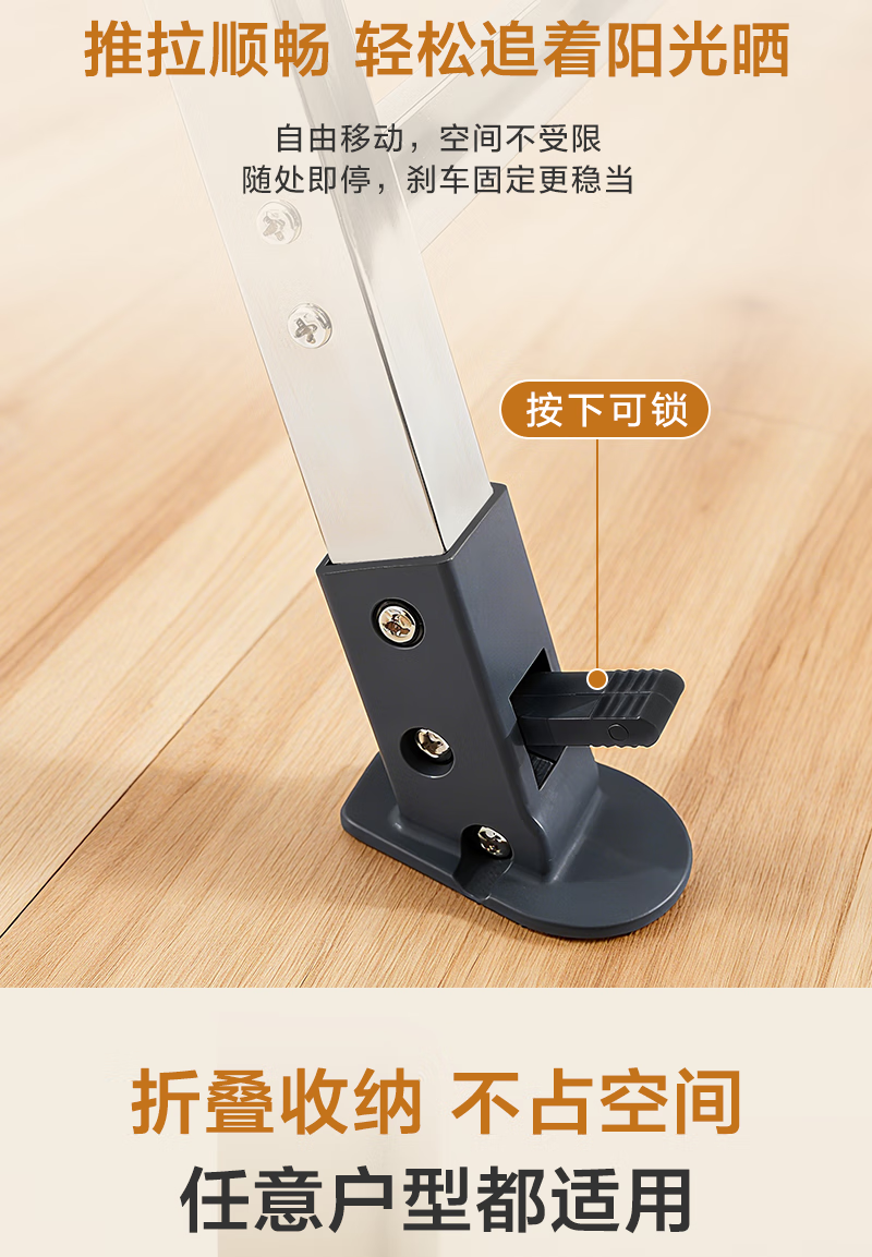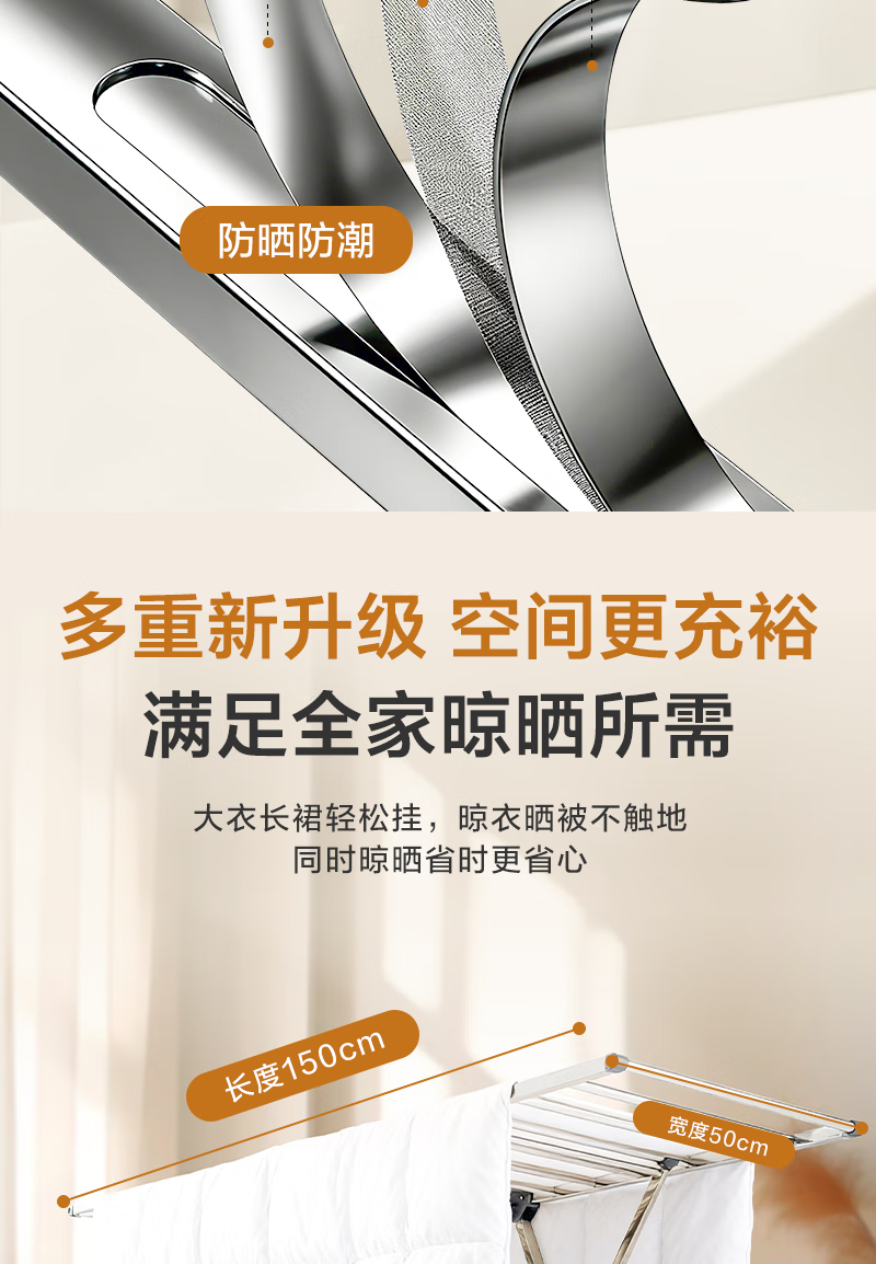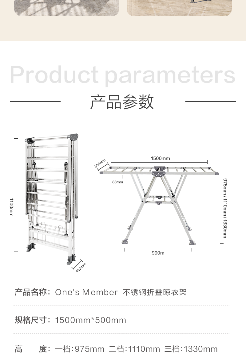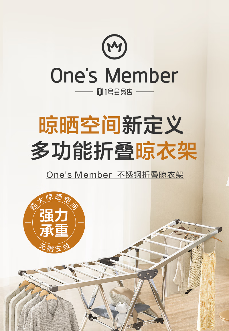 1号会员店(One's Member)落地晾衣架折叠挂衣架阳台挂衣服晾被1.5米加厚不锈钢