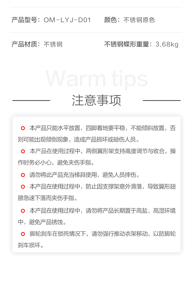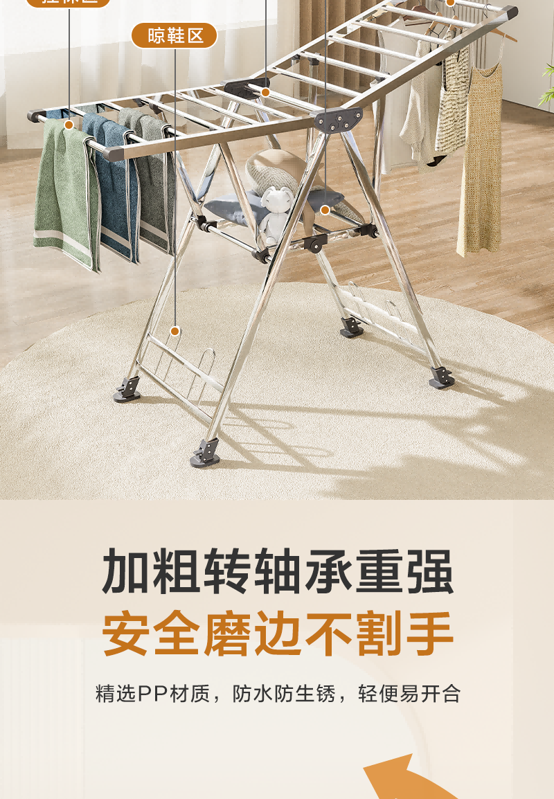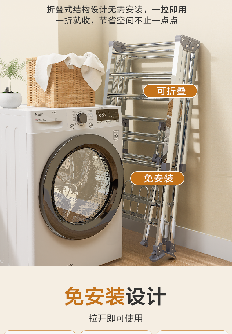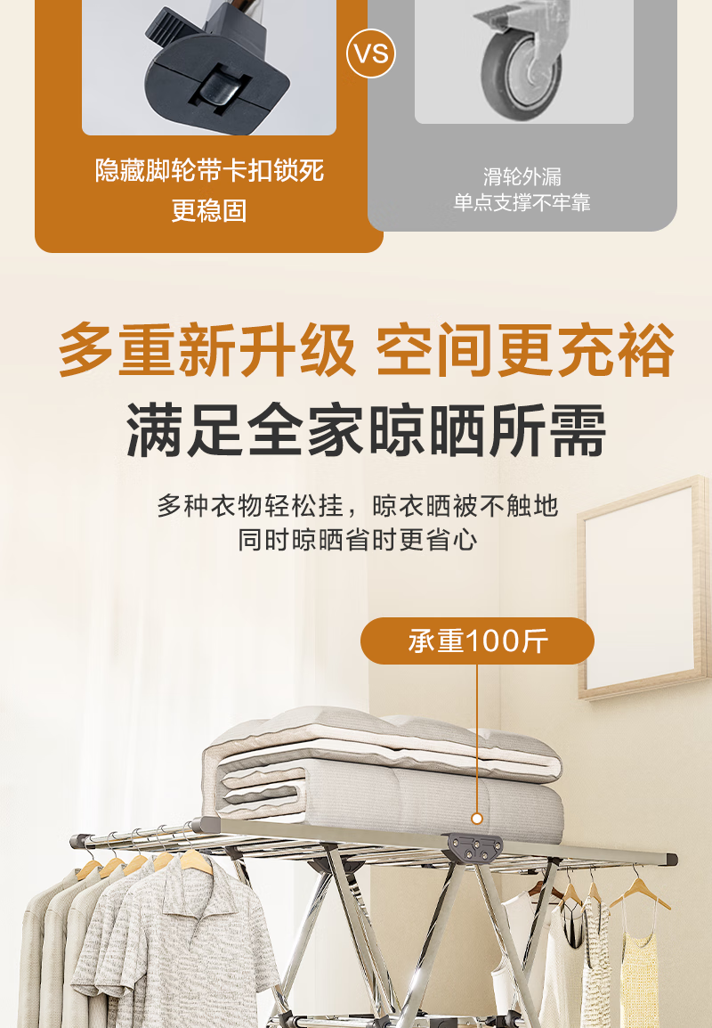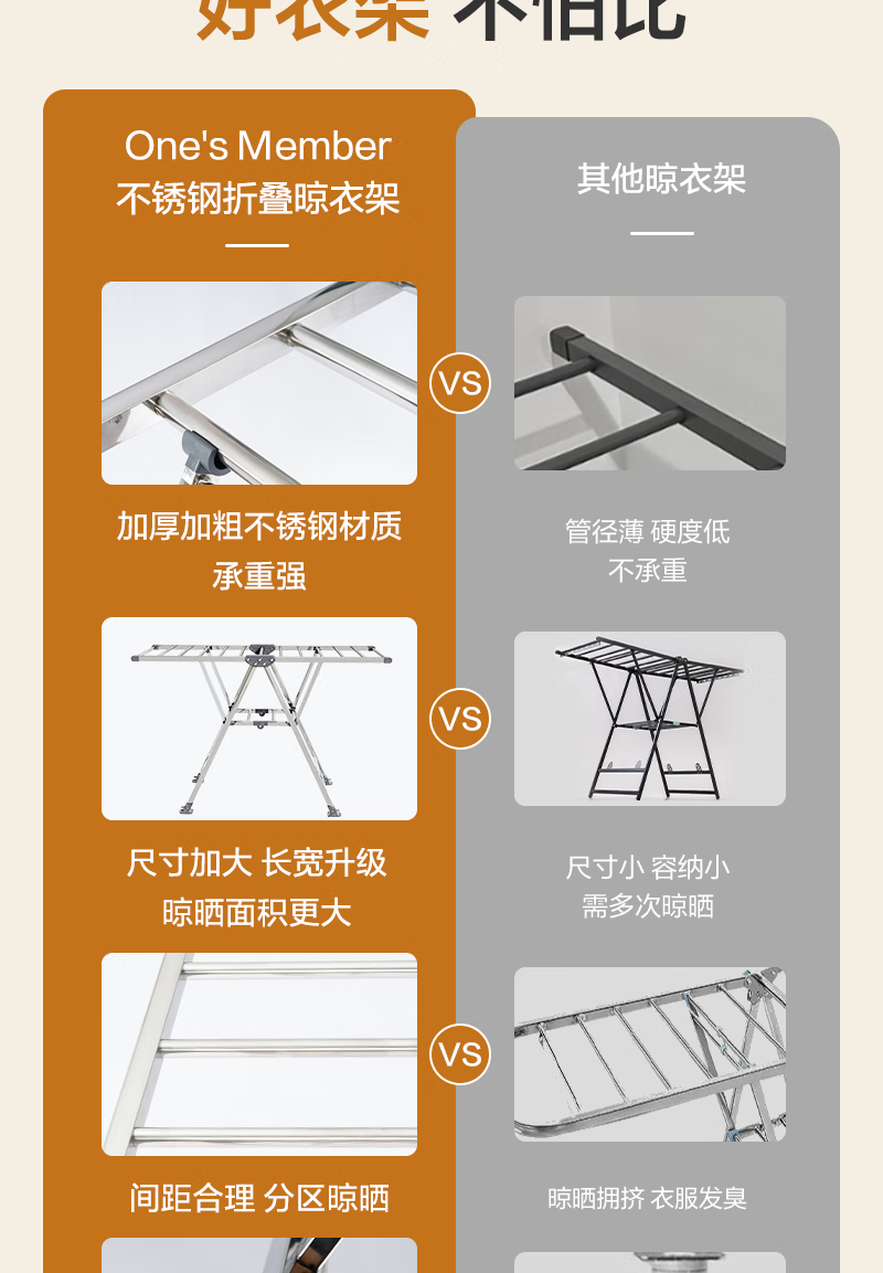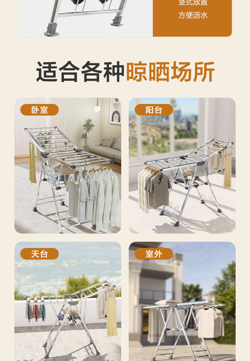 1号会员店(One's Member)落地晾衣架折叠挂衣架阳台挂衣服晾被1.5米加厚不锈钢
