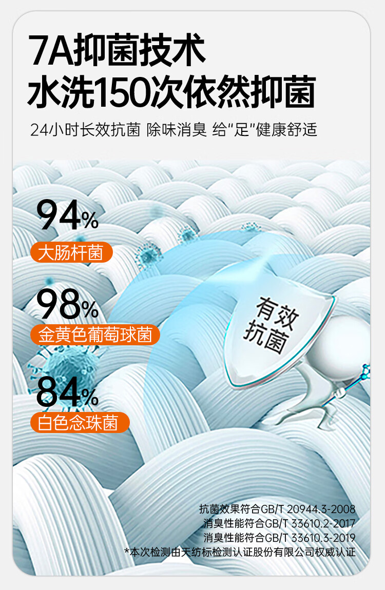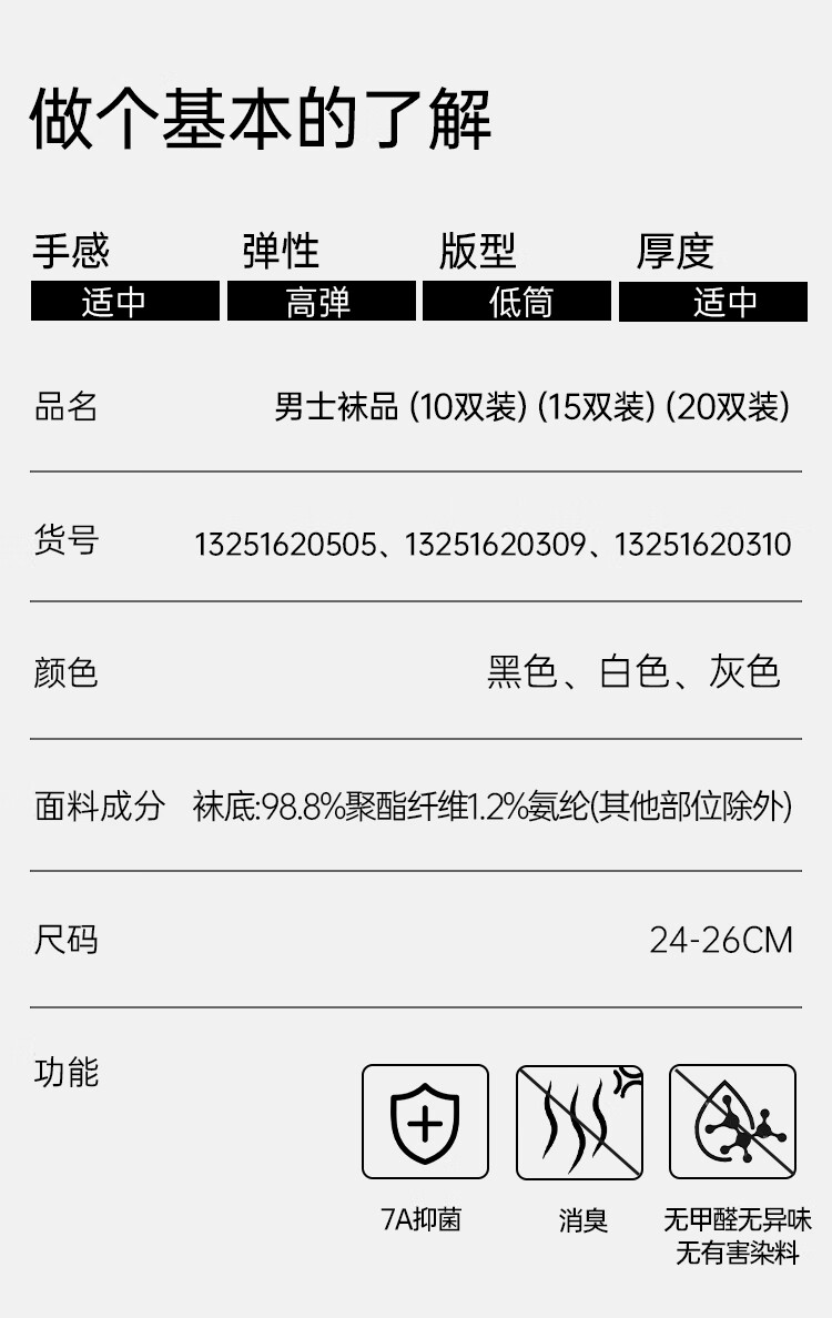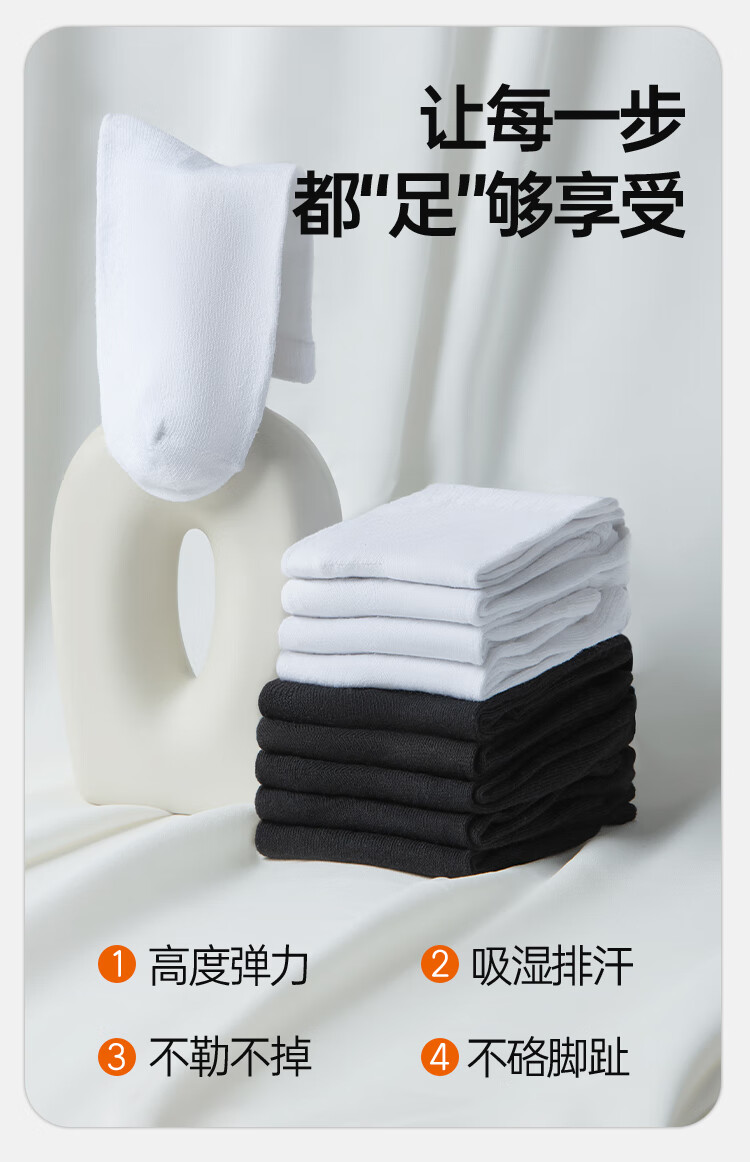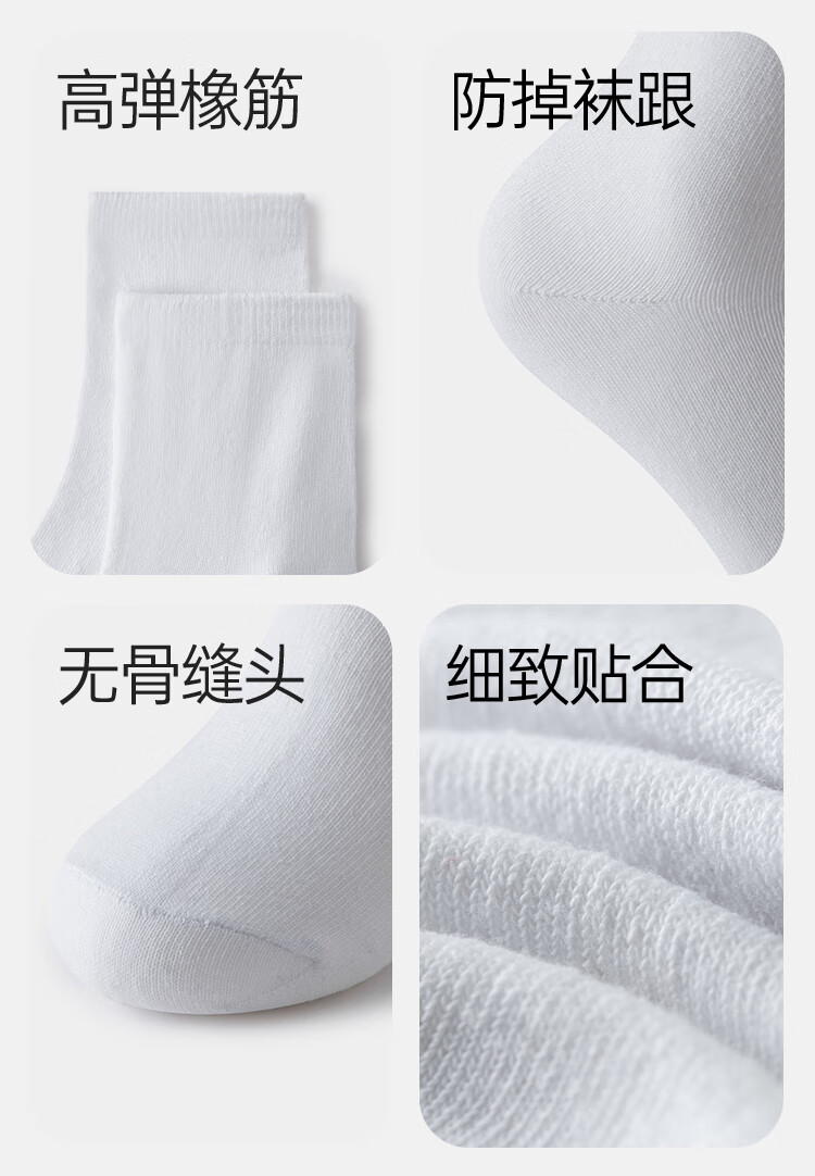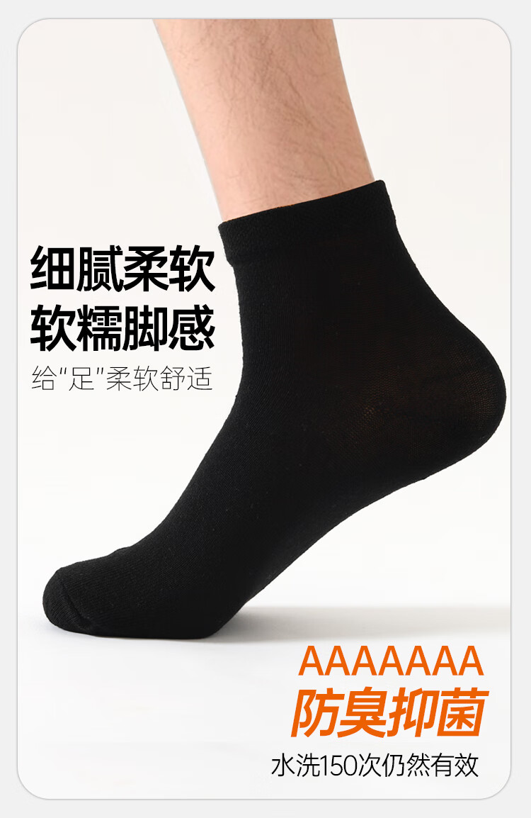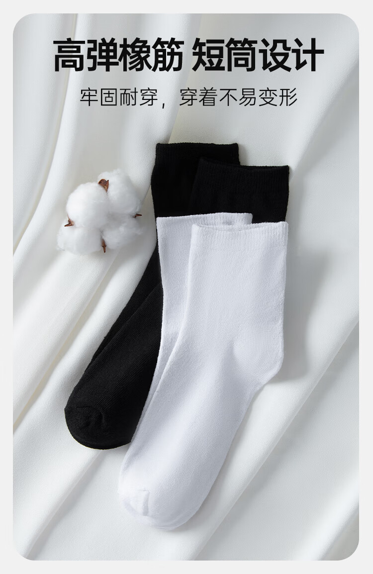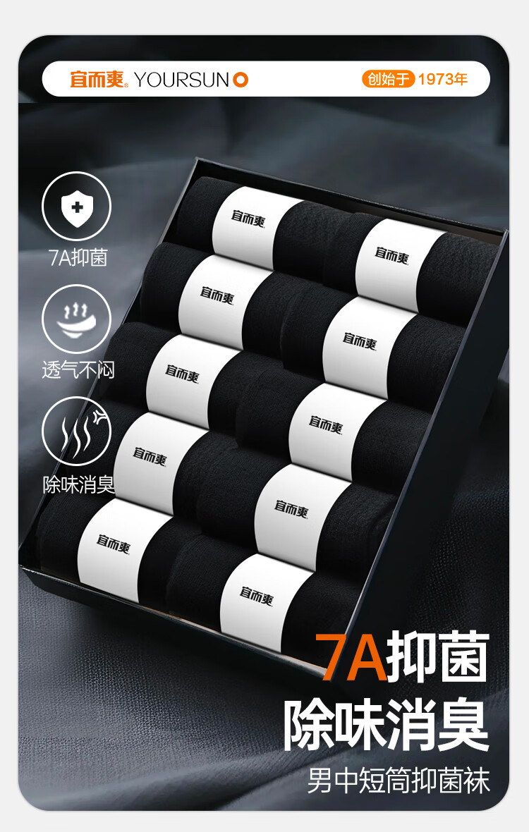 宜而爽【7A抑菌防臭】男士袜子男夏季中短筒袜男袜吸汗男袜10双 黑色